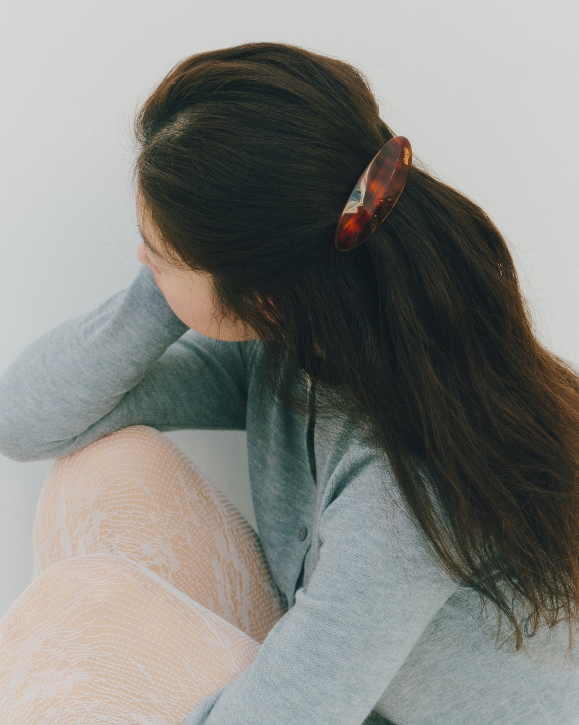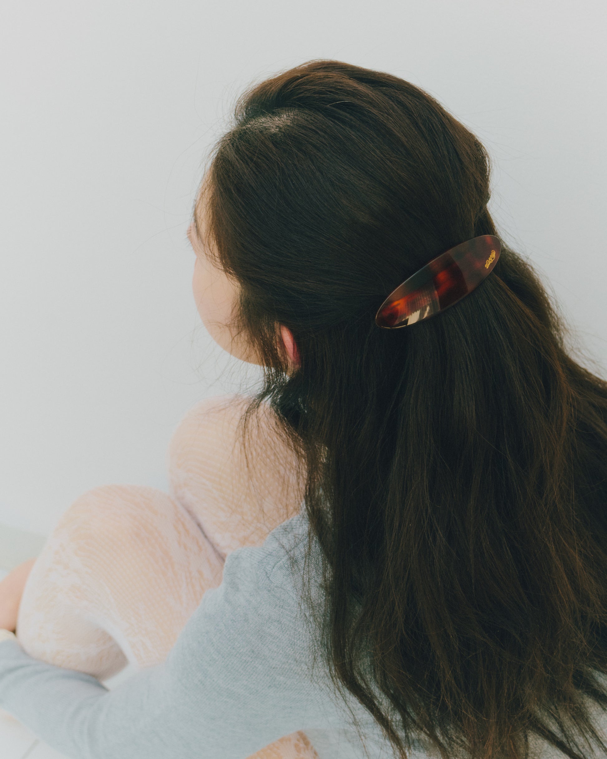 Acetate is a natural material derived from cellulose obtained from cotton and wood pulp. Unlike synthetic plastics, it offers a soft texture, natural shine, and rich color depth, with color evenly permeating the material to maintain brilliance and luster over time. While its quality and feel surpass that of plastic, production is complex and costly, making it primarily used for high-end eyewear frames and hair accessories. Acetate completed in Oyonnax is particularly noted for its glass-like smooth surface, vivid color and grain, and excellent durability, preserving both form and beauty over time.