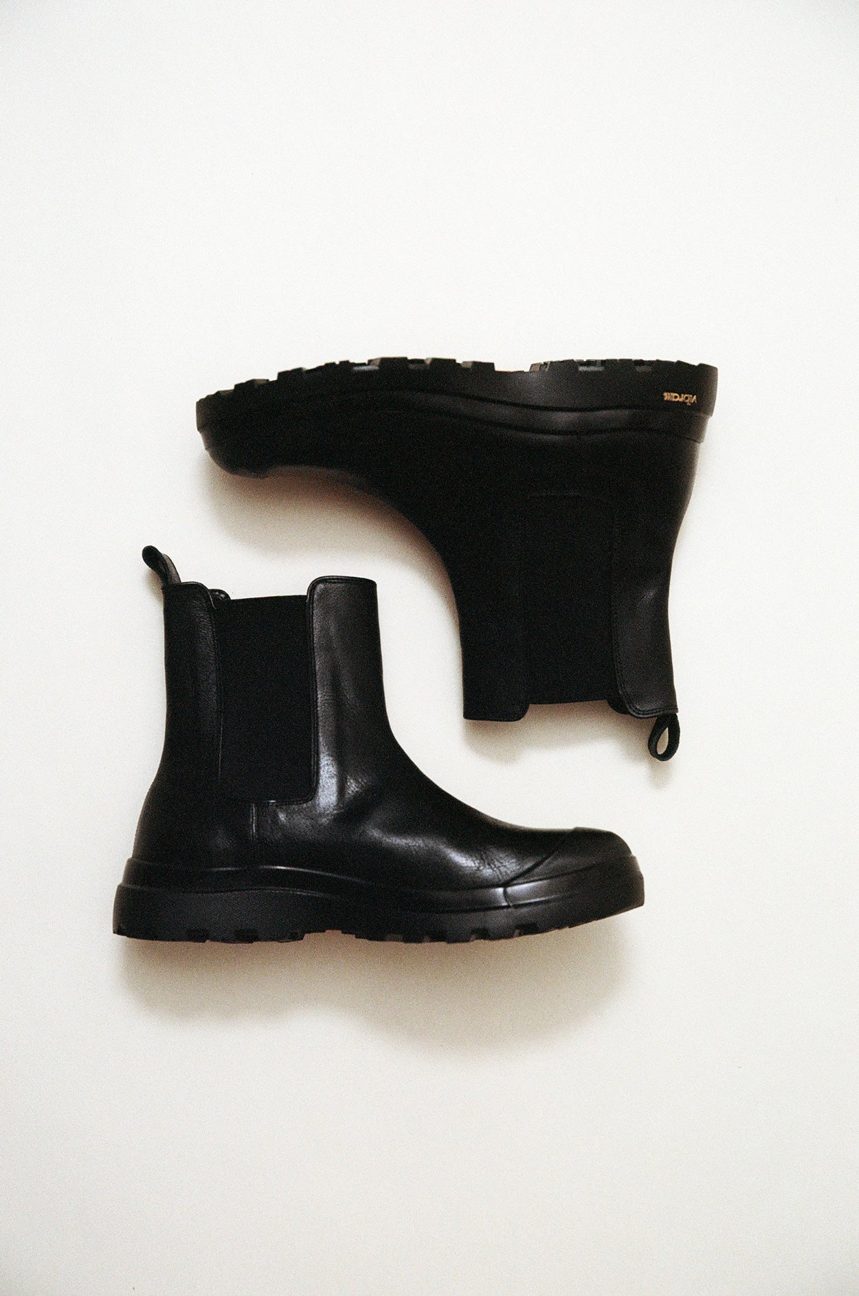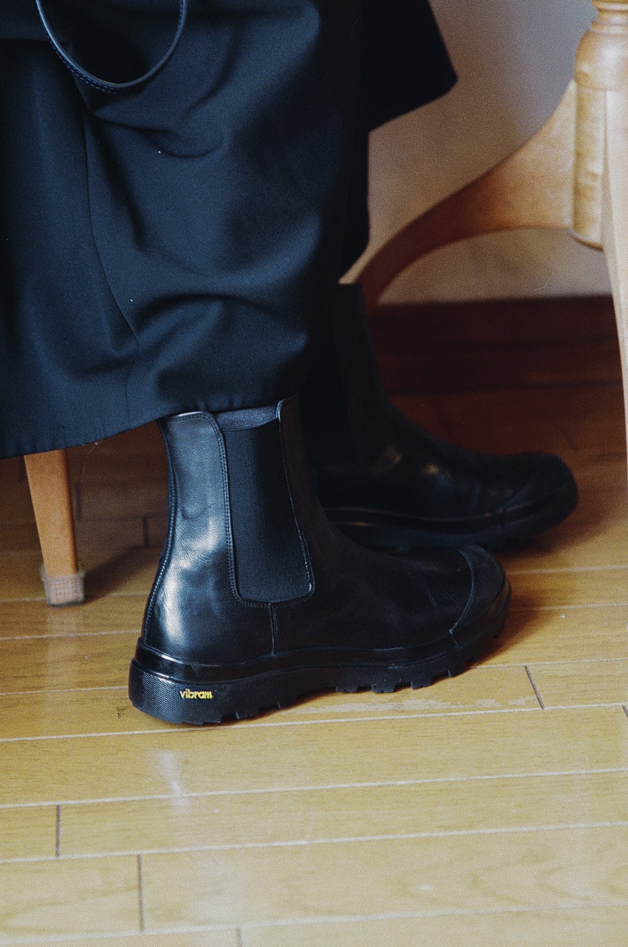 Chelsea boots with a simple design and durability, BOOTS JOUVET are made of buffalo calf leather with a soft sheen, giving them a soft texture and excellent durability. Buffalo calf leather naturally adapts to your feet over time, becoming softer and more comfortable the more you wear them. The Vibram sole provides excellent fit and wraps your feet securely, reducing fatigue even when worn for long periods of time. The rubber sole that wraps around the front toe enhances durability and completes a distinctive silhouette. The high-density banding adds convenience for putting on and taking off, while creating a slim line that flows smoothly along the ankle. It is an item that can be used in various ways, from daily looks to formal wear, as it has a casual feel but goes well with any style.