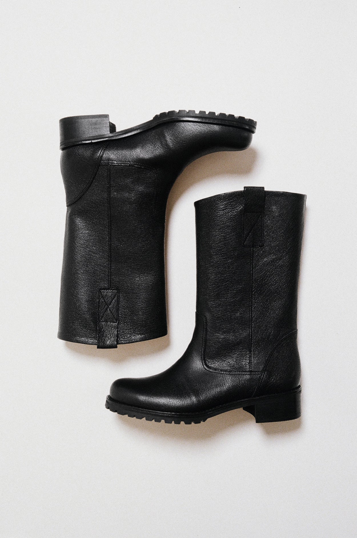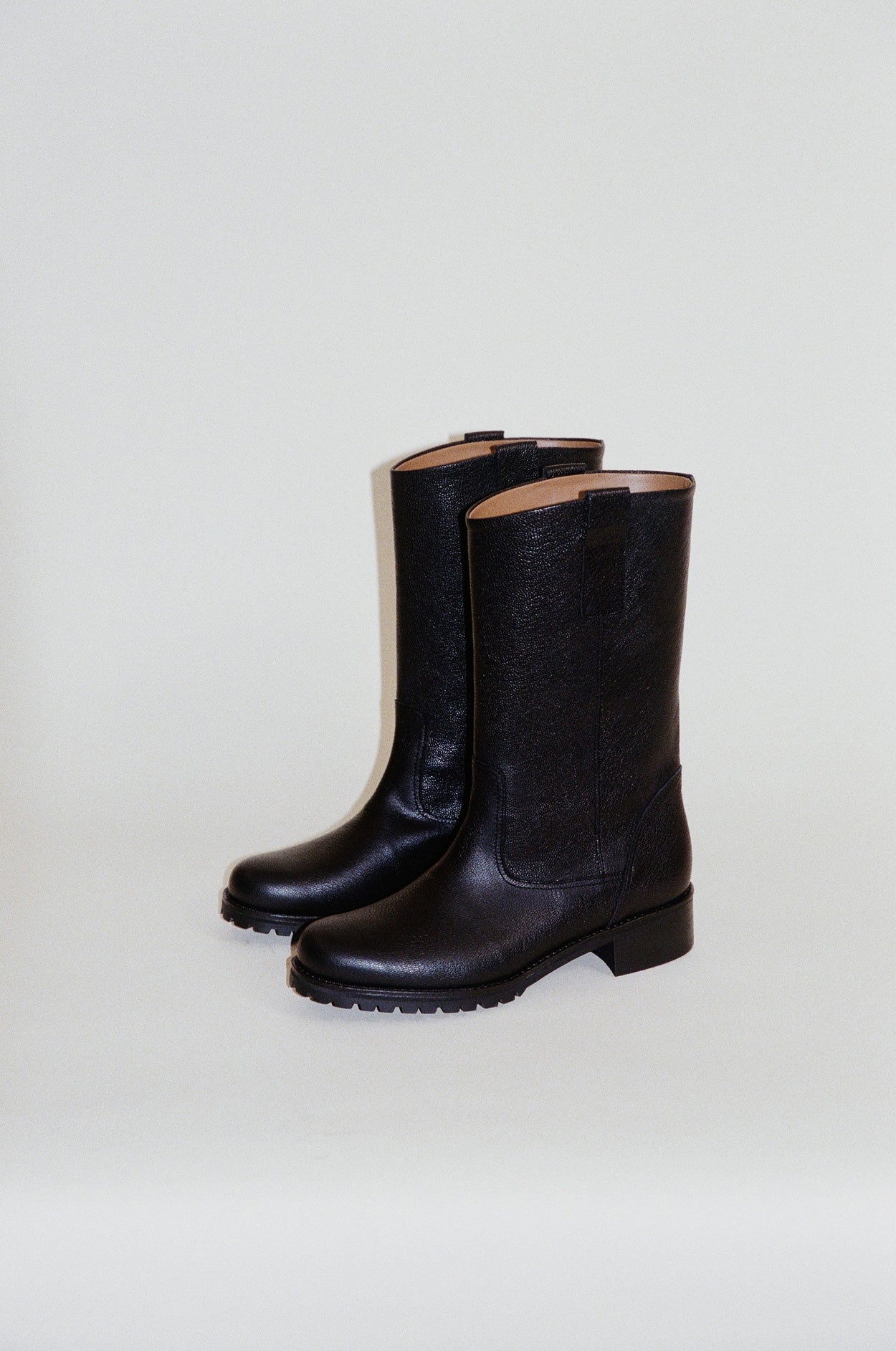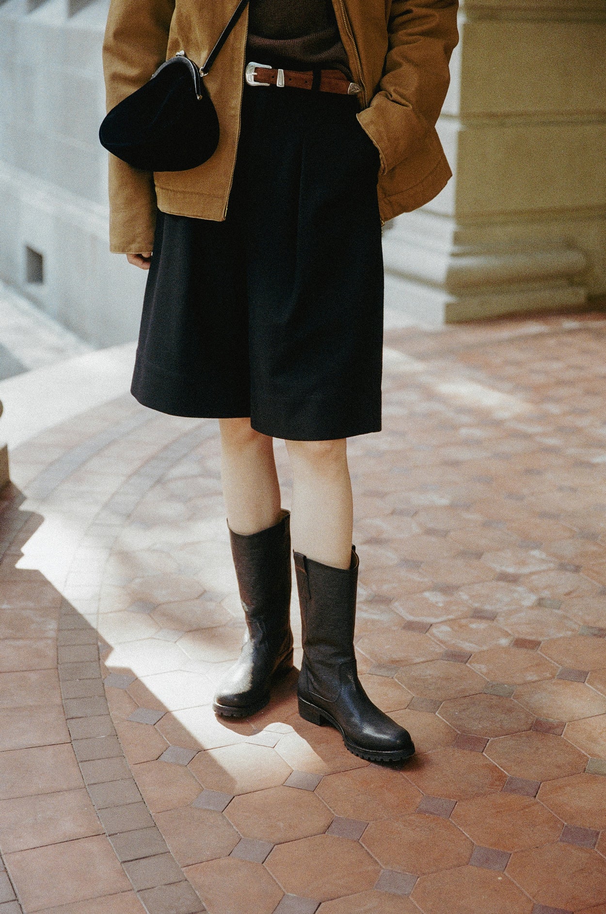 With a subtle vintage vibe, Boots Léonie are half-length and naturally blend into a variety of styles. The oiled Goth Leather adds a stylish aging effect over time, and the tumble-washing process creates a natural pattern on the leather for excellent durability. The calf part is made of a relaxed fit, making it convenient to wear and take off. The moderate front and 4cm backheels also match long pants or feminine skirts perfectly, expanding the breadth of styling. It also has a high-friction rubber sole on the floor for a comfortable fit regardless of the weather.