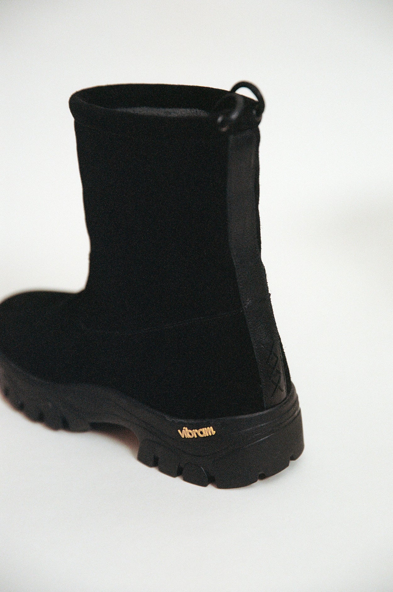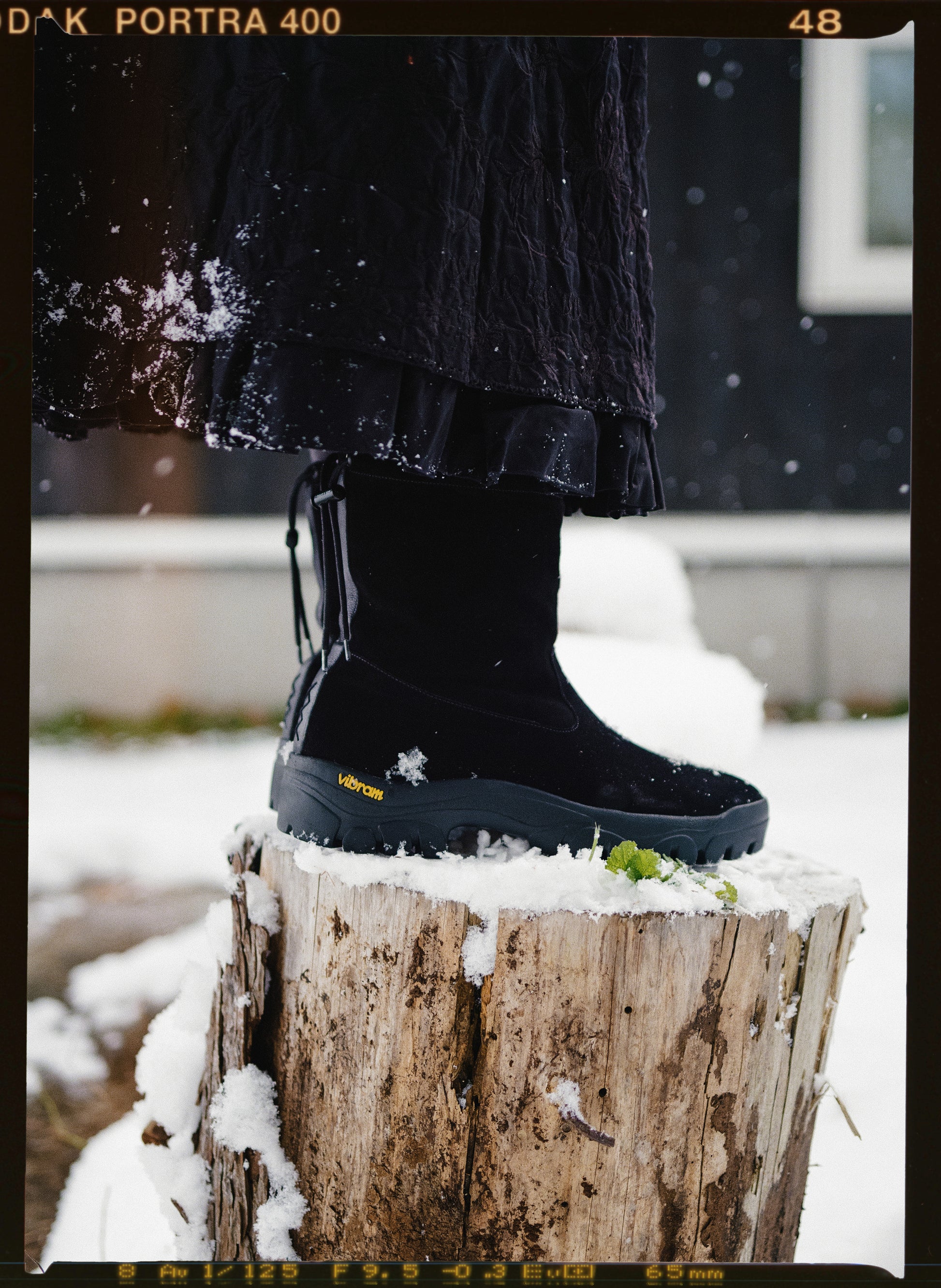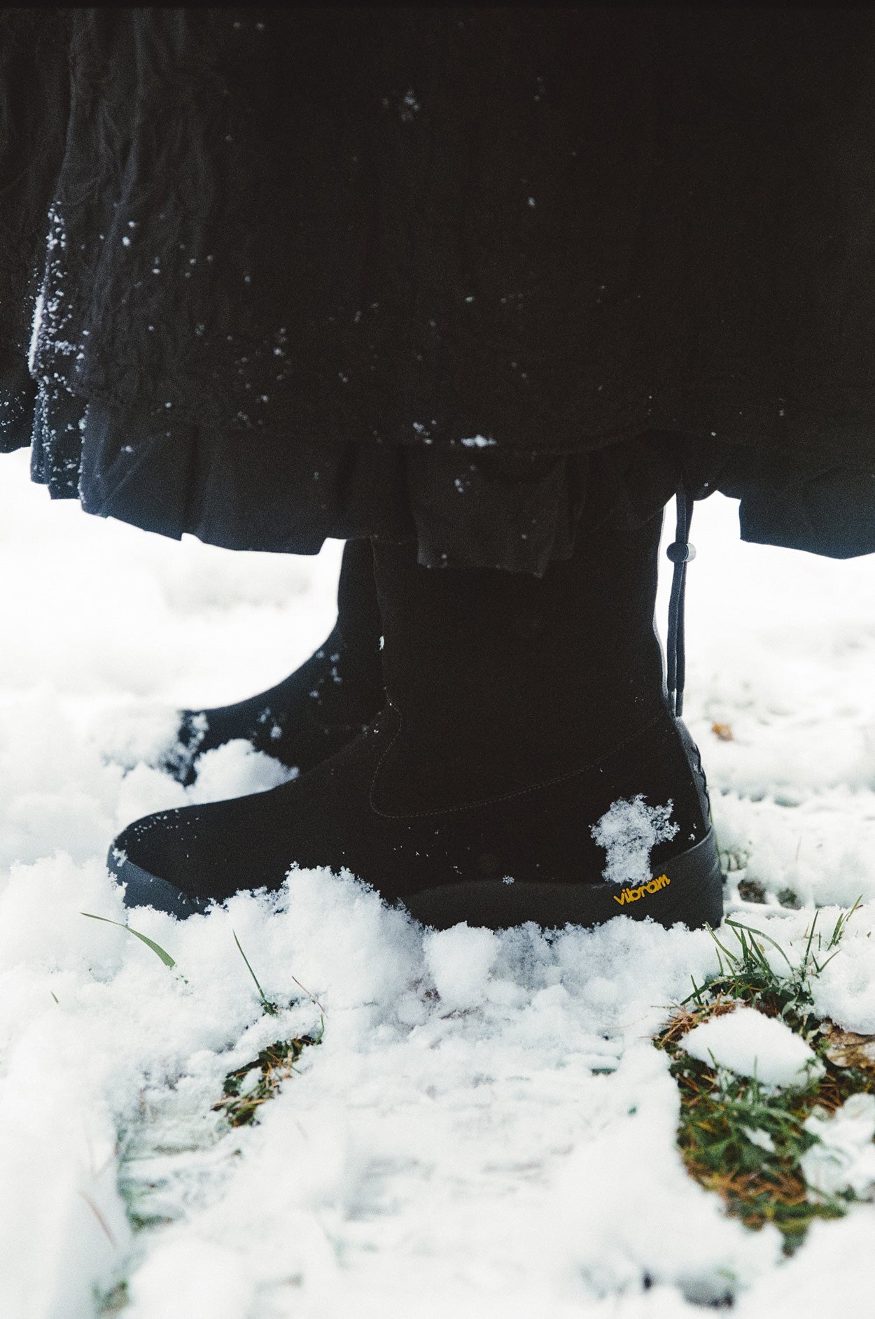 BOOTS MASSOT, with its outstanding warmth and detail, is a reliable snow boot in various environments during the winter. Made of soft and flexible suede leather, it gently wraps your feet and adds comfort the more you wear it, and its snow and rain resistance make it practical. Between the suede outer material and the flannel inner material, a functional thermal insulation material called Thinsulate is layered, providing excellent insulation while being lightweight, keeping your feet warm even in the middle of winter. A cordlock drawstring is applied to the rear axle to tighten it to fit your ankle, and delicate stitching details are added to enhance the design perfection. The flannel lining, which wraps the entire shoe from the sole to the ankle, provides warmth and softness, and the Vibram sole prevents slipping, providing a stable fit even on snowy roads. MASSOT is a snow boot with both functionality and design, completing a warm and stable style even in the cold season.