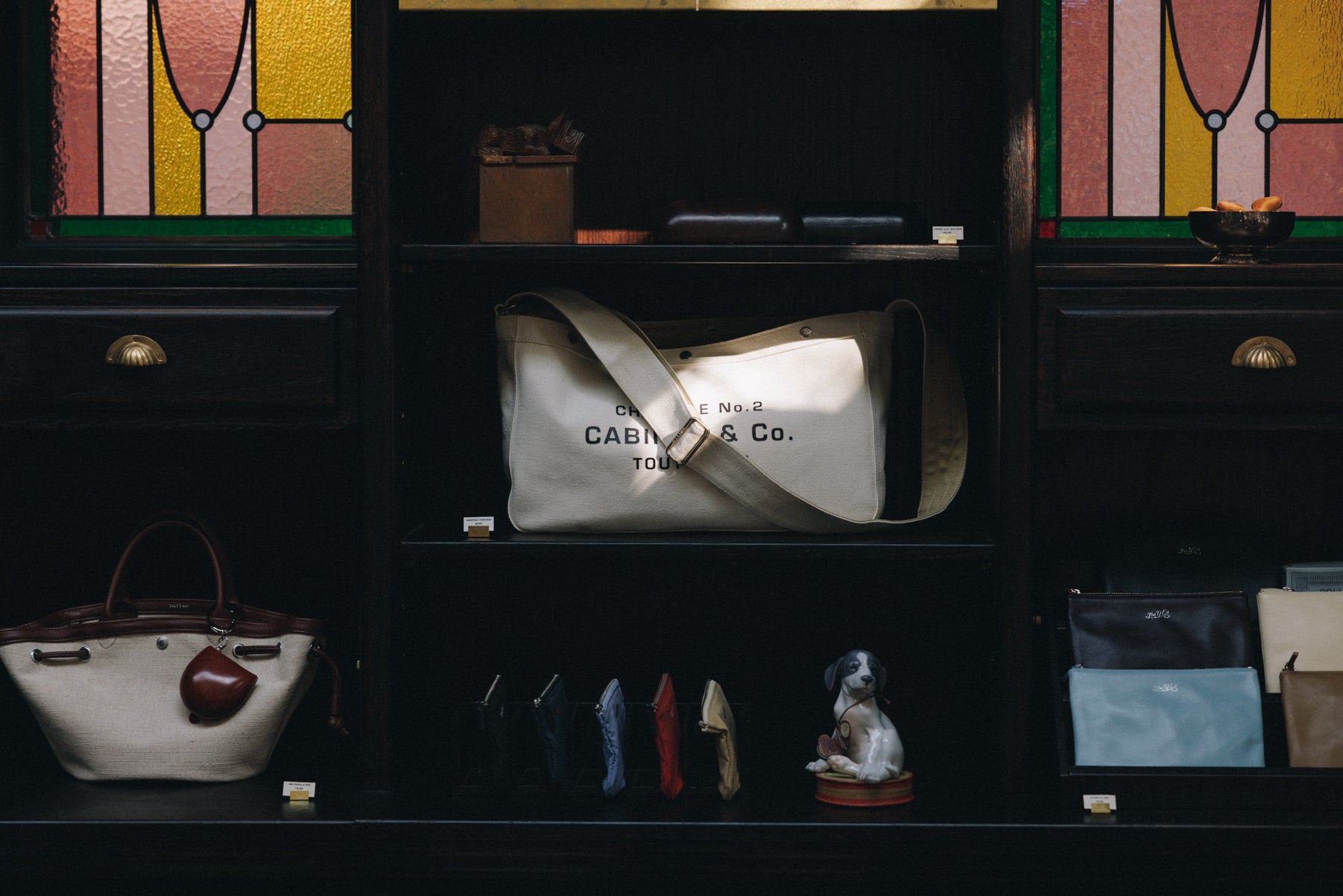 The CABINET & Co. crossbody bag, crafted from cotton-linen canvas, draws inspiration from vintage newspaper bags. Made from structured yet supple canvas, it retains its shape beautifully while remaining lightweight for comfortable daily wear. The adjustable buckle strap allows for both shoulder and crossbody styling. Both the buckle and snap button feature the engraved “TOUT Y EST” logo, while the CABINET & Co. print on the front represents the identity of the CABINET & Co. store. Inside, a beige cotton lining creates a subtle contrast with the exterior. Its spacious size accommodates up to a 15-inch laptop.