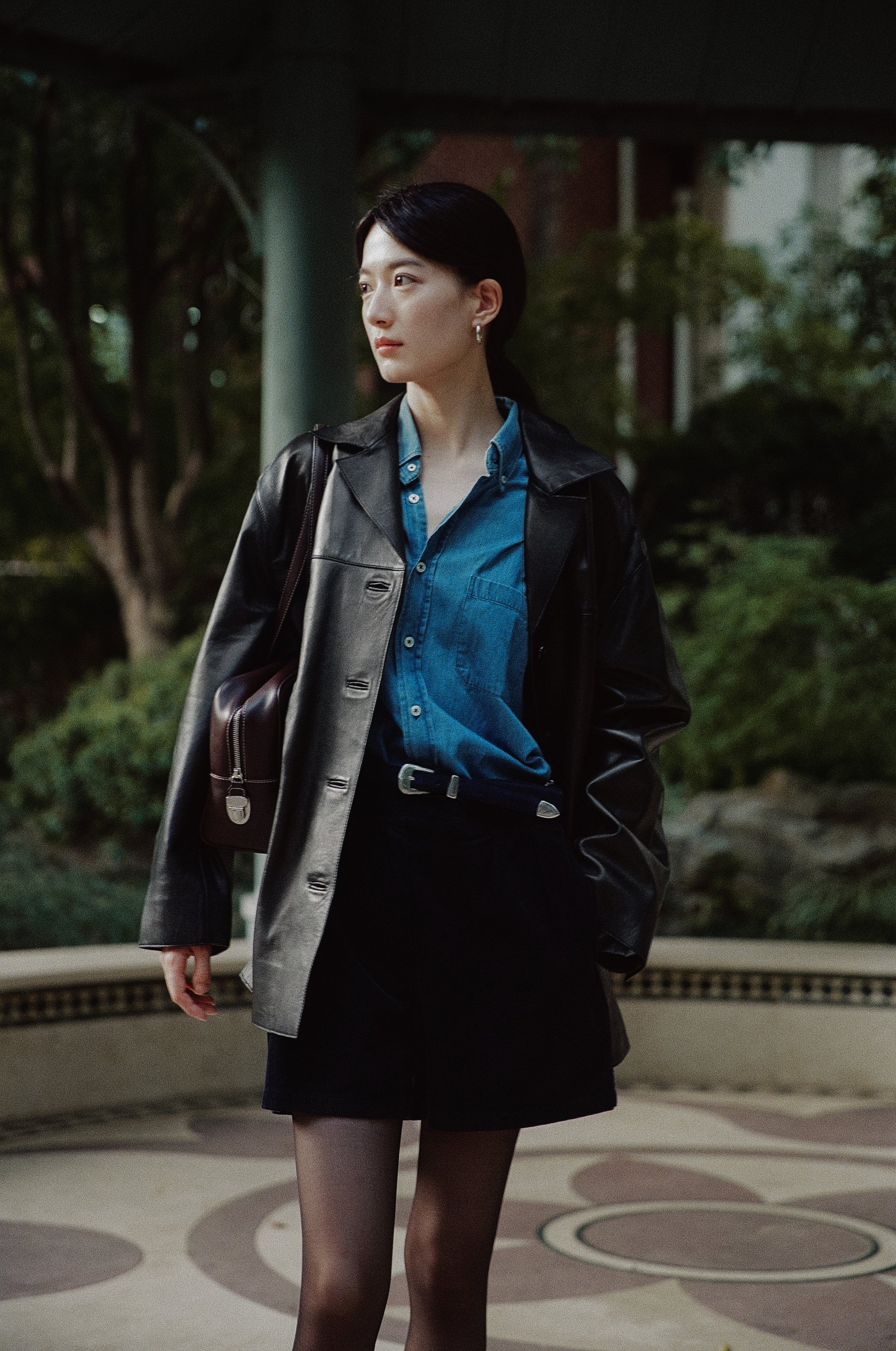 CEINTURE GRAVÉE is a Western-style and crafted in Italy. The silver metal buckle and tip, engraved with intricate patterns, serve as classic yet distinctive accents that embody iconic Western design elements. The exterior is made of suede calf leather, offering a soft and natural texture, while the lining is finished in nubuck calf leather for enhanced comfort.