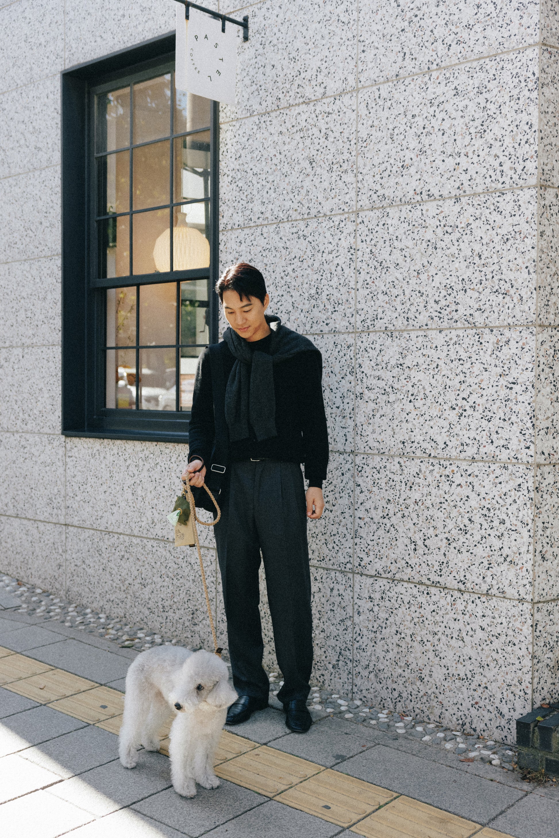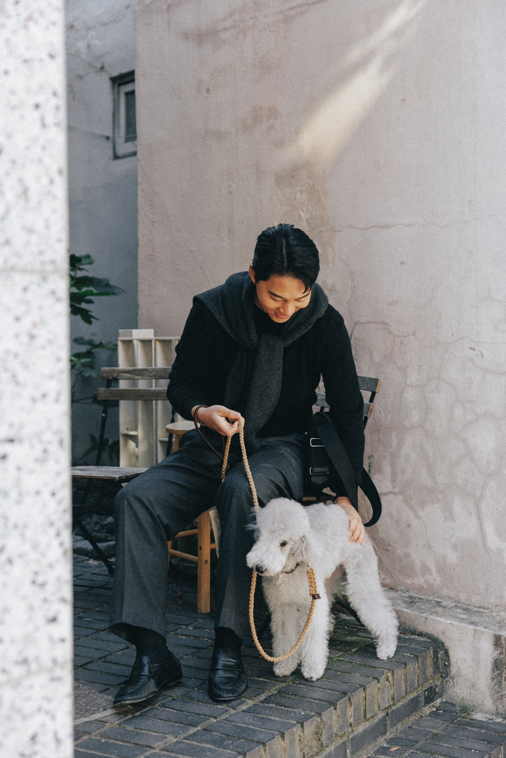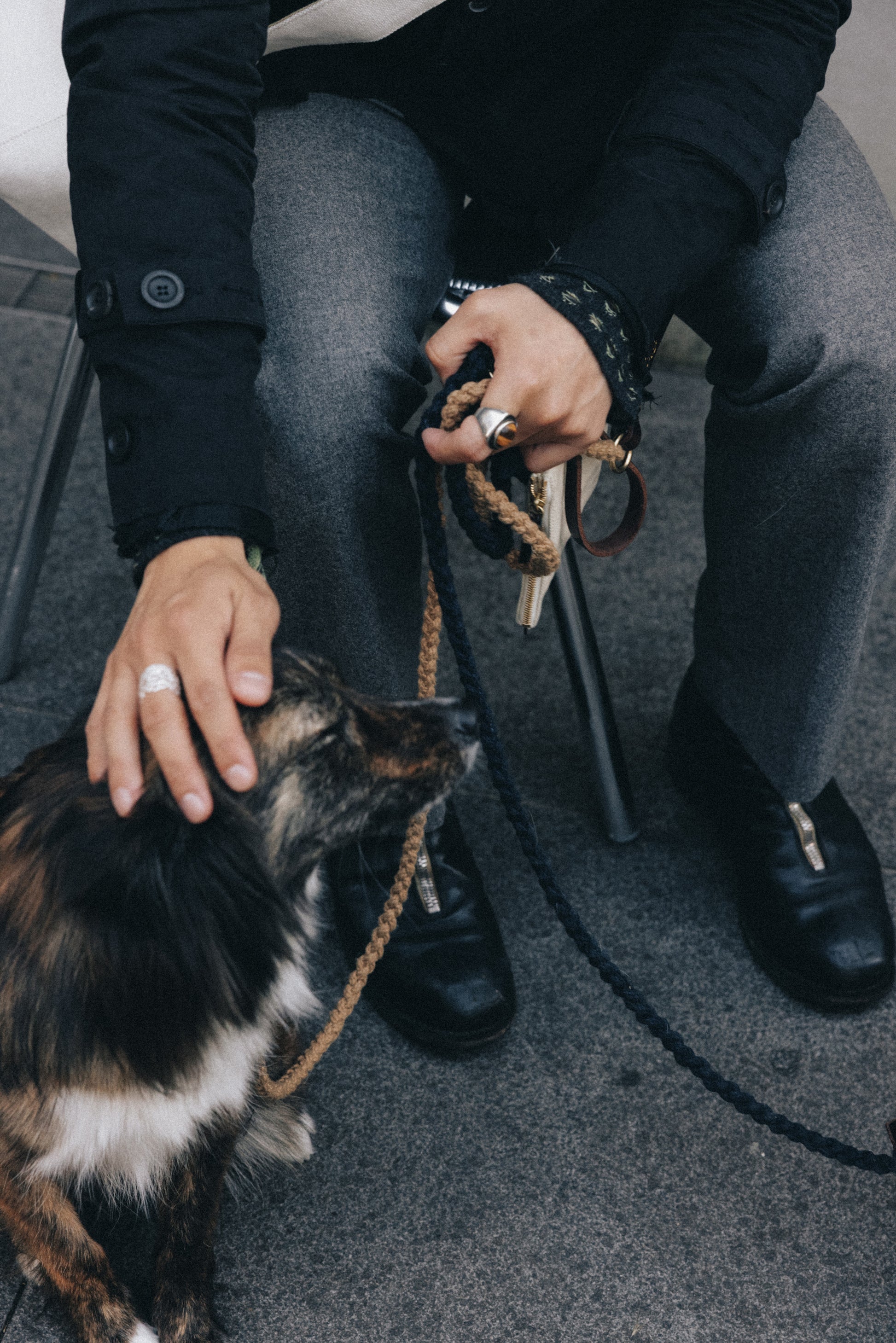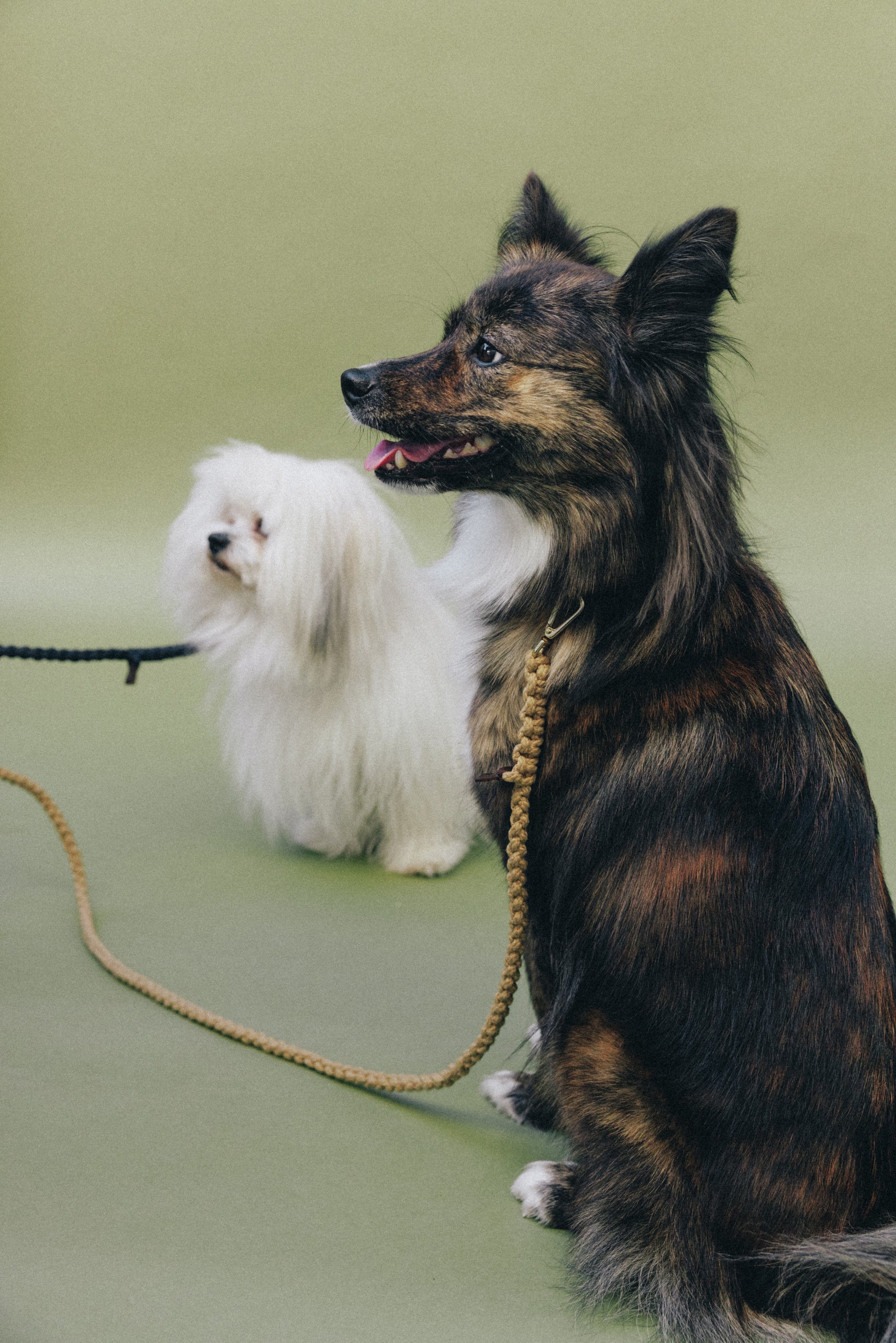 This leash for dogs is crafted from Italian cowhide, brass, and cotton rope.