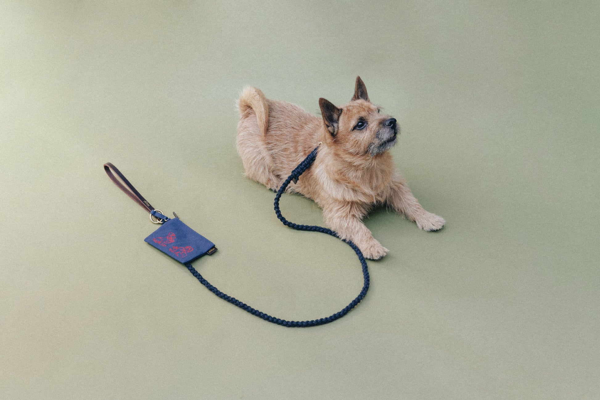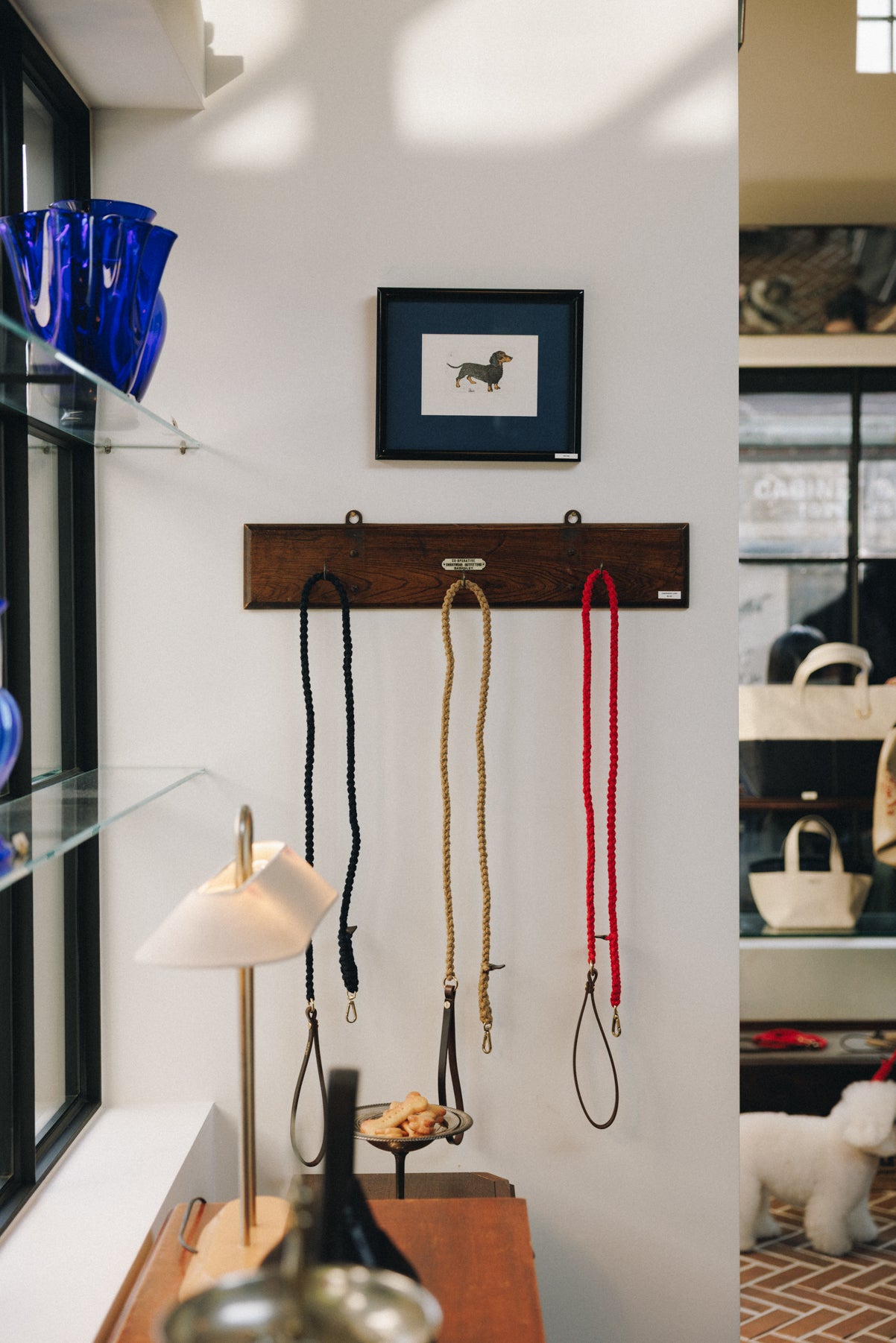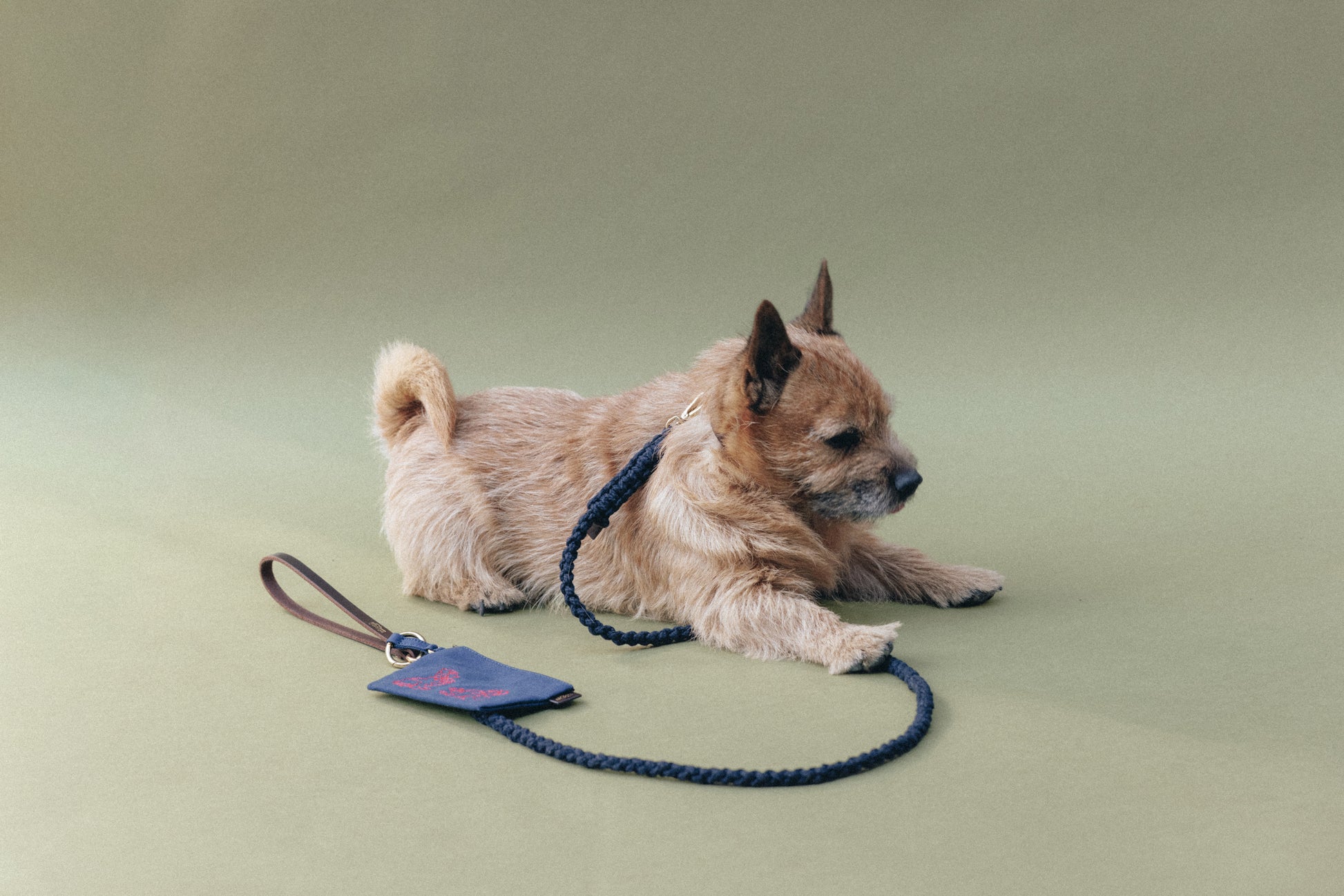 This leash for dogs is crafted from Italian cowhide, brass, and cotton rope.