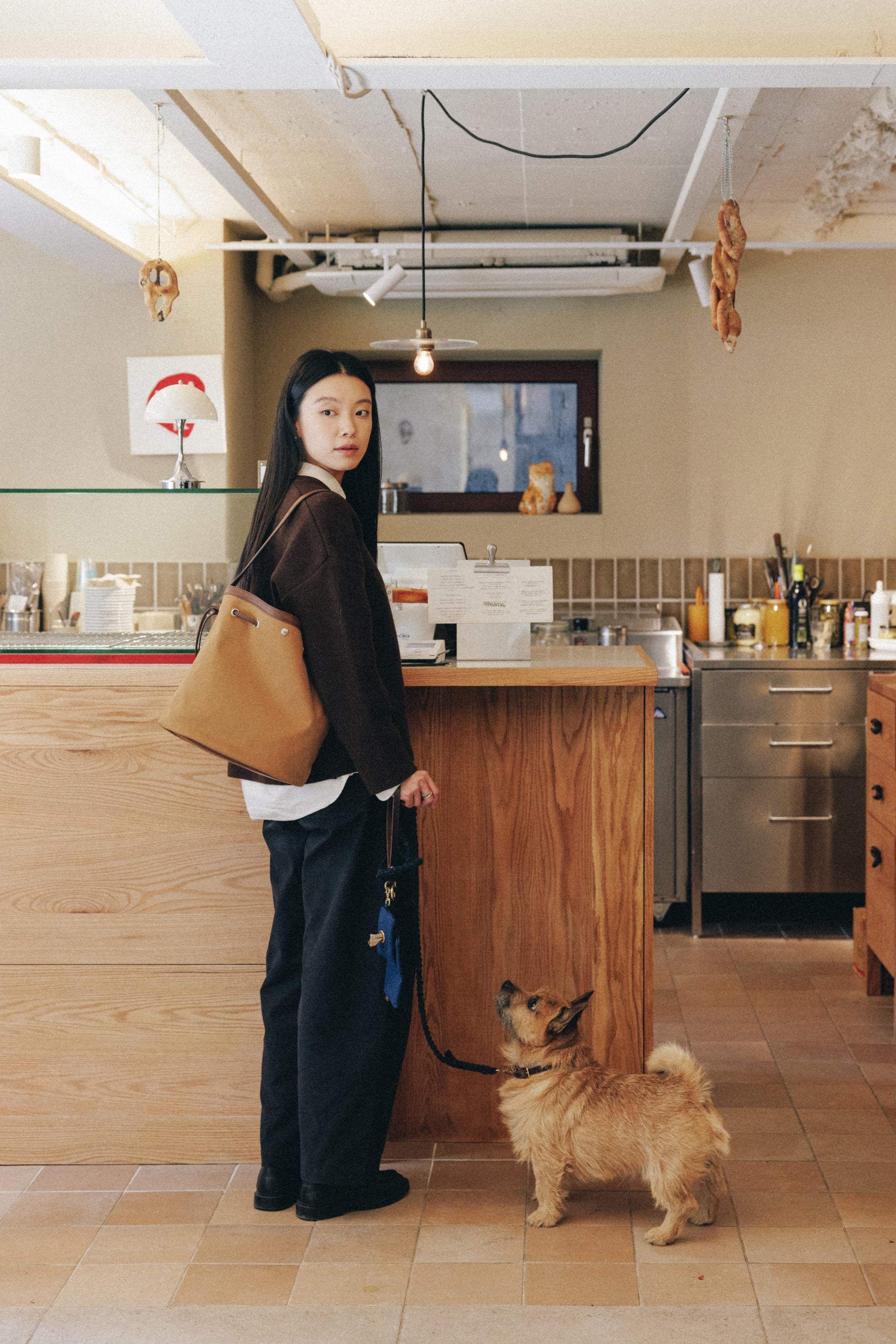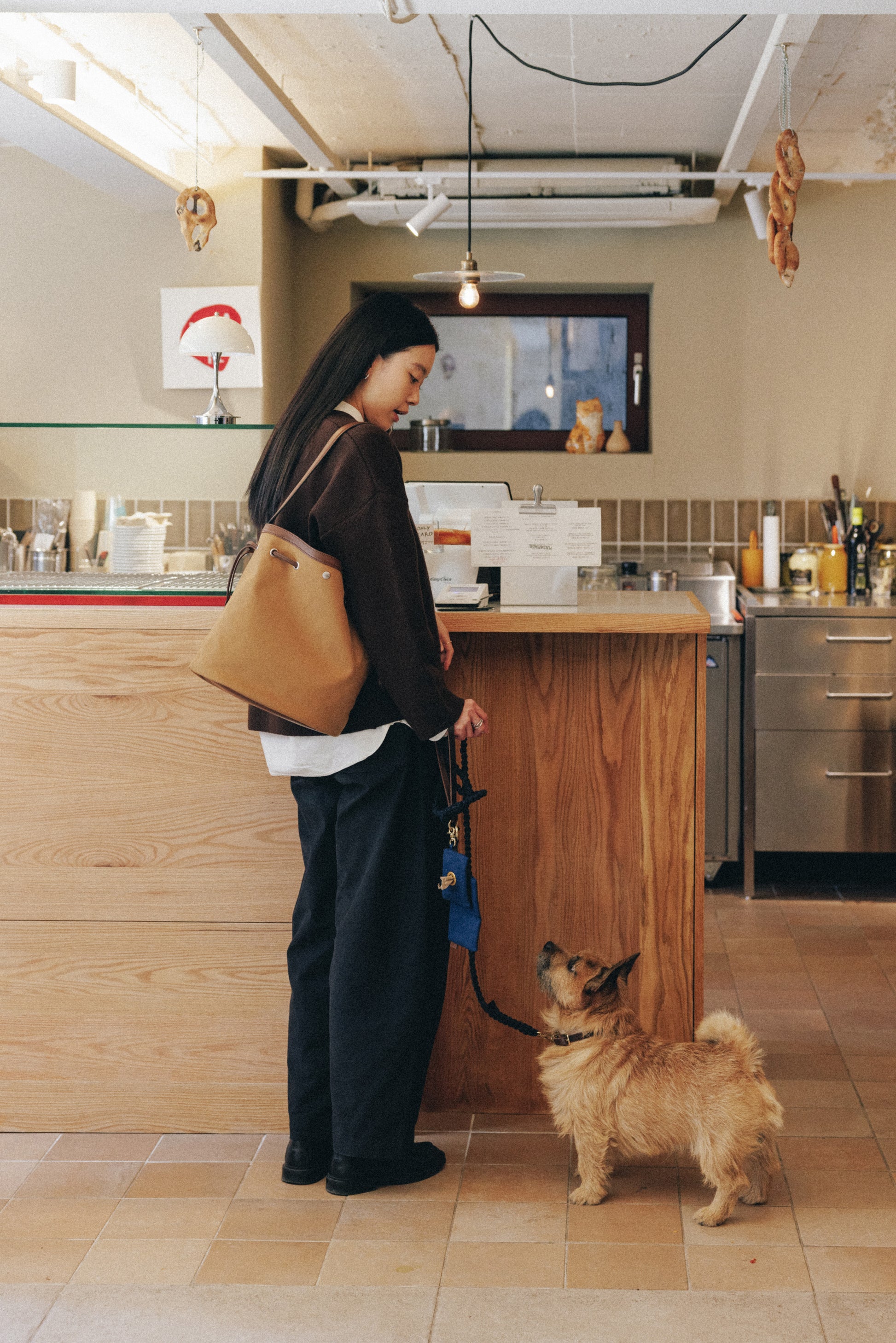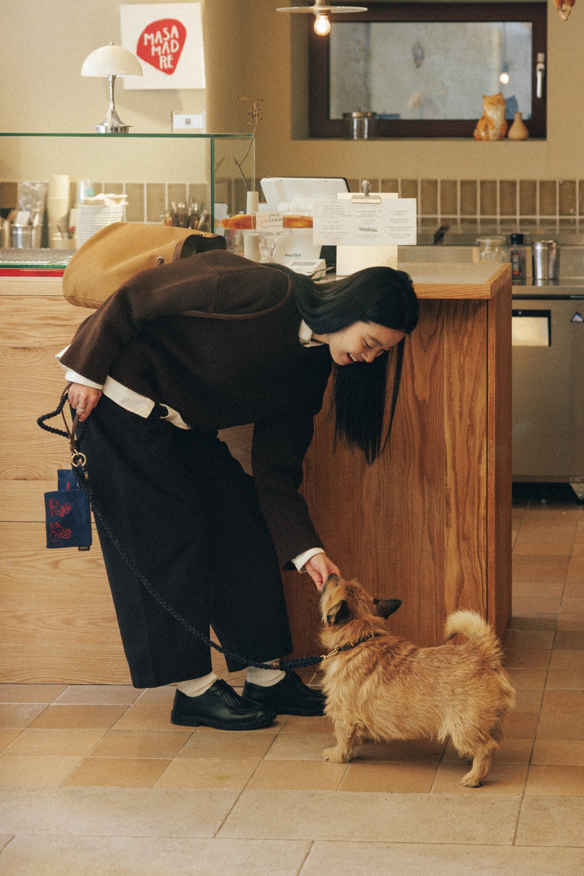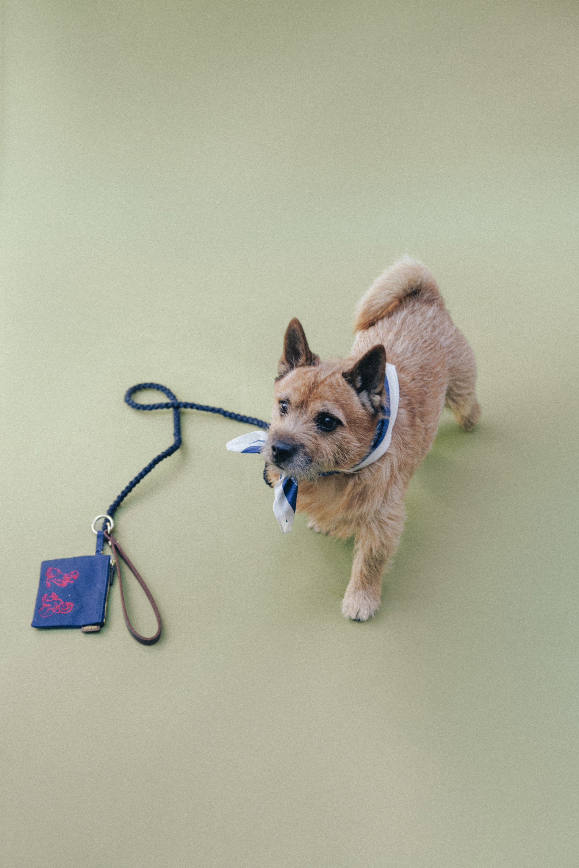 This leash for dogs is crafted from Italian cowhide, brass, and cotton rope.