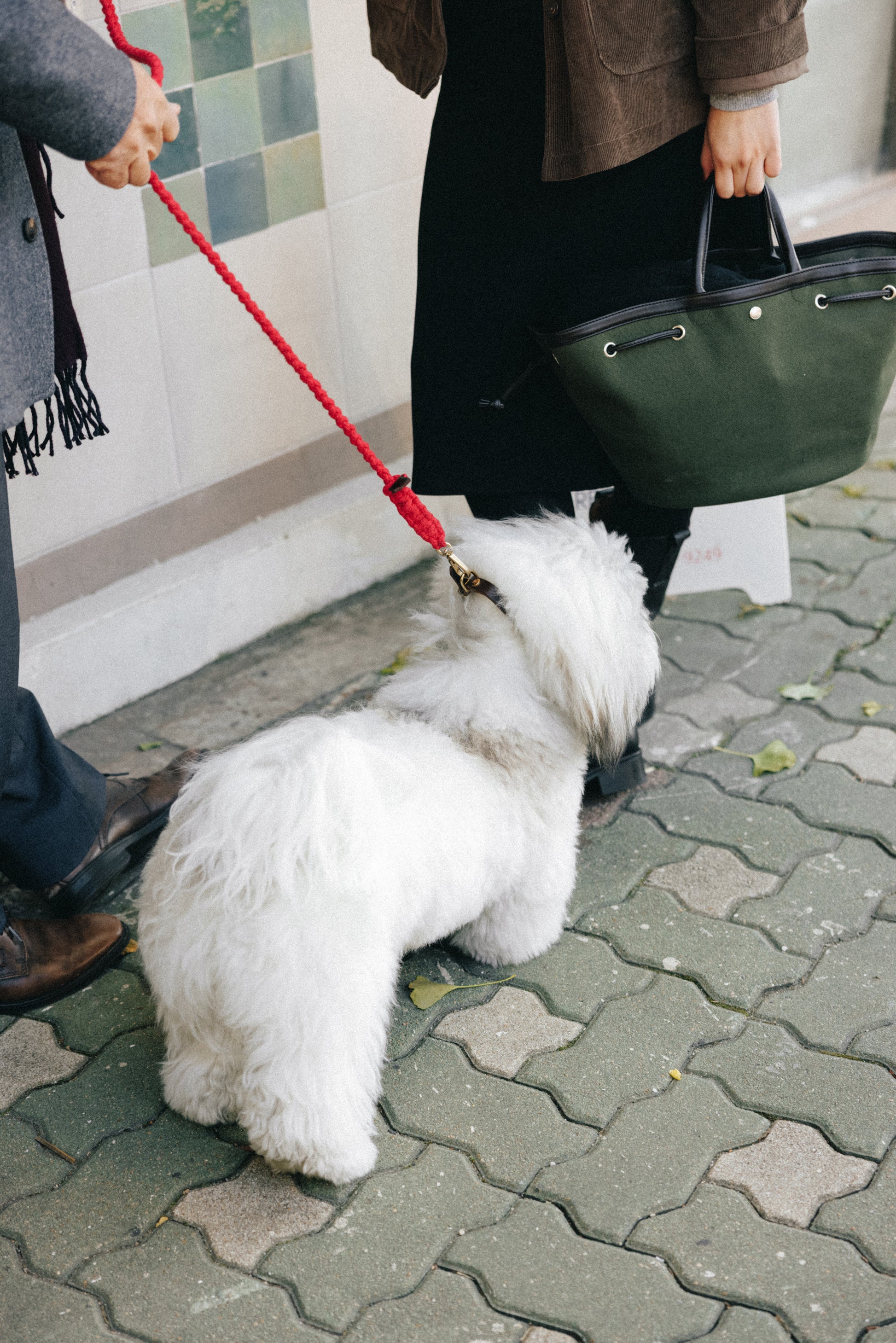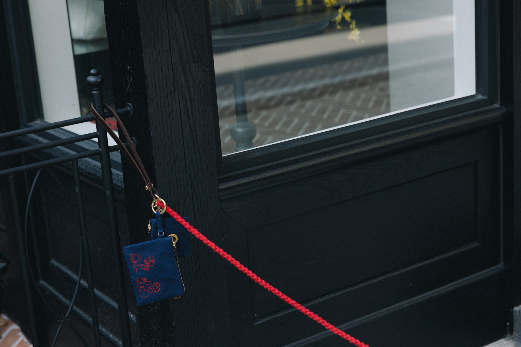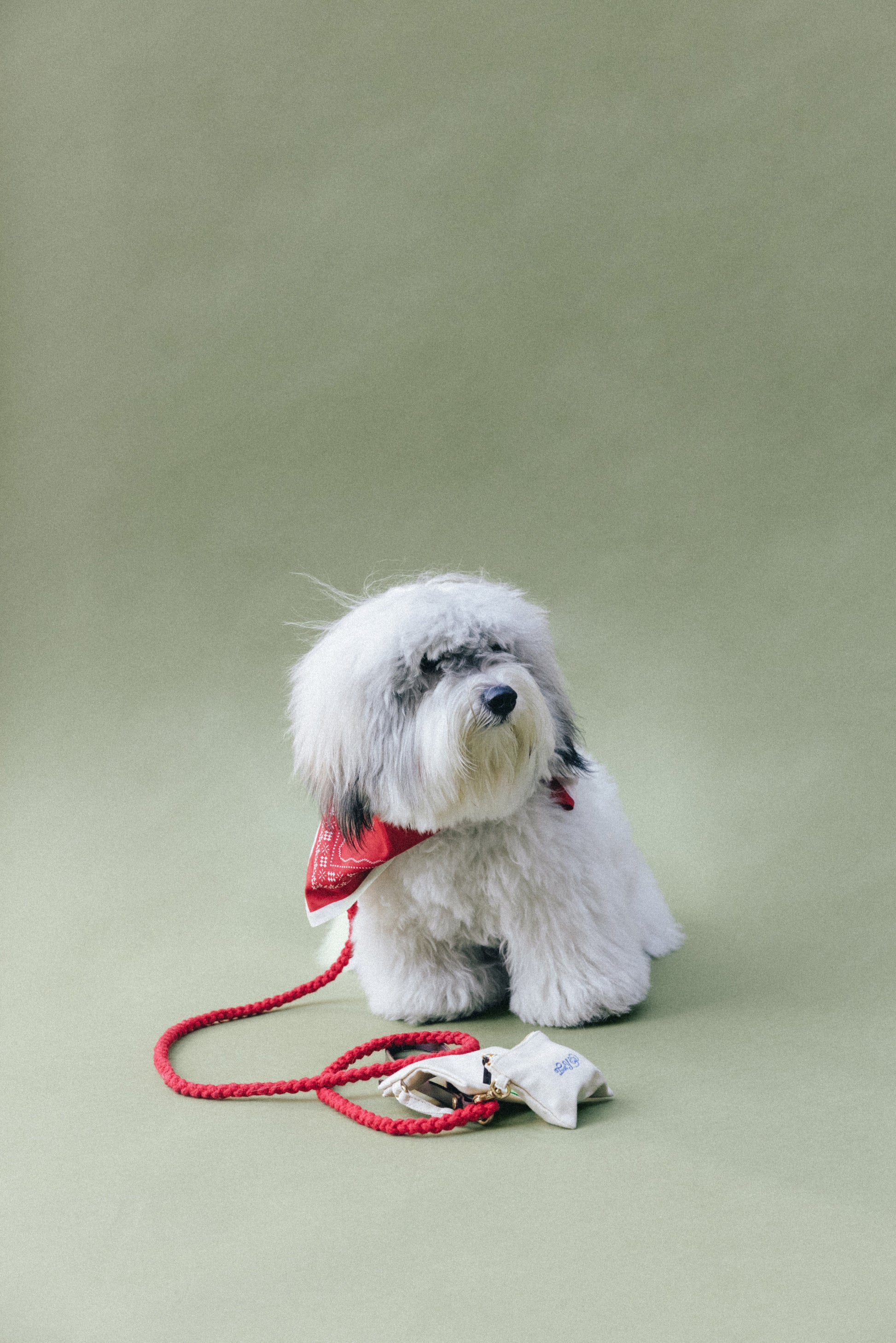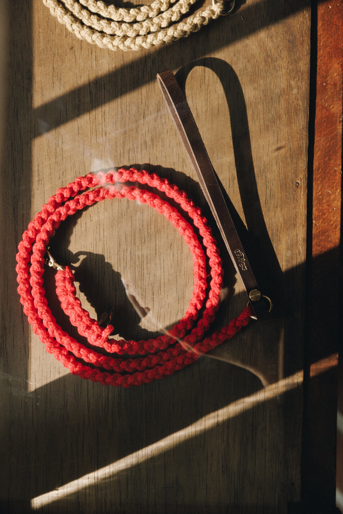 This leash for dogs is crafted from Italian cowhide, brass, and cotton rope.