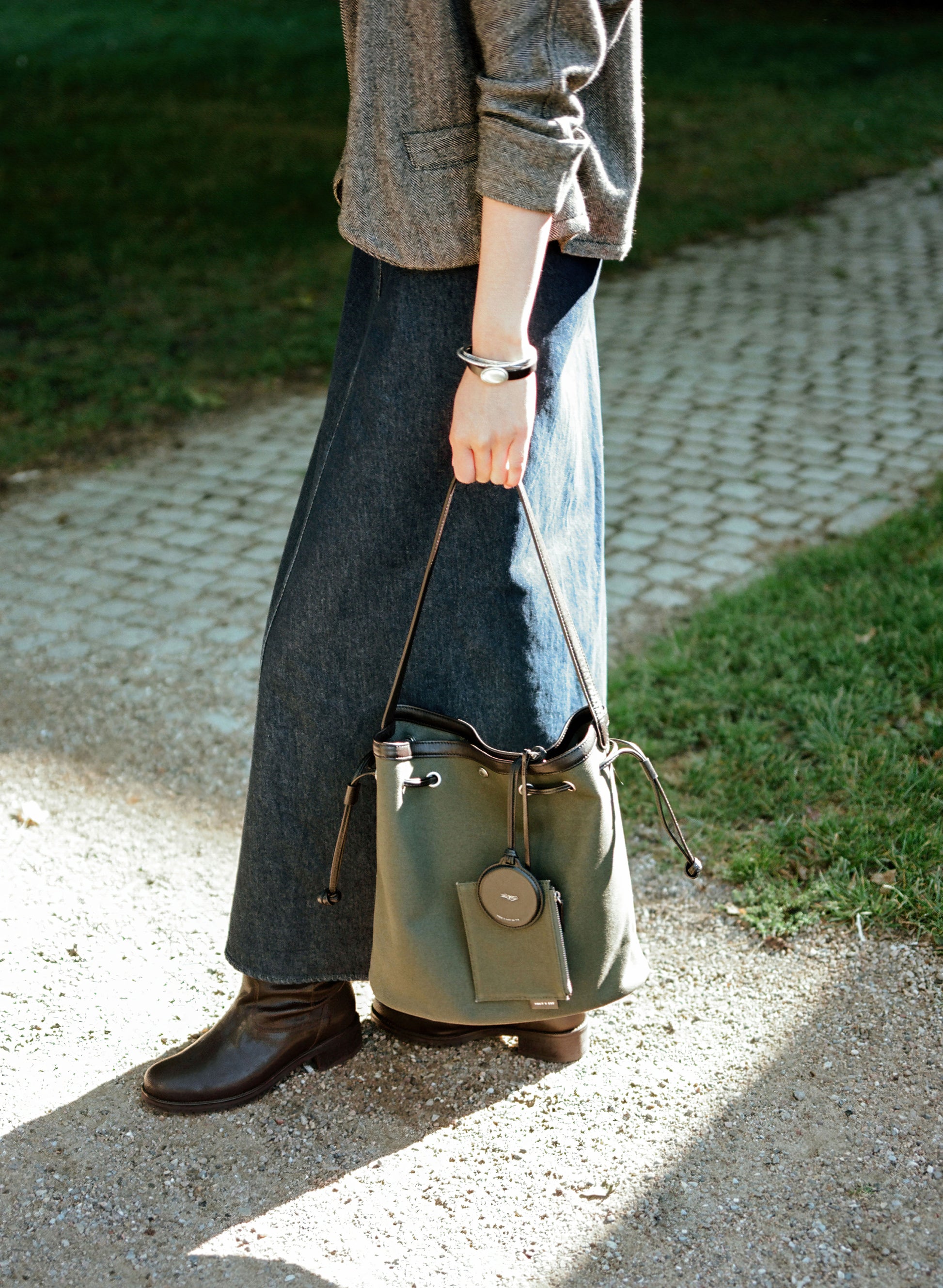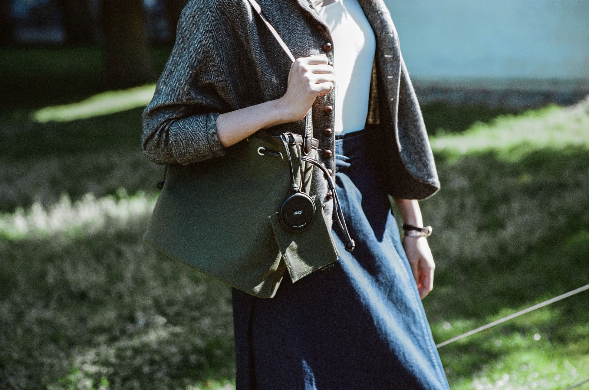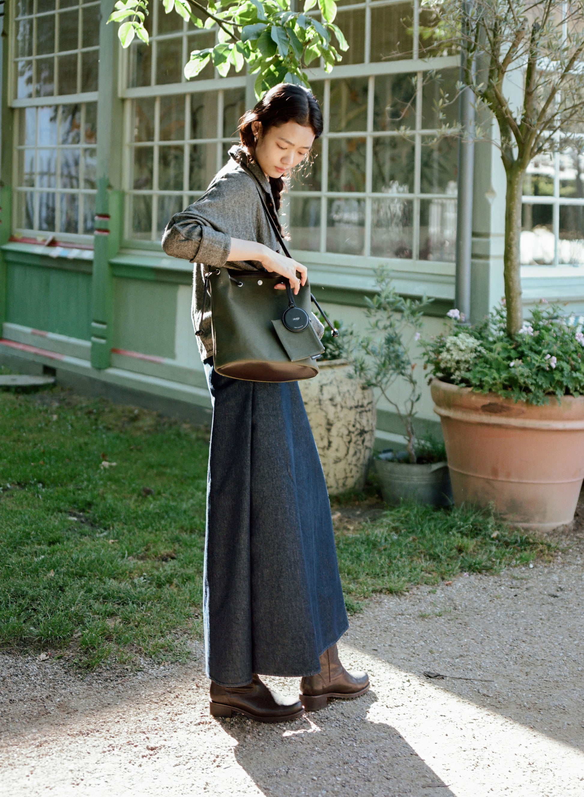 The pendant mirror is a mirror charm that adds a subtle accent to your bag. The front is made of soft cowhide leather, while the back features a mirror, combining decorative appeal with practicality. The long leather strap can be wrapped around bag handles or decorative elements to create a natural look at your preferred length. Lightweight with gentle curves, the front is finished with a simple foil-stamped logo.