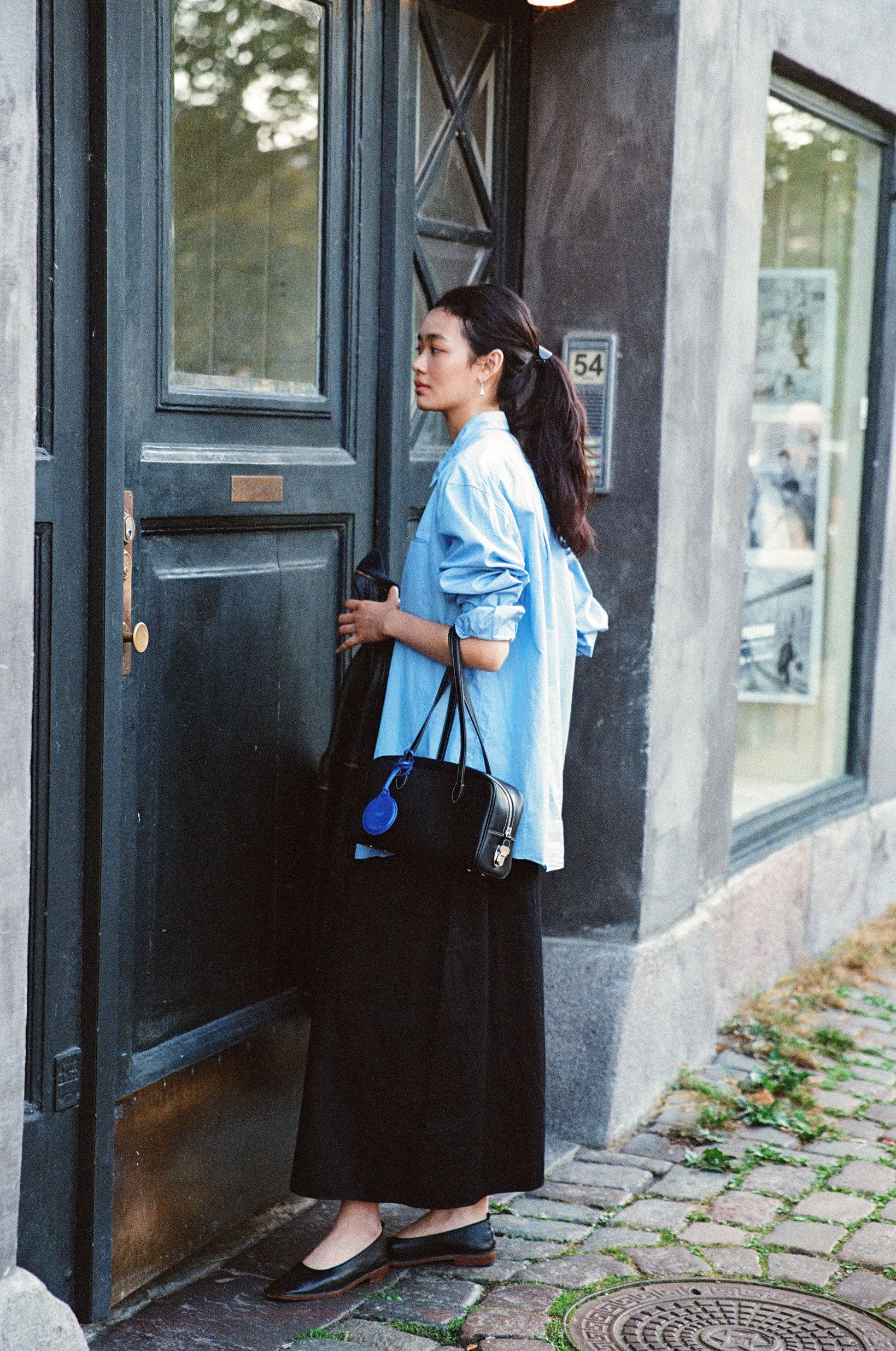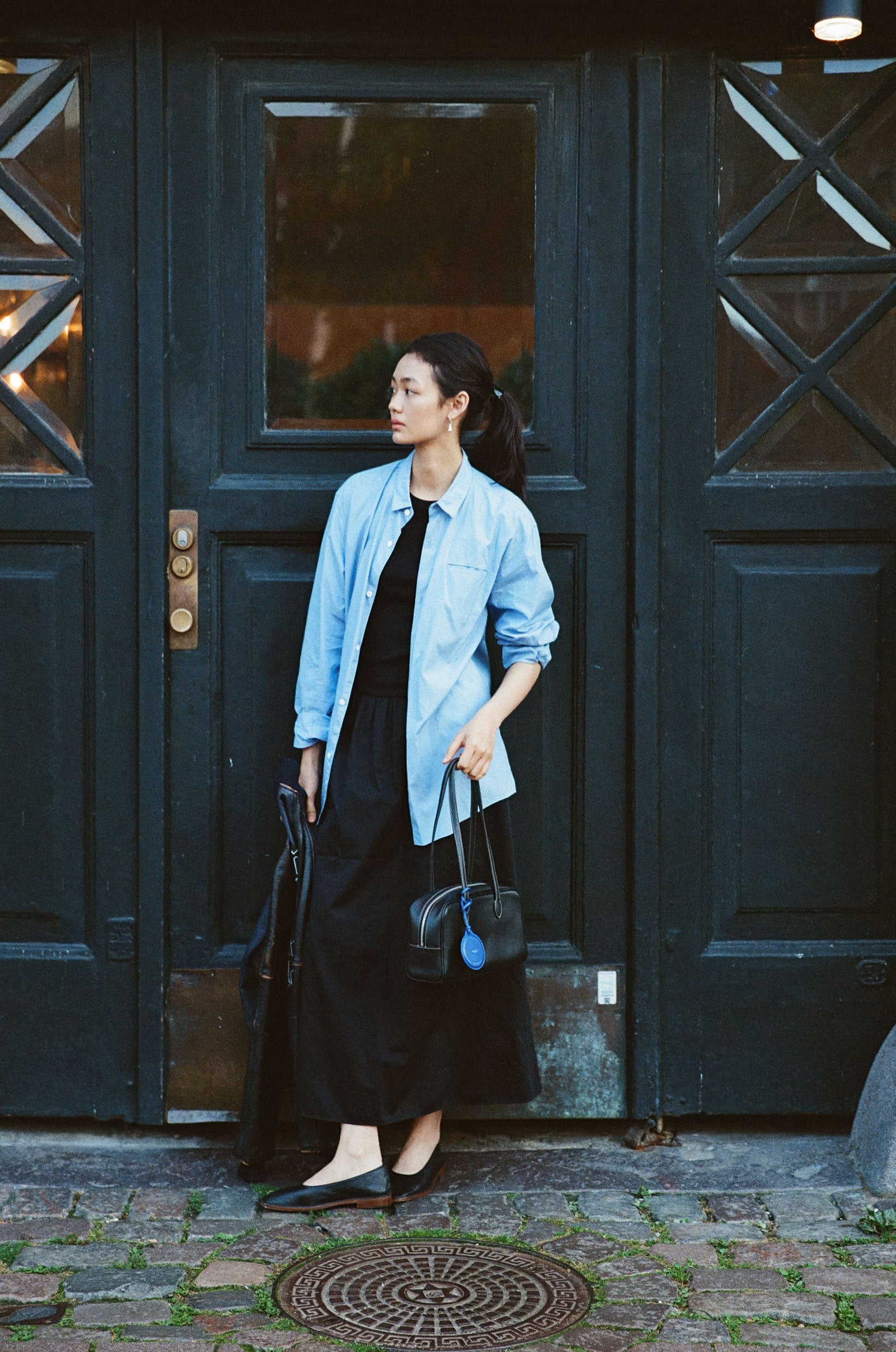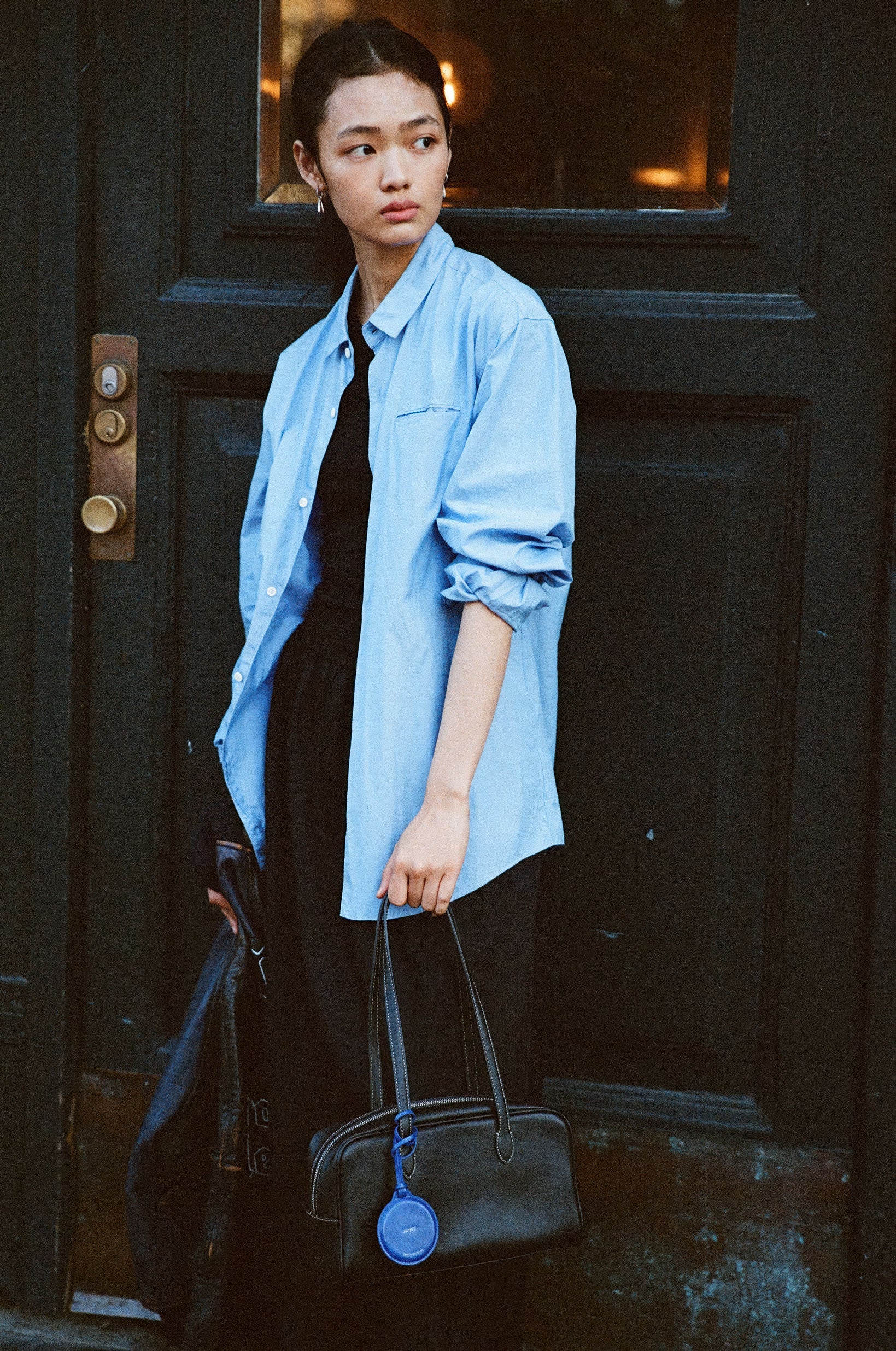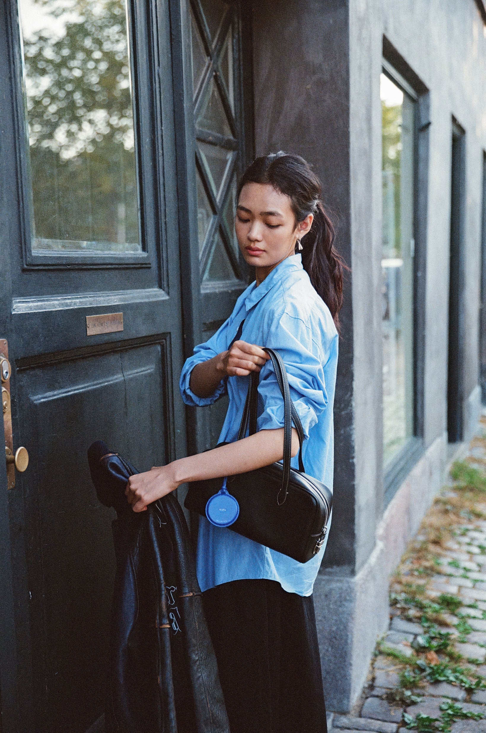 The pendant mirror is a mirror charm that adds a subtle accent to your bag. The front is made of soft cowhide leather, while the back features a mirror, combining decorative appeal with practicality. The long leather strap can be wrapped around bag handles or decorative elements to create a natural look at your preferred length. Lightweight with gentle curves, the front is finished with a simple foil-stamped logo.