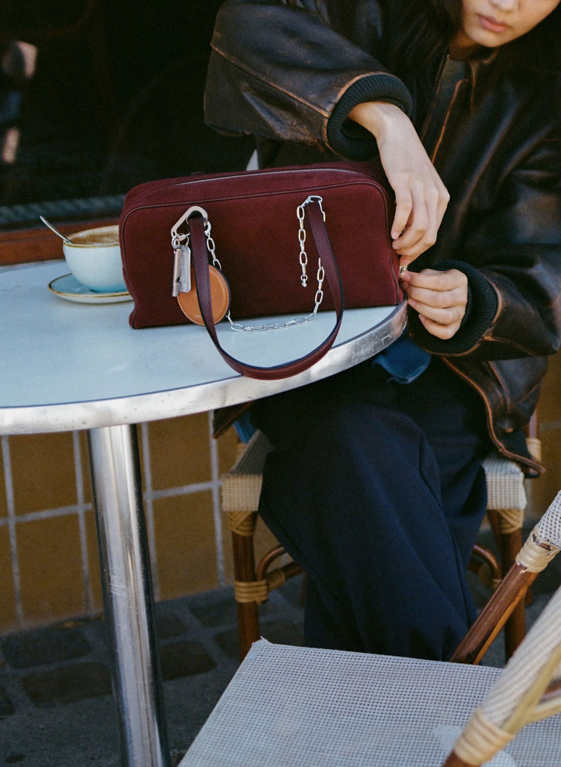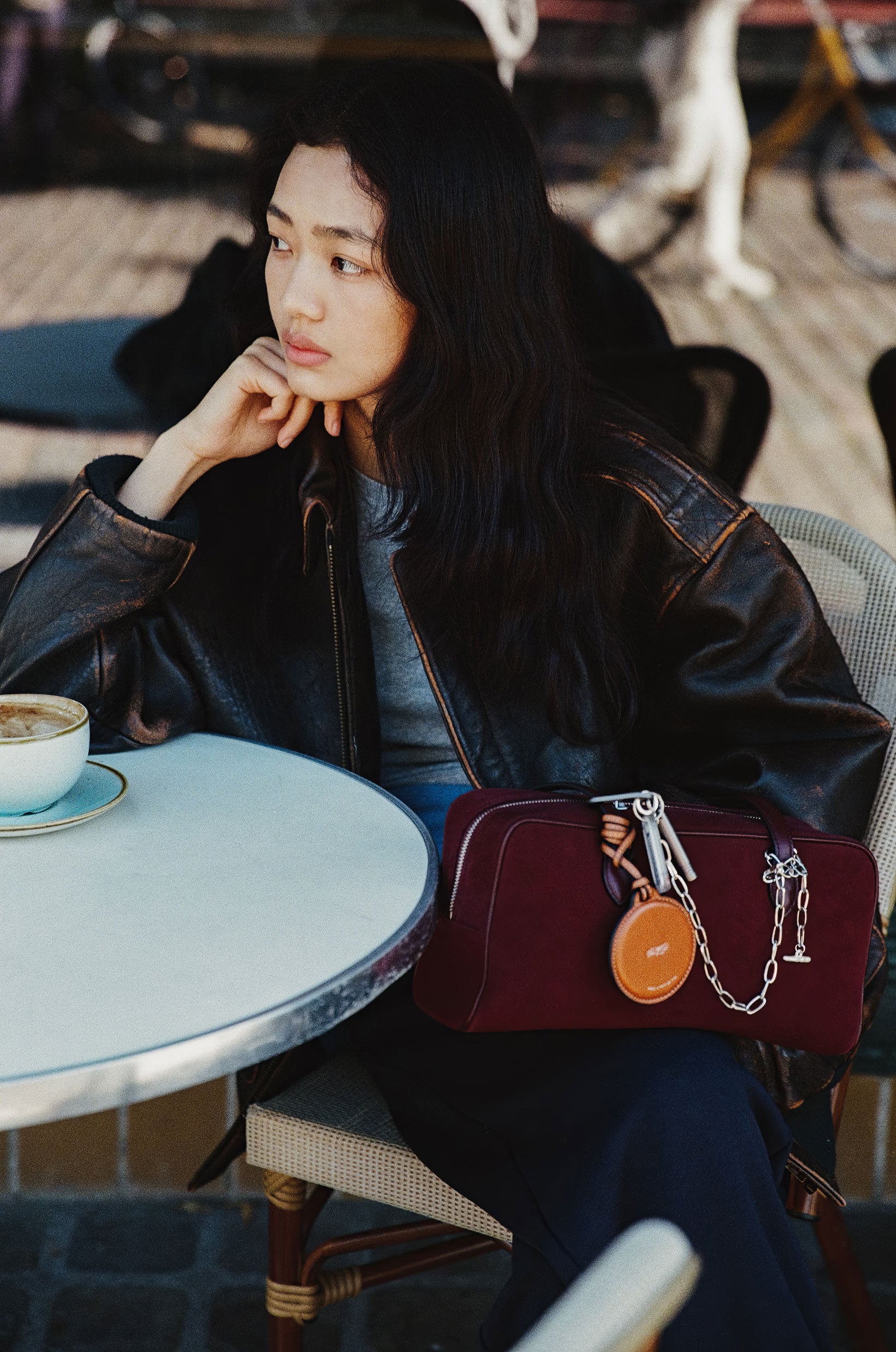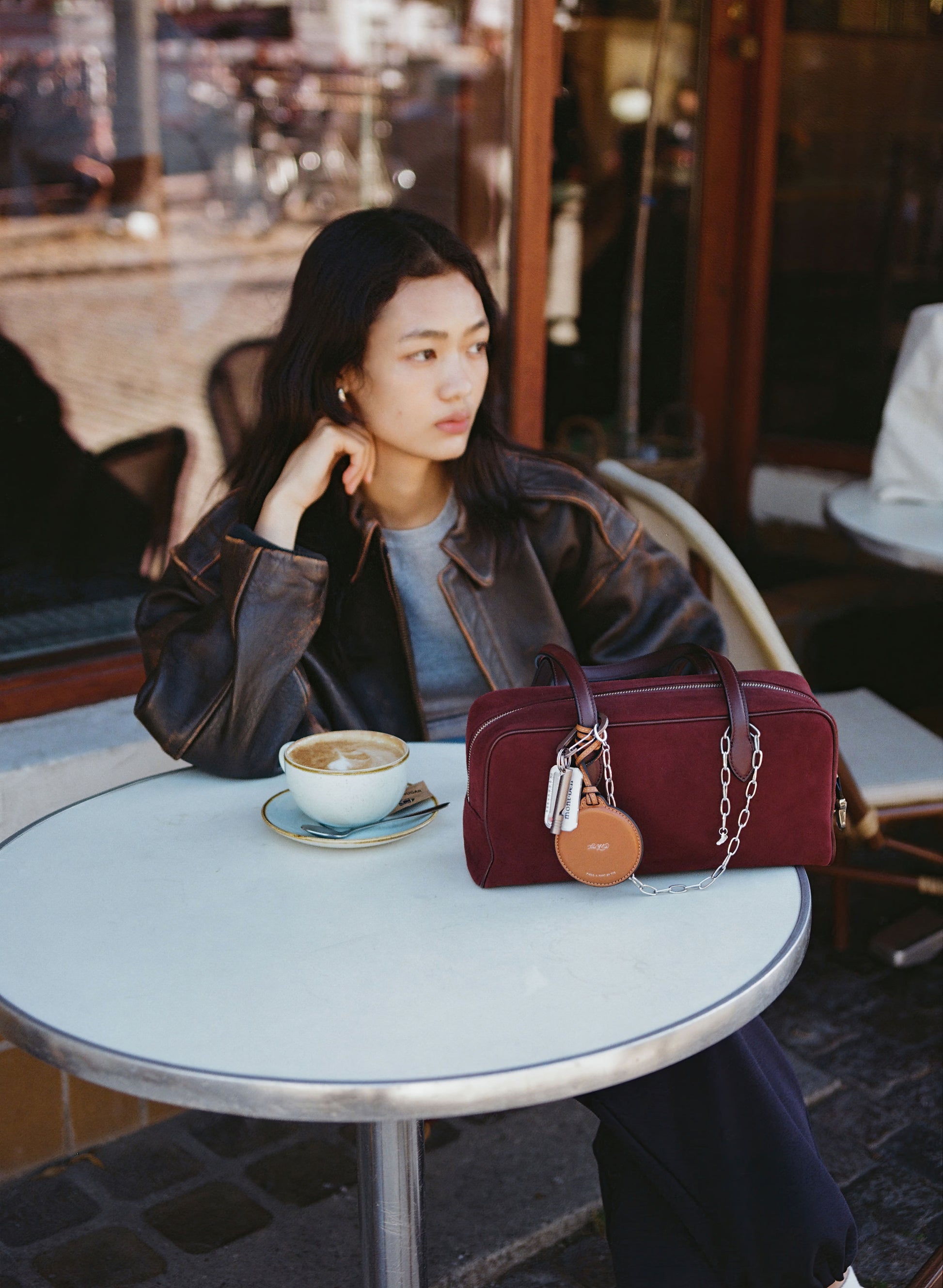 The pendant mirror is a mirror charm that adds a subtle accent to your bag. The front is made of soft cowhide leather, while the back features a mirror, combining decorative appeal with practicality. The long leather strap can be wrapped around bag handles or decorative elements to create a natural look at your preferred length. Lightweight with gentle curves, the front is finished with a simple foil-stamped logo.