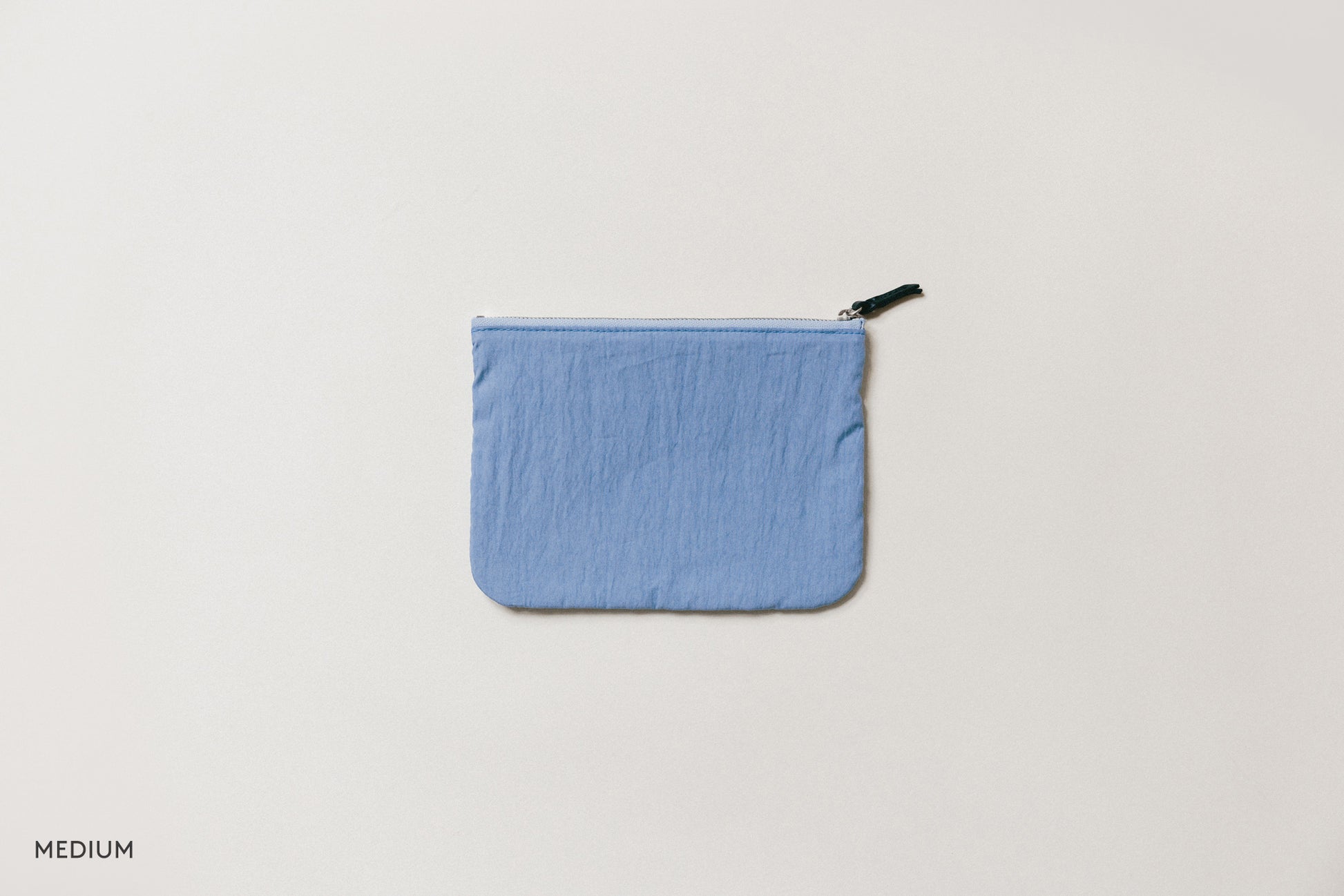 Available in various sizes and colors, the pouch helps you organize items by purpose. The small size is perfect for credit cards and cash, or for simple items like lip balm and earphones. The medium size works well as a cosmetic pouch or for holding a passport while traveling. The large size fits stationery and an iPad mini, and can hold a generous amount of cosmetics for travel.