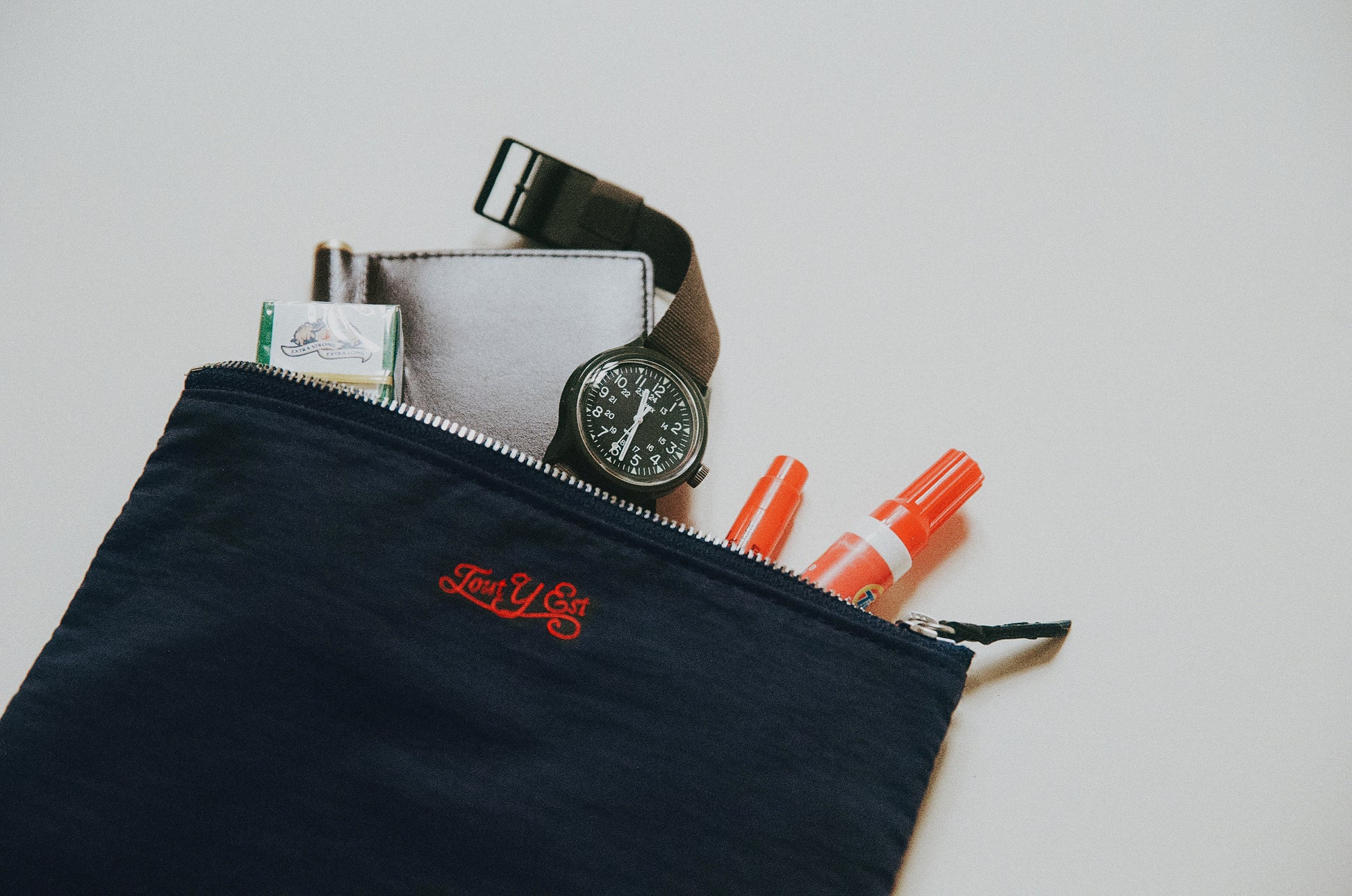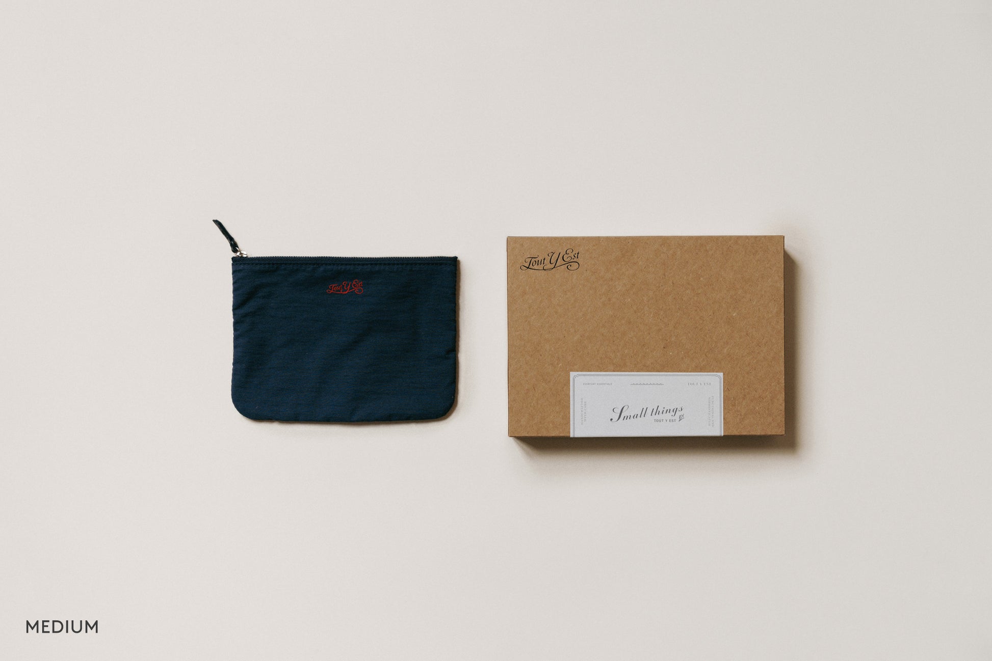 Available in various sizes and colors, the pouch helps you organize items by purpose. The small size is perfect for credit cards and cash, or for simple items like lip balm and earphones. The medium size works well as a cosmetic pouch or for holding a passport while traveling. The large size fits stationery and an iPad mini, and can hold a generous amount of cosmetics for travel.
