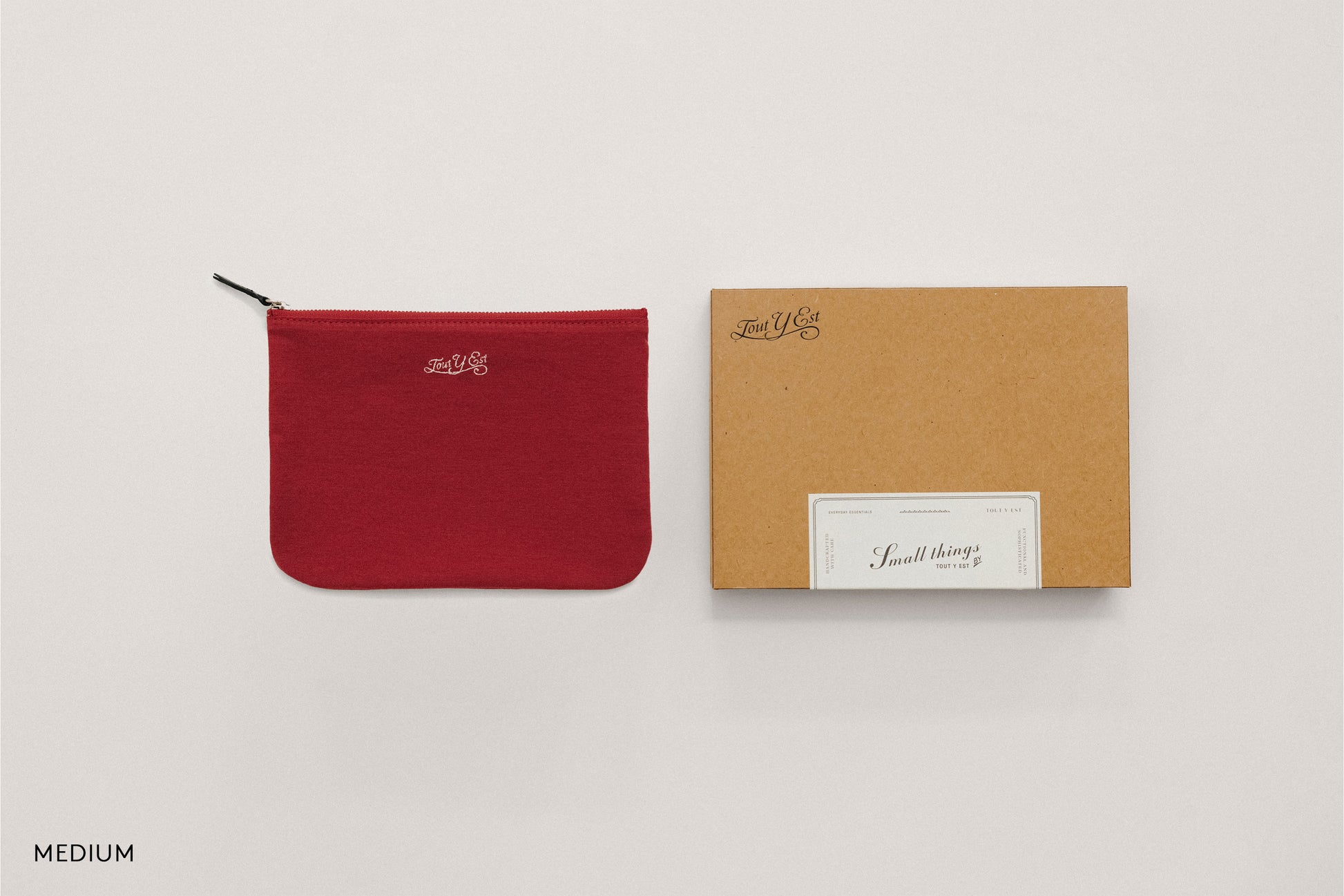 Available in various sizes and colors, the pouch helps you organize items by purpose. The small size is perfect for credit cards and cash, or for simple items like lip balm and earphones. The medium size works well as a cosmetic pouch or for holding a passport while traveling.