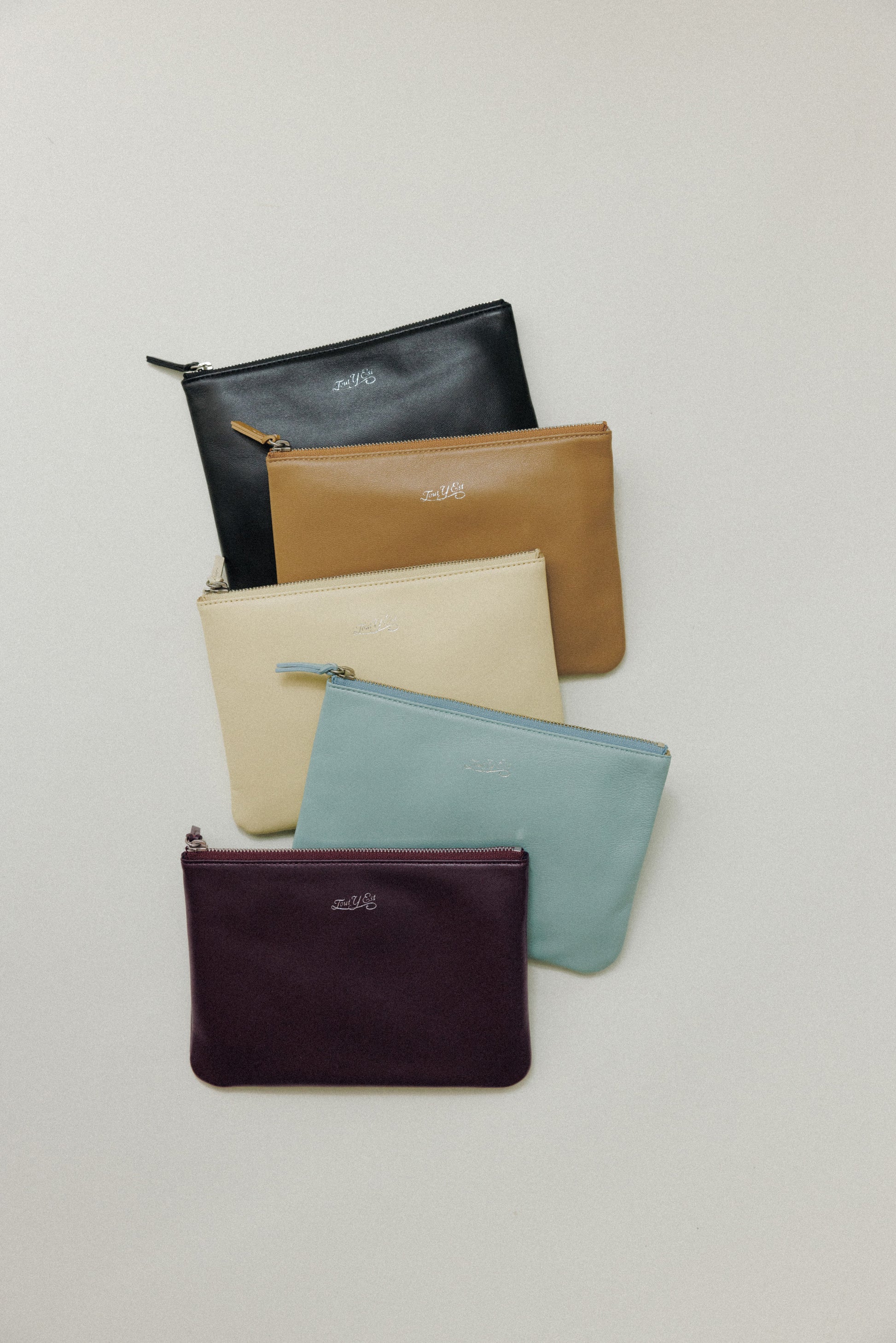 POCHETTE LISSE is a rectangular flat pouch crafted from soft lamb leather. Its simple silhouette is highlighted by a subtle TOUT Y EST logo in silver foil. Lined with cotton and fitted with a slim inner pocket, it’s perfect for organizing daily items or carrying as a standalone pouch for short outings.