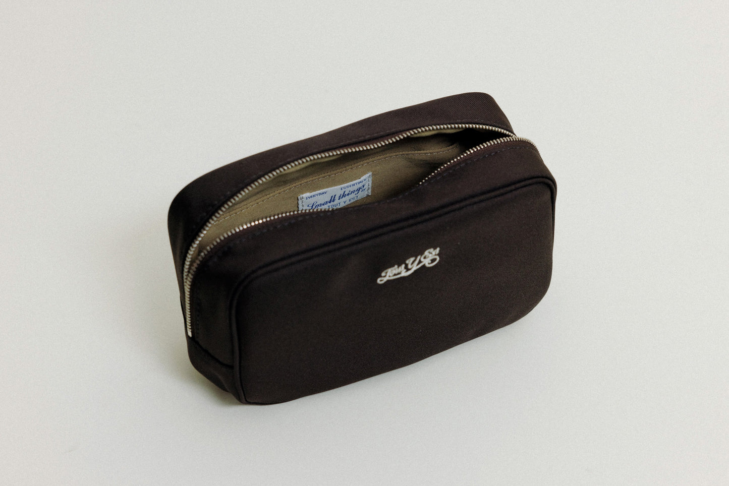 • This pouch can be hand-washed using a neutral detergent. However, due to the nature of the material, discoloration or staining may occur. Please note that the zipper puller is made of leather, so extra care is needed when washing.