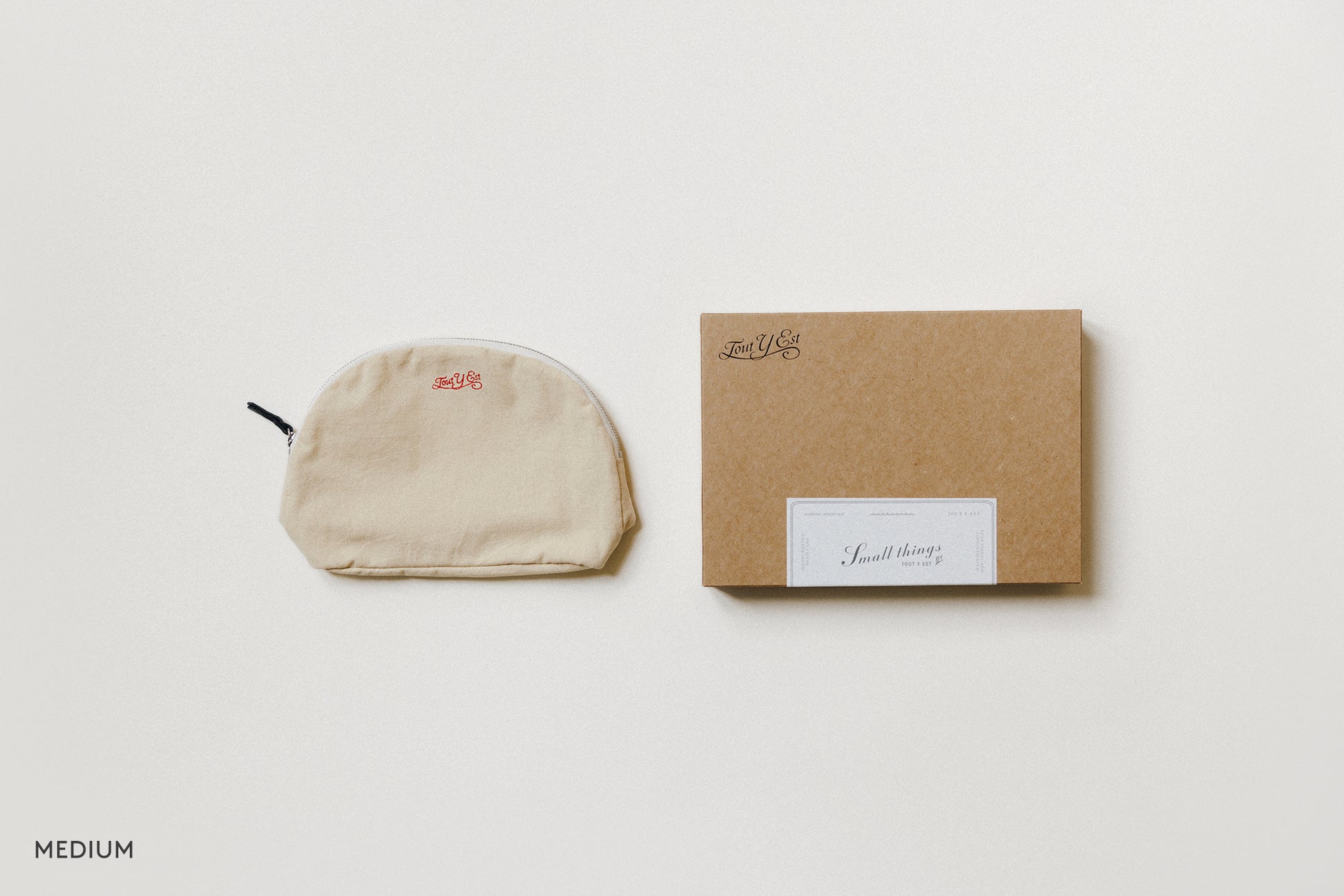 Available in various sizes and colors, this pouch allows you to organize your items by purpose. The small size is ideal for use as a wallet for credit cards and cash, or for storing small items like earphones and cosmetics. It’s also suitable for holding a passport. The large size is great for carrying a generous amount of cosmetics, making it perfect for travel.