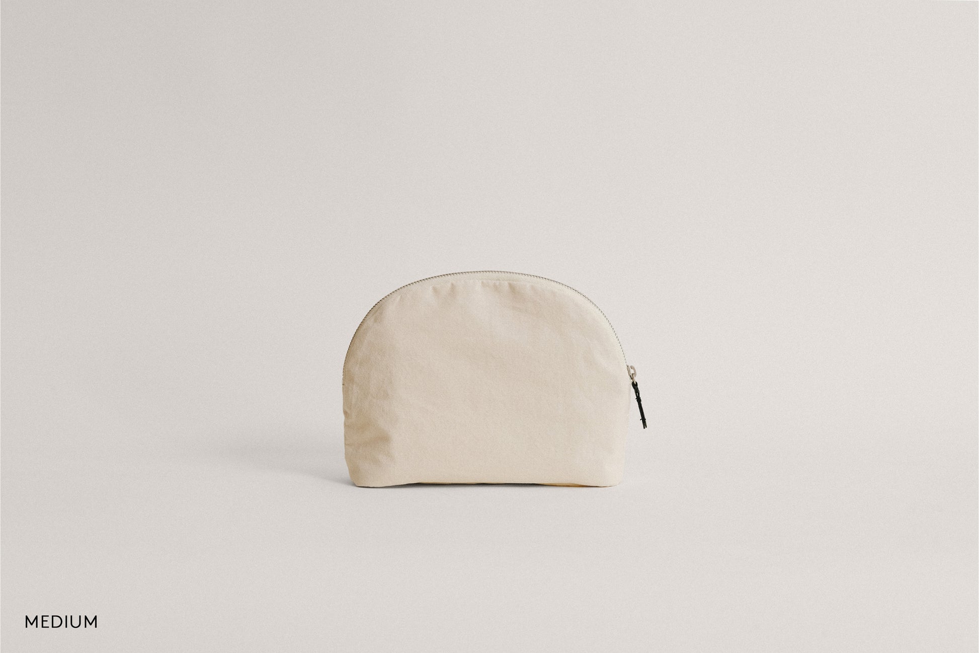 Available in various sizes and colors, this pouch allows you to organize your items by purpose. The small size is ideal for use as a wallet for credit cards and cash, or for storing small items like earphones and cosmetics. It’s also suitable for holding a passport. The large size is great for carrying a generous amount of cosmetics, making it perfect for travel.
