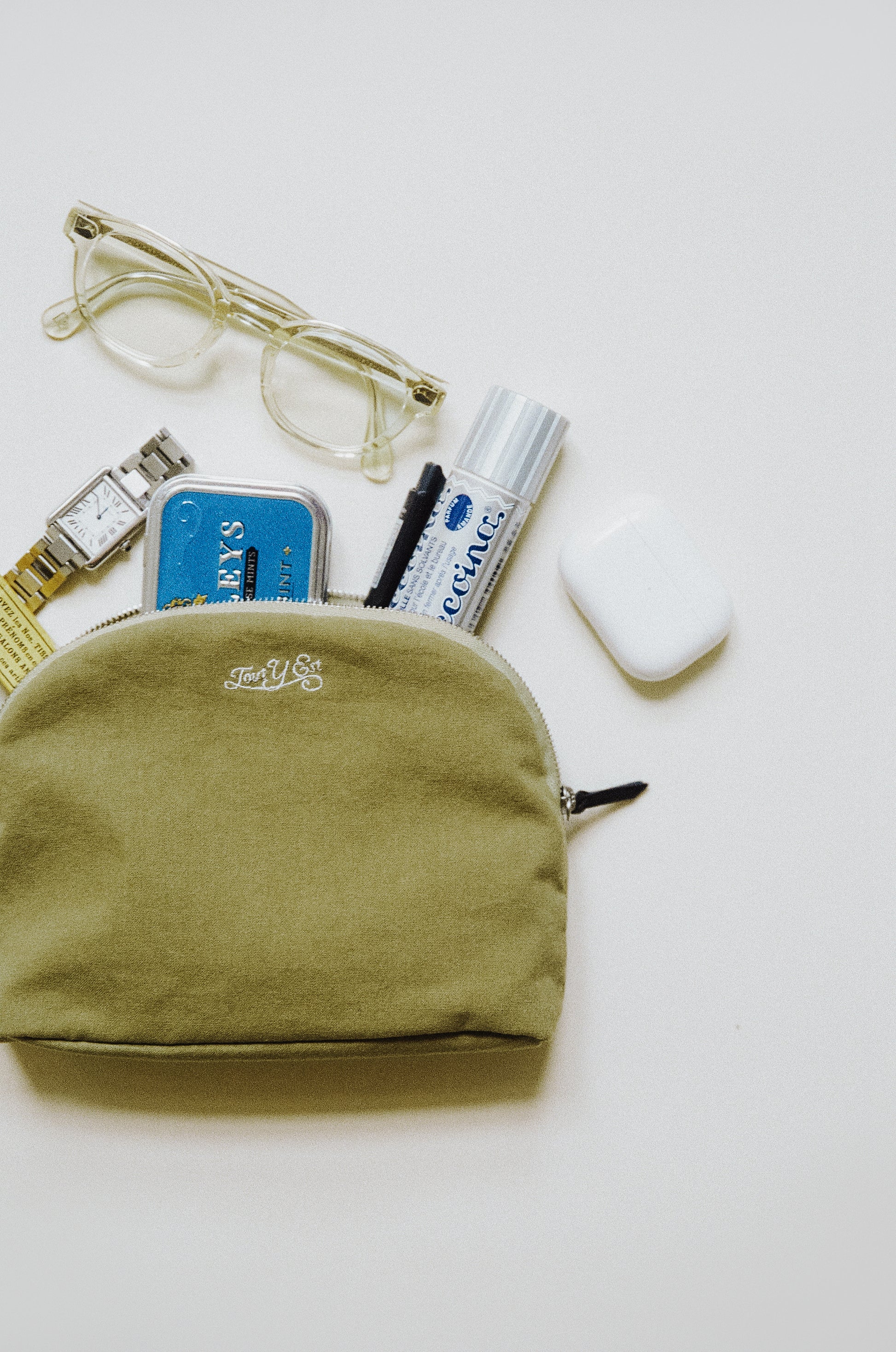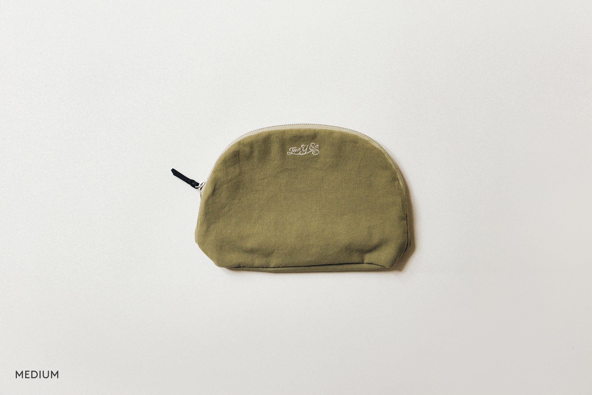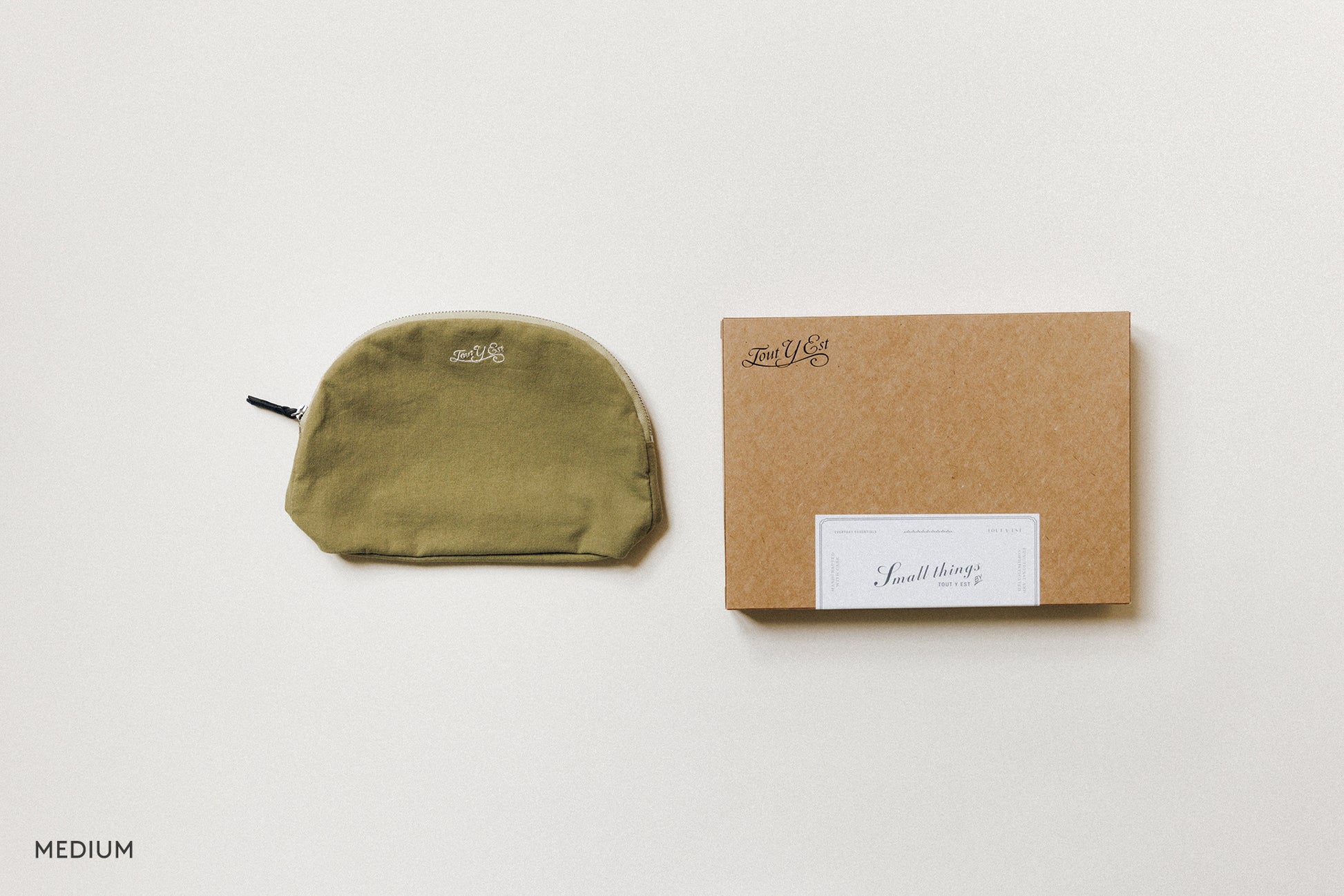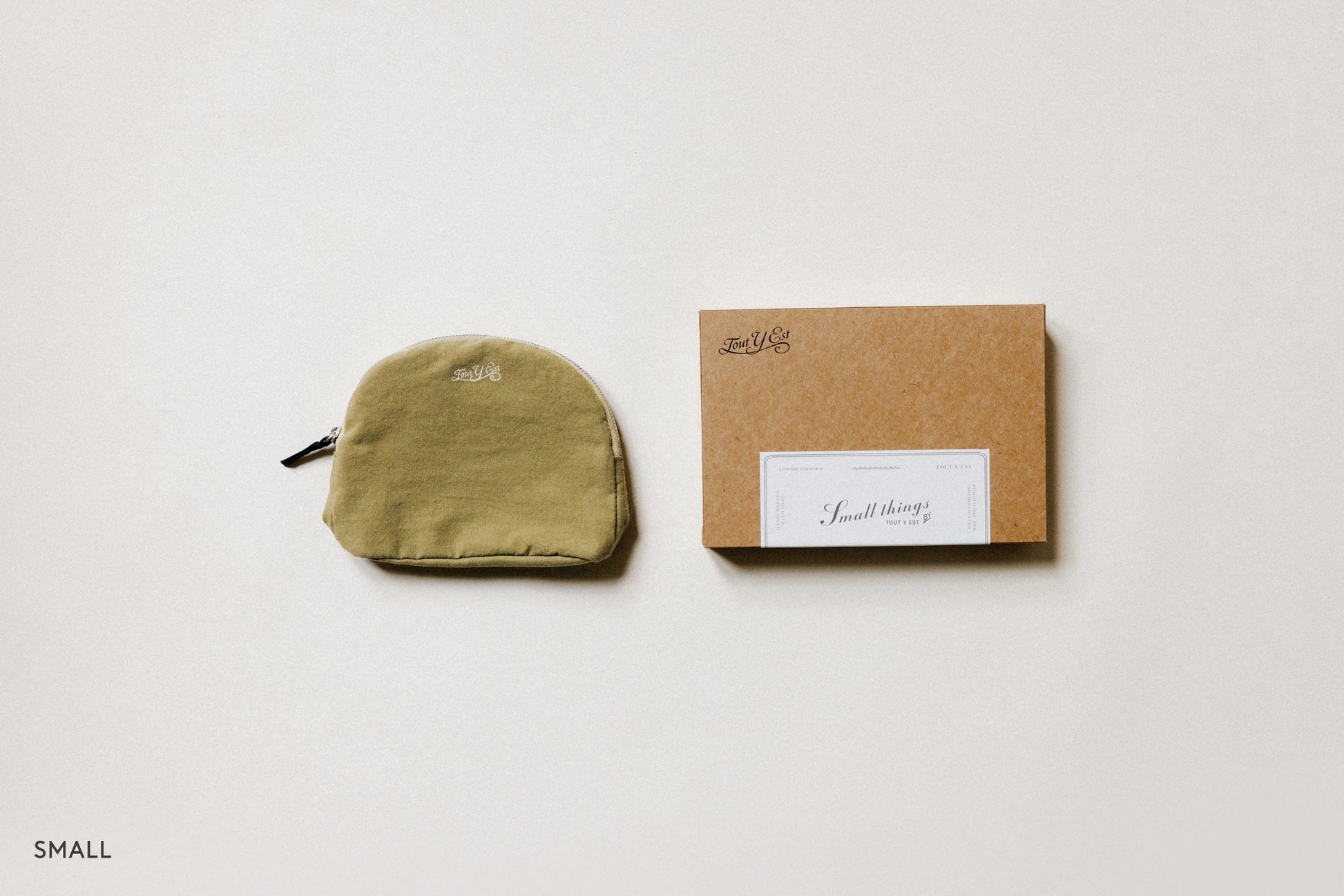 Available in various sizes and colors, this pouch allows you to organize your items by purpose. The small size is ideal for use as a wallet for credit cards and cash, or for storing small items like earphones and cosmetics. It’s also suitable for holding a passport. The large size is great for carrying a generous amount of cosmetics, making it perfect for travel.