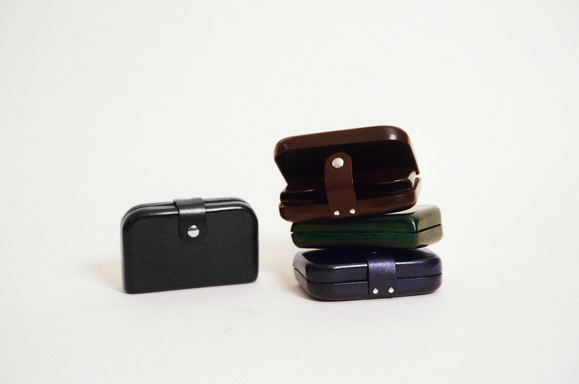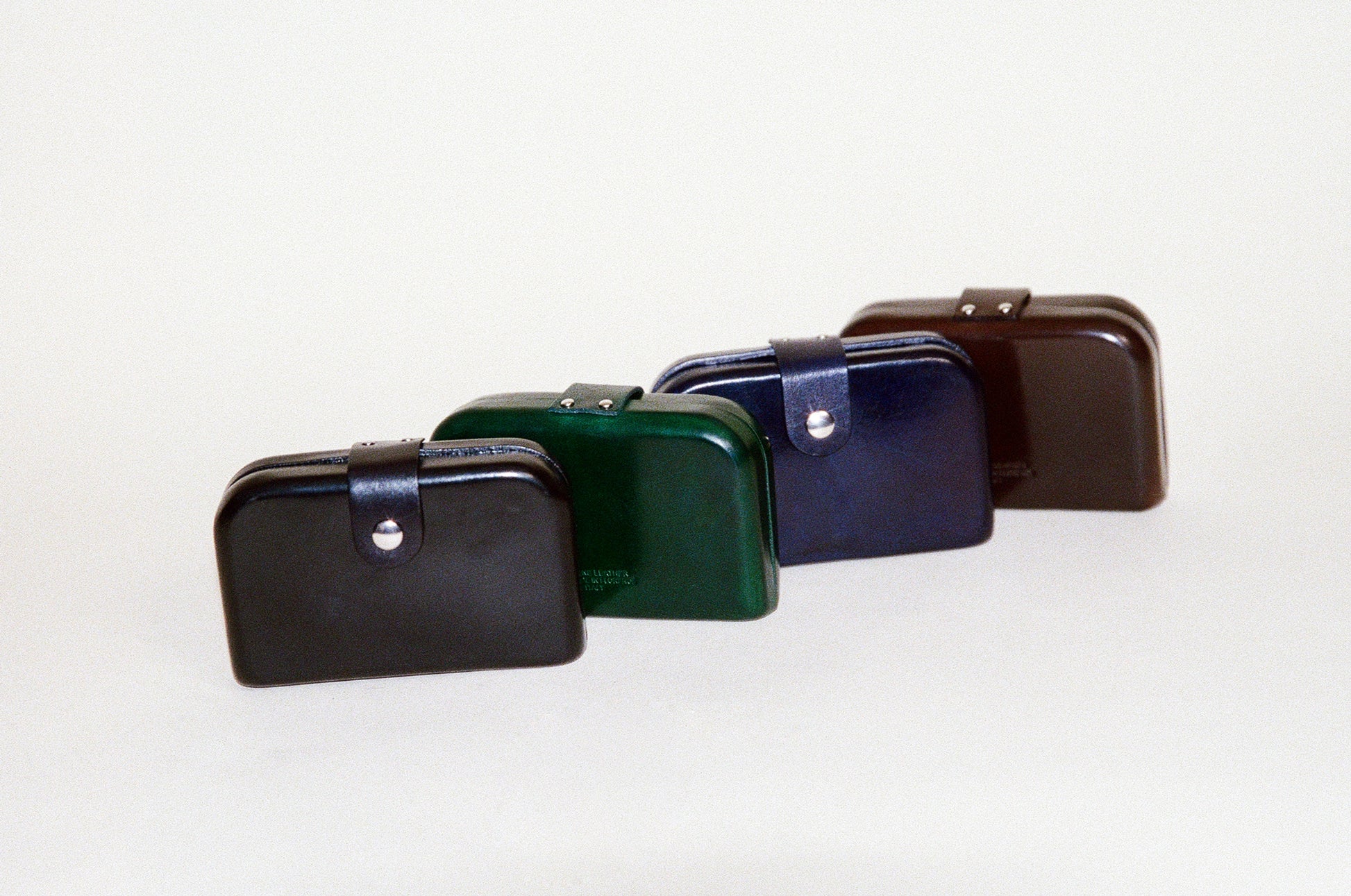 The Florence wallet features a boxy structure that beautifully showcases the appeal of the molding technique. The handle is accented with eyelet details and equipped with a snap button for secure closure. Inside, it offers two card pockets and a leather clip, providing practical storage for cards, cash, and receipts. The structured design contrasts with its minimalist exterior, adding both style and functionality to everyday life.