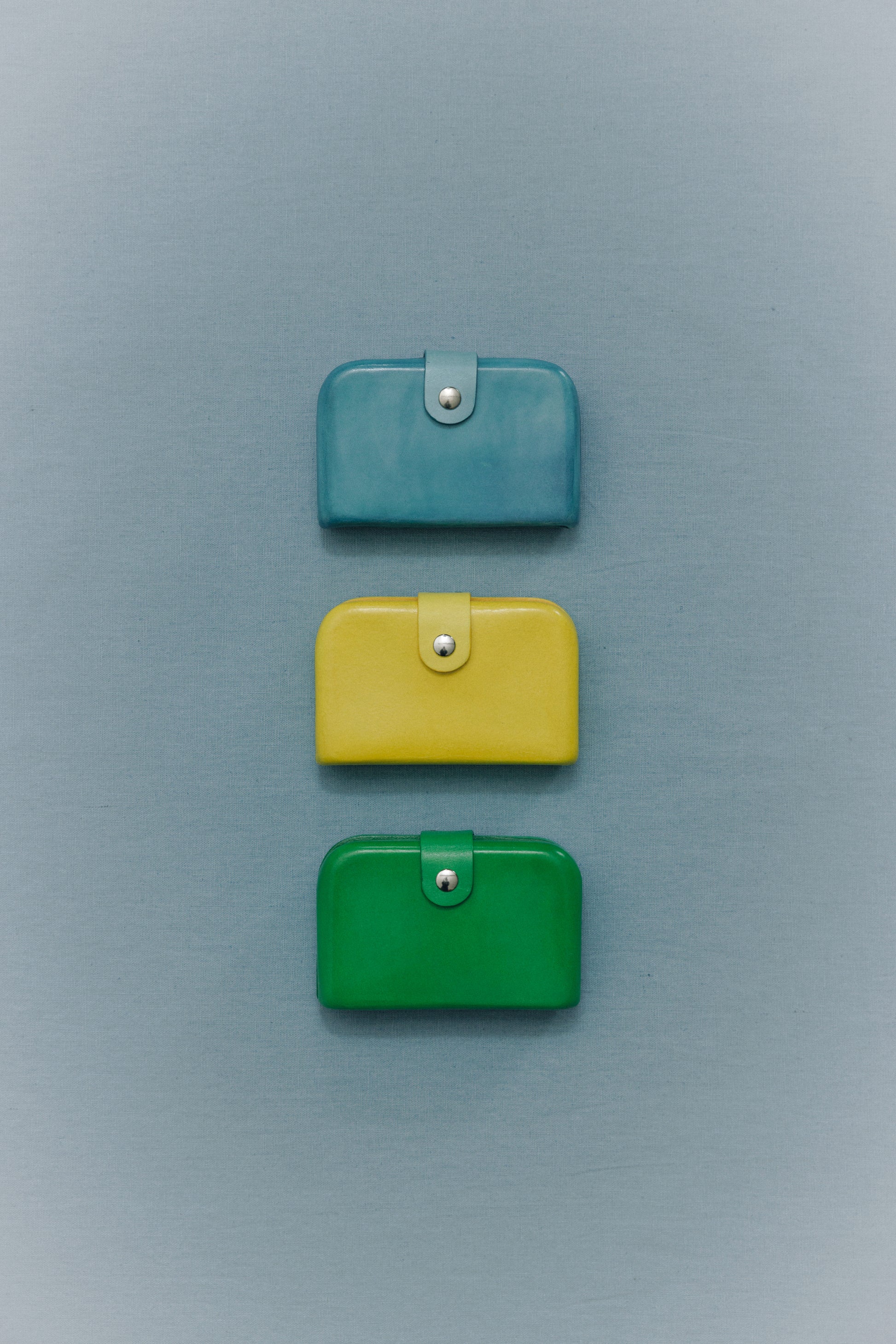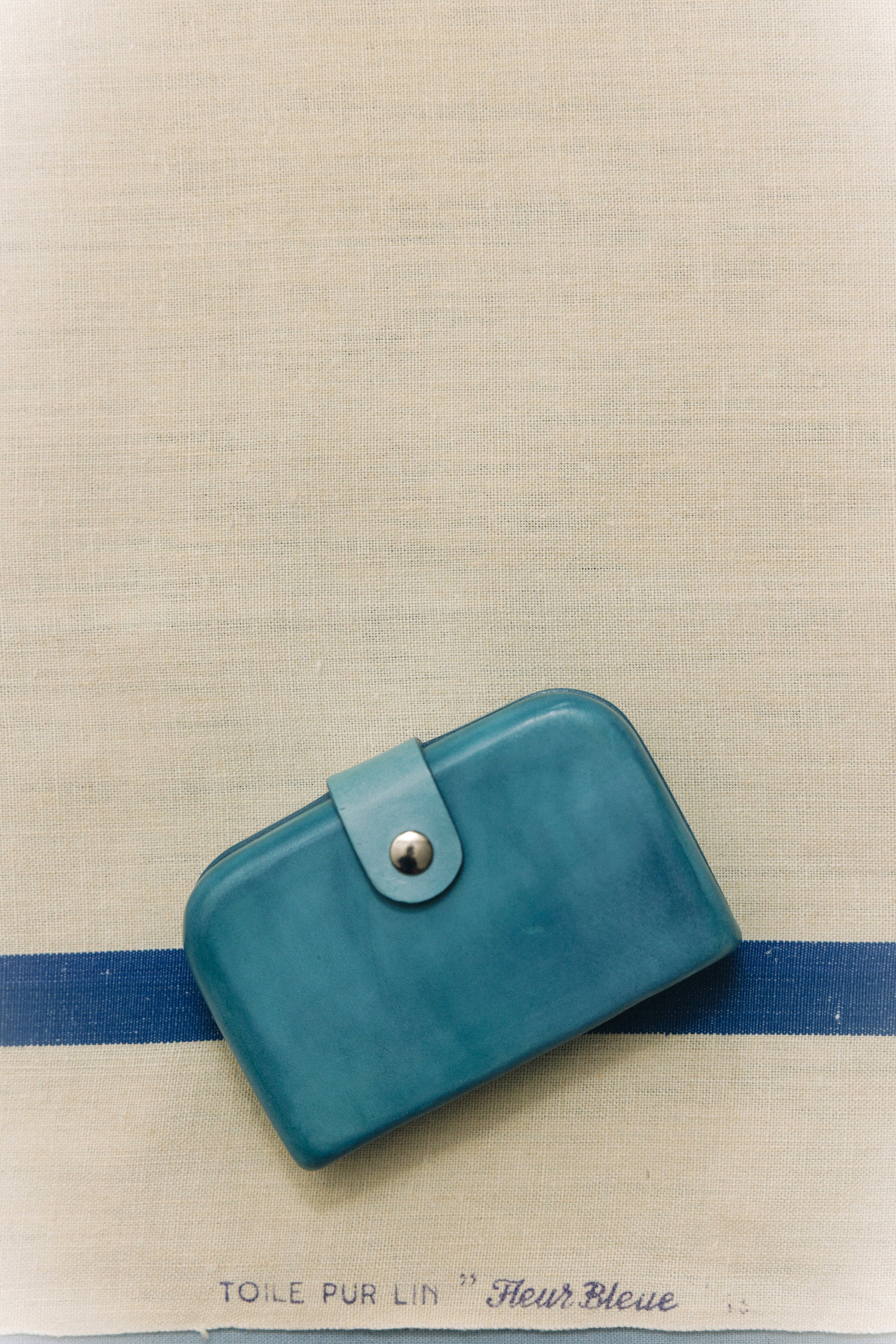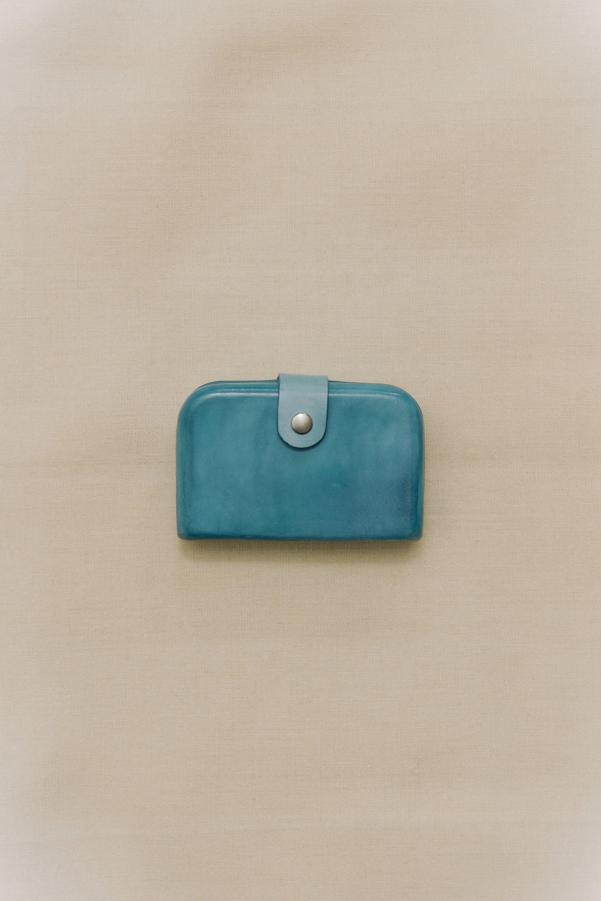 The Florence wallet features a boxy structure that beautifully showcases the appeal of the molding technique. The handle is accented with eyelet details and equipped with a snap button for secure closure. Inside, it offers two card pockets and a leather clip, providing practical storage for cards, cash, and receipts. The structured design contrasts with its minimalist exterior, adding both style and functionality to everyday life.