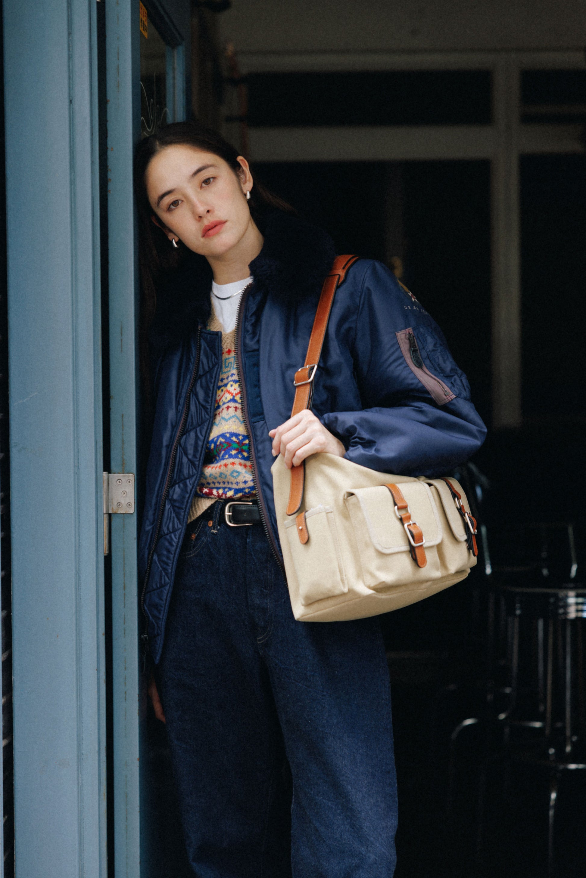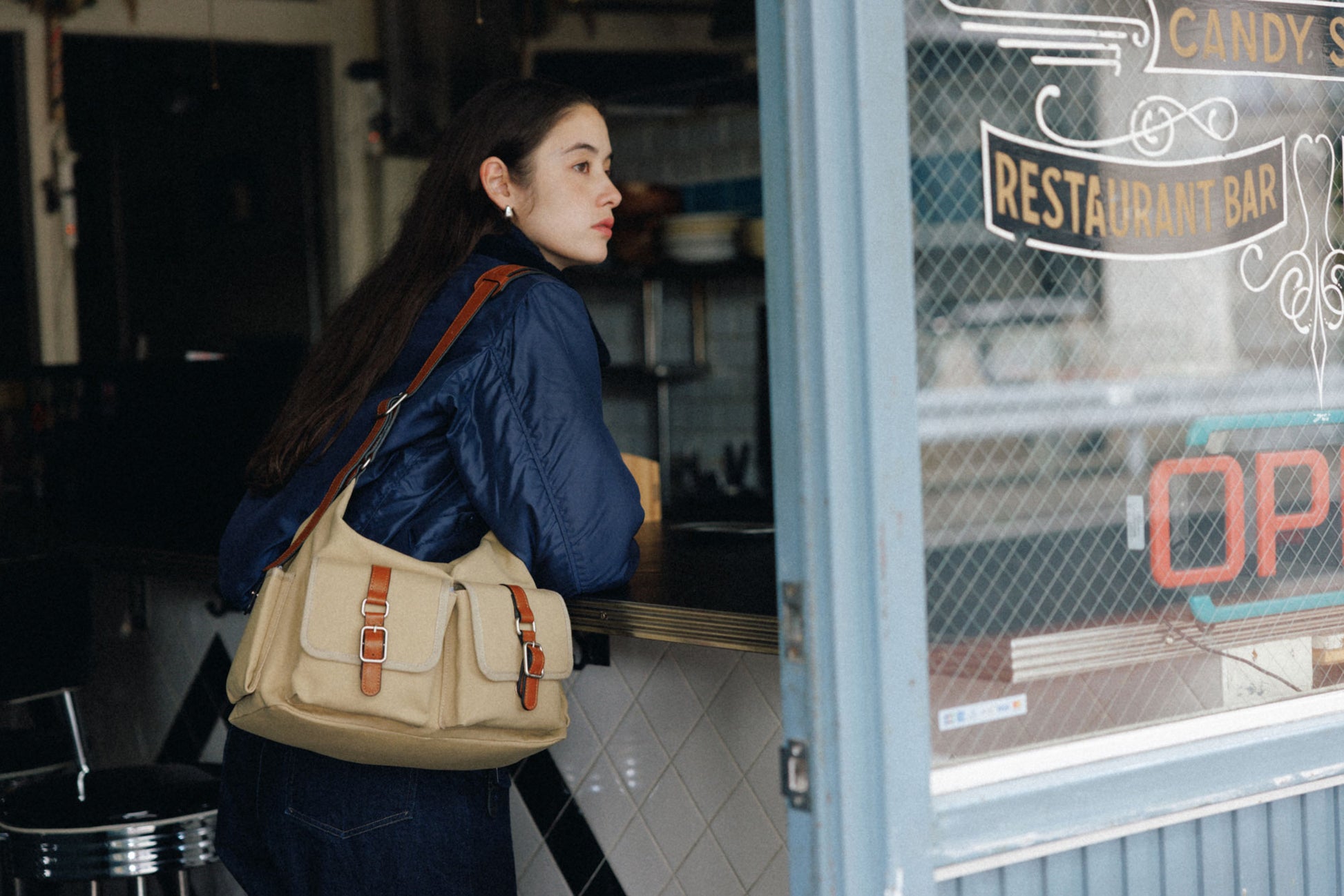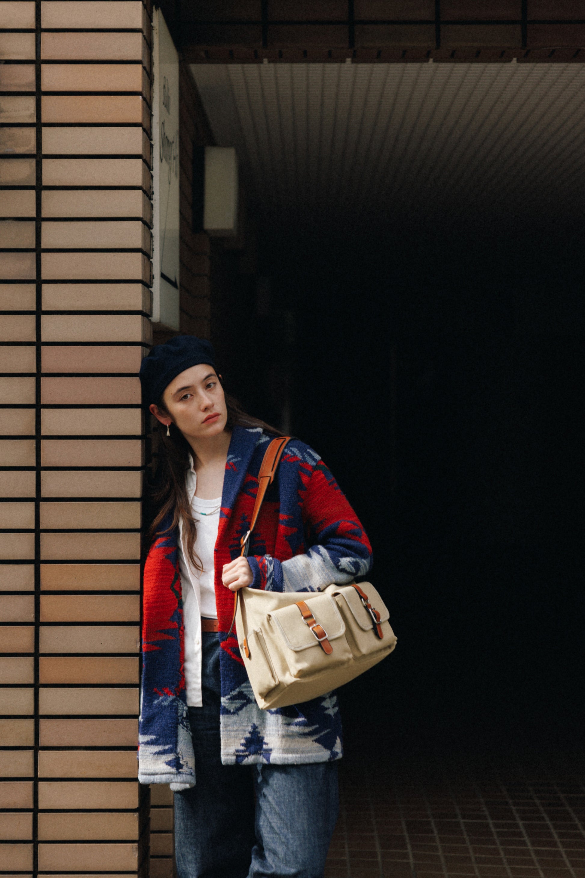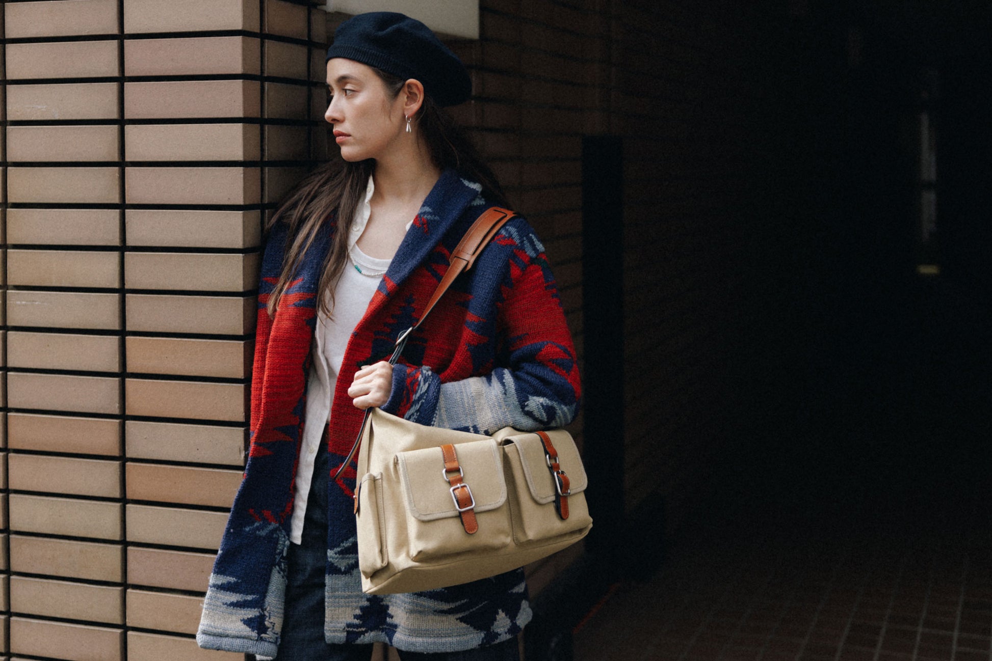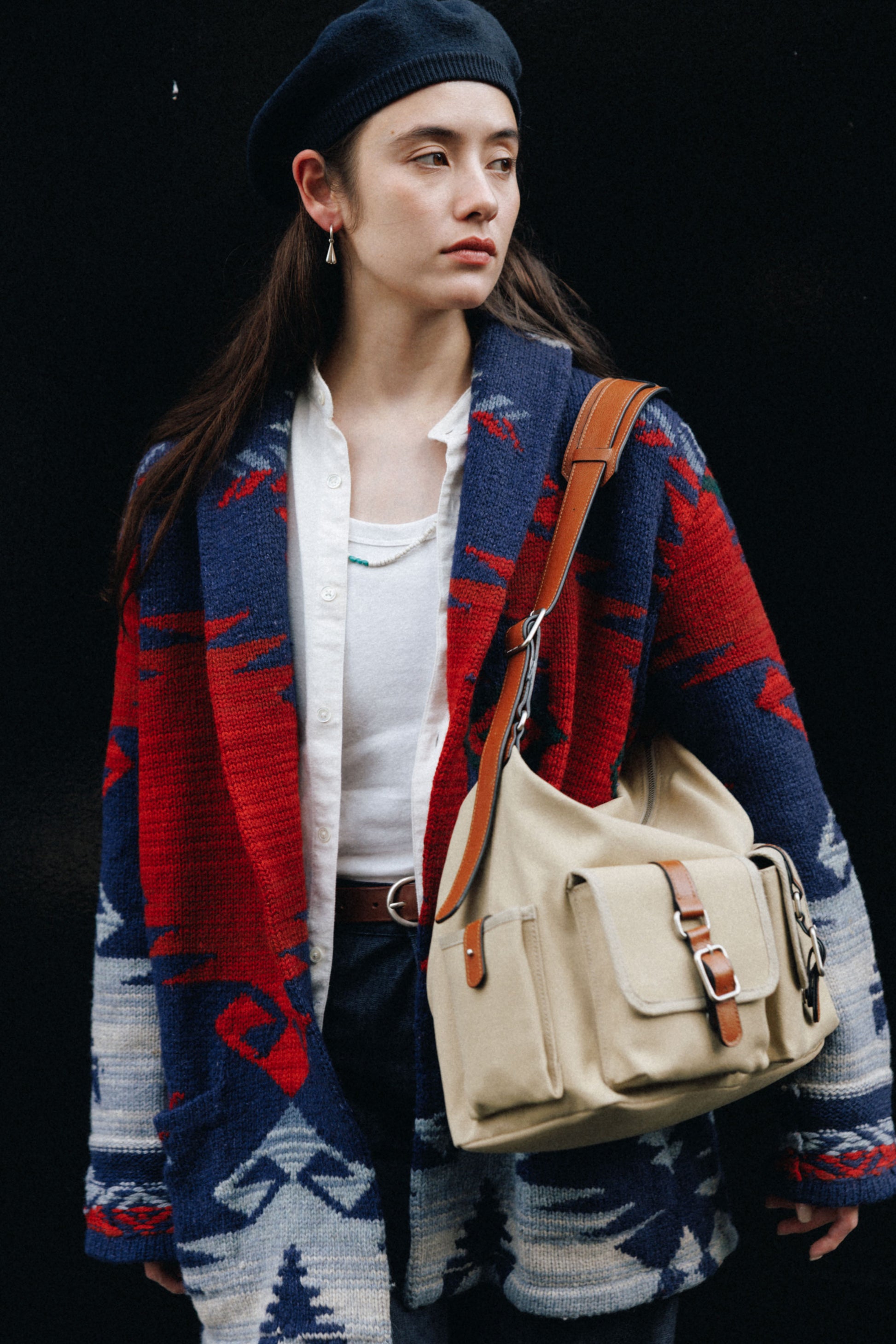 The softly curved silhouette creates a gentler impression compared to the original Bout Bag, and the top zipper closure adds convenience for everyday use. The front features the iconic leather-buckle pocket from the Bout line, while an additional side pocket offers extra storage. The cowhide strap includes a shoulder pad for enhanced comfort, and its adjustable length allows both shoulder and crossbody wear.