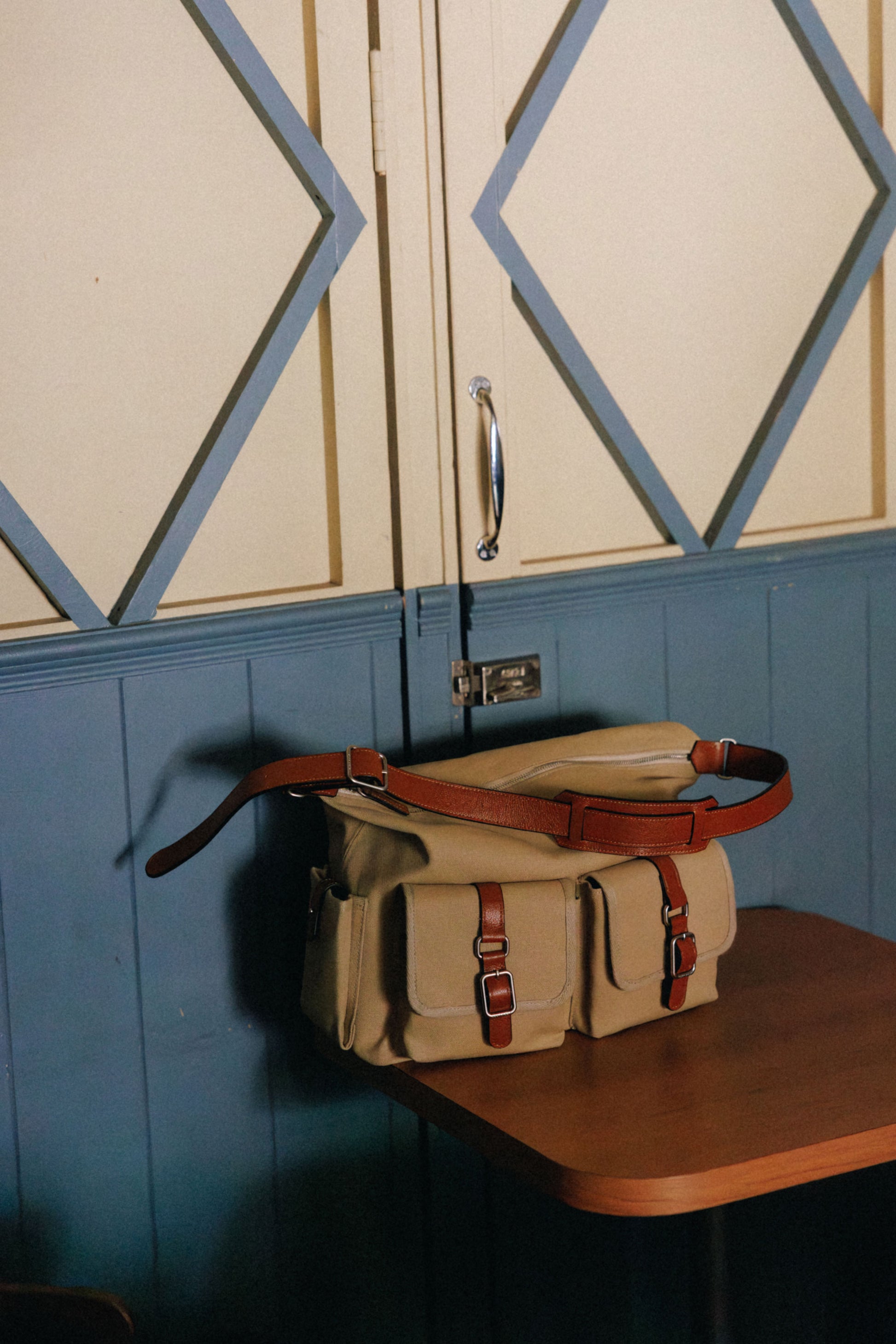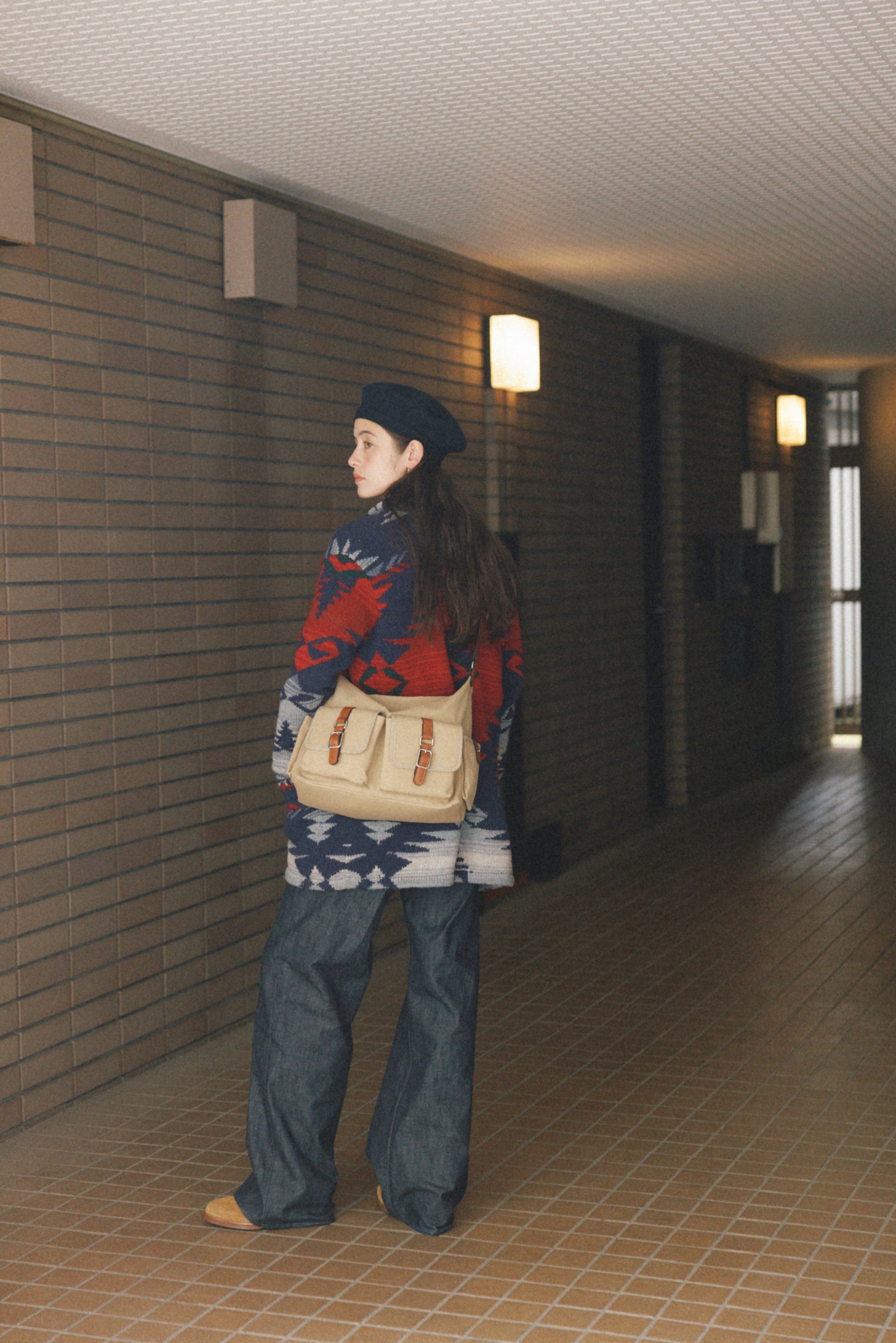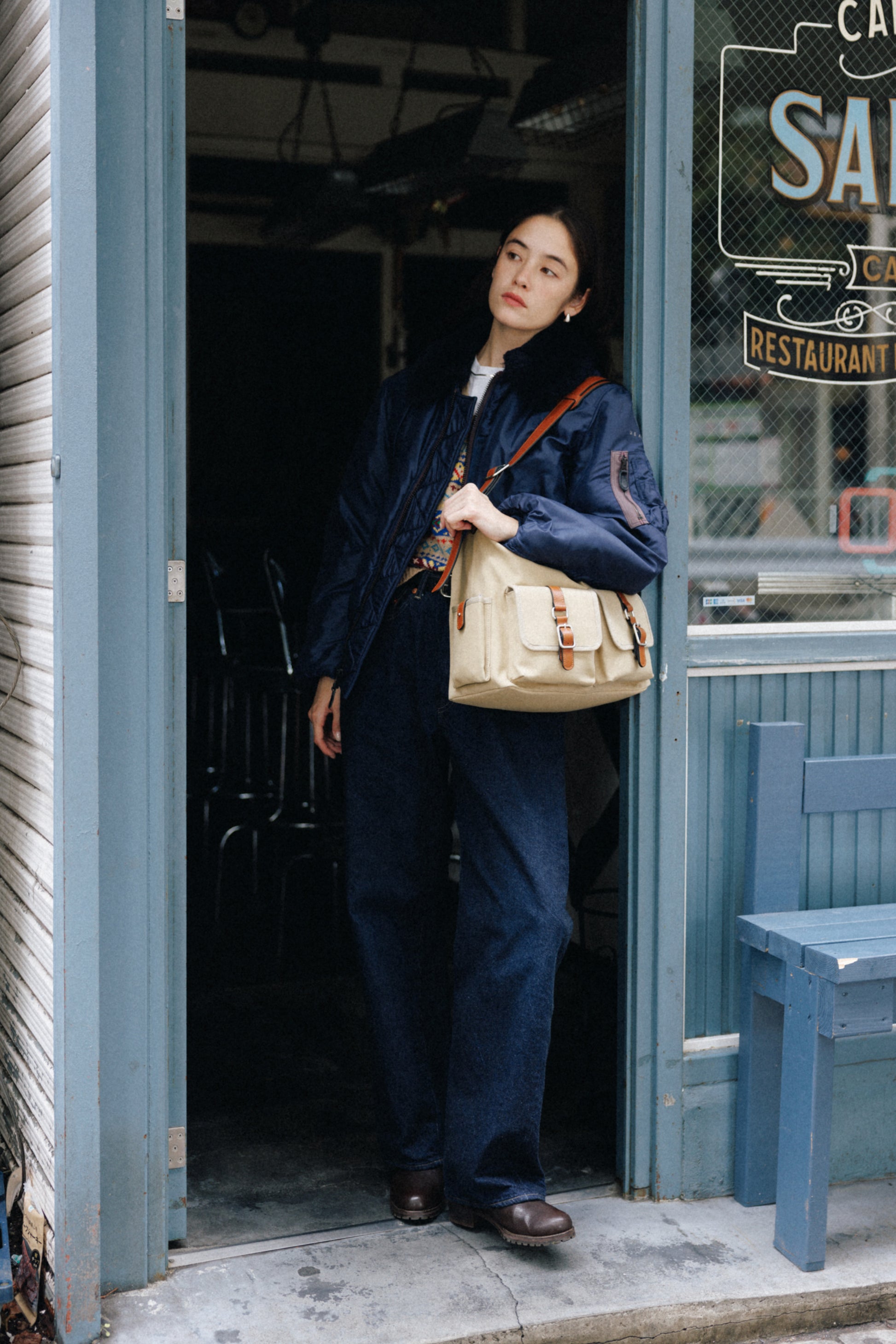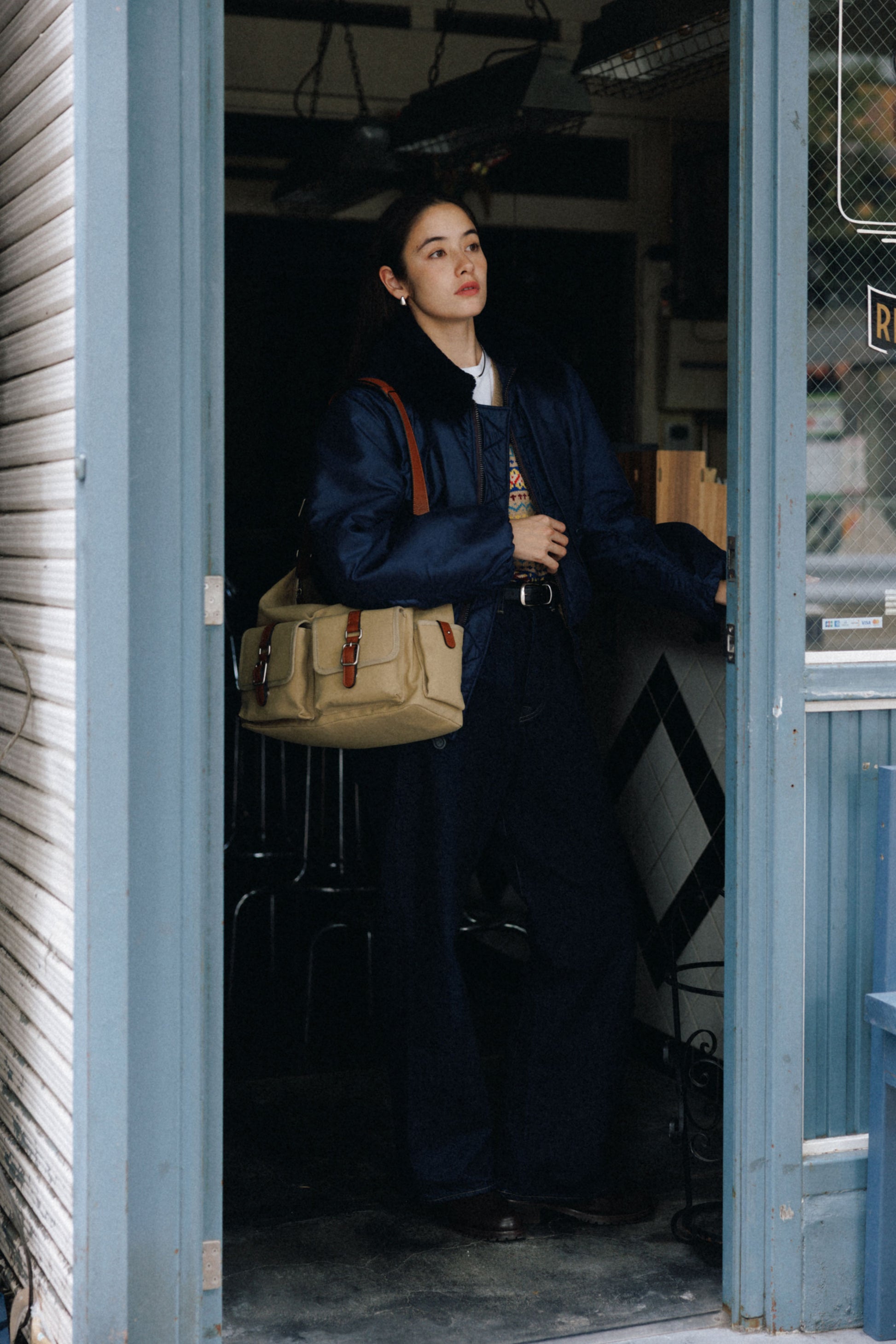 The softly curved silhouette creates a gentler impression compared to the original Bout Bag, and the top zipper closure adds convenience for everyday use. The front features the iconic leather-buckle pocket from the Bout line, while an additional side pocket offers extra storage. The cowhide strap includes a shoulder pad for enhanced comfort, and its adjustable length allows both shoulder and crossbody wear.