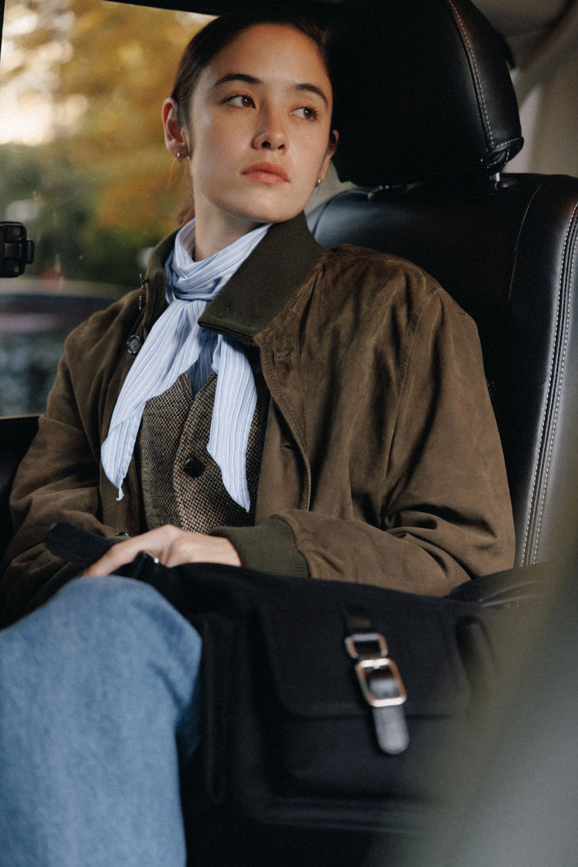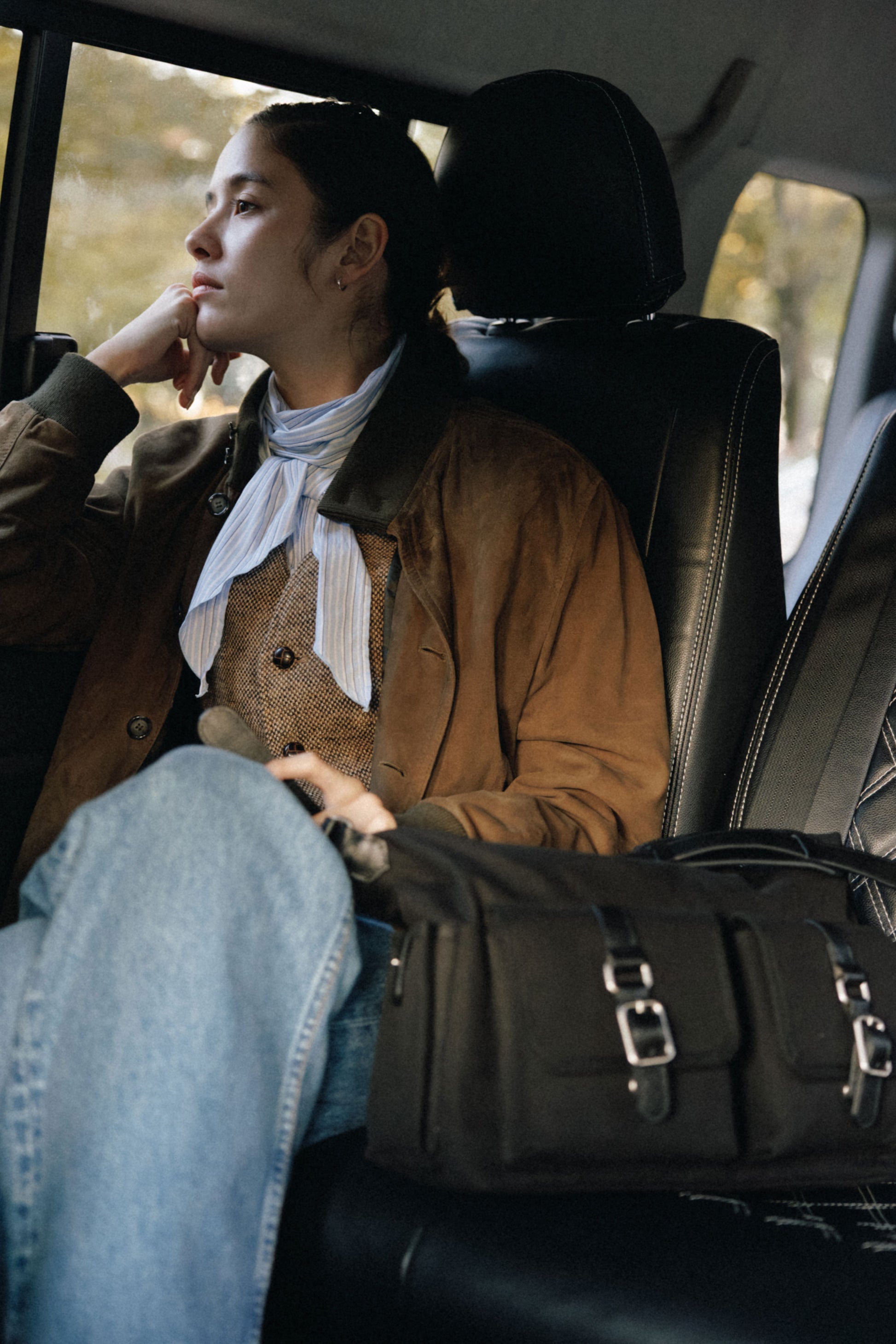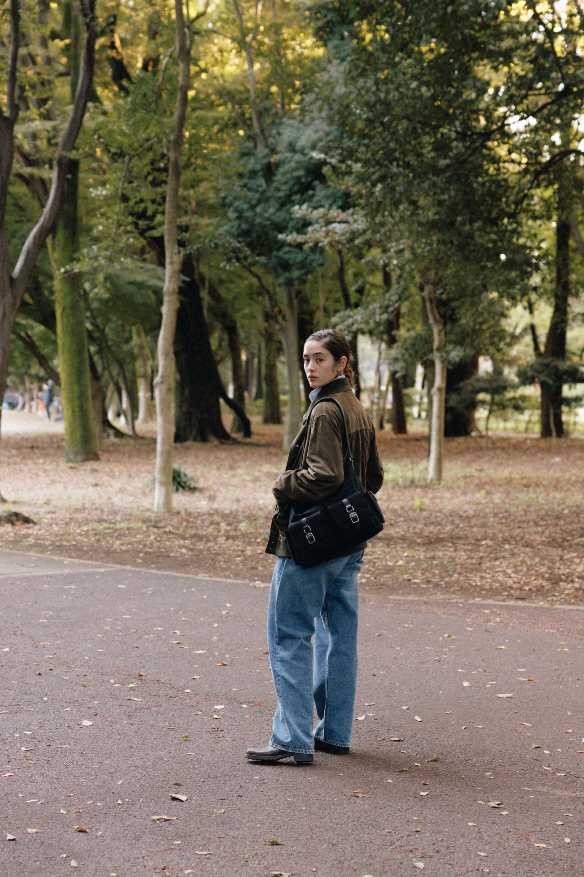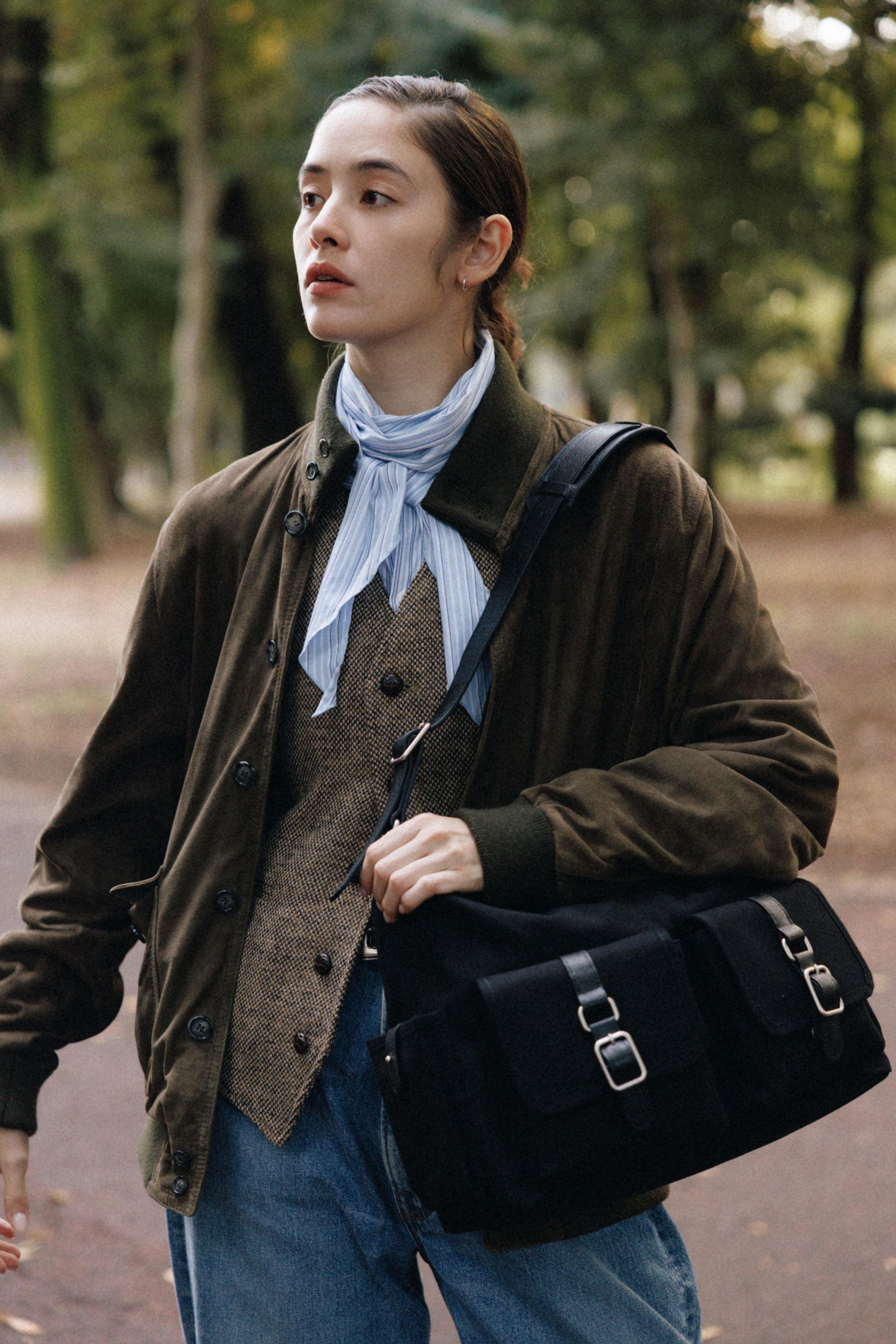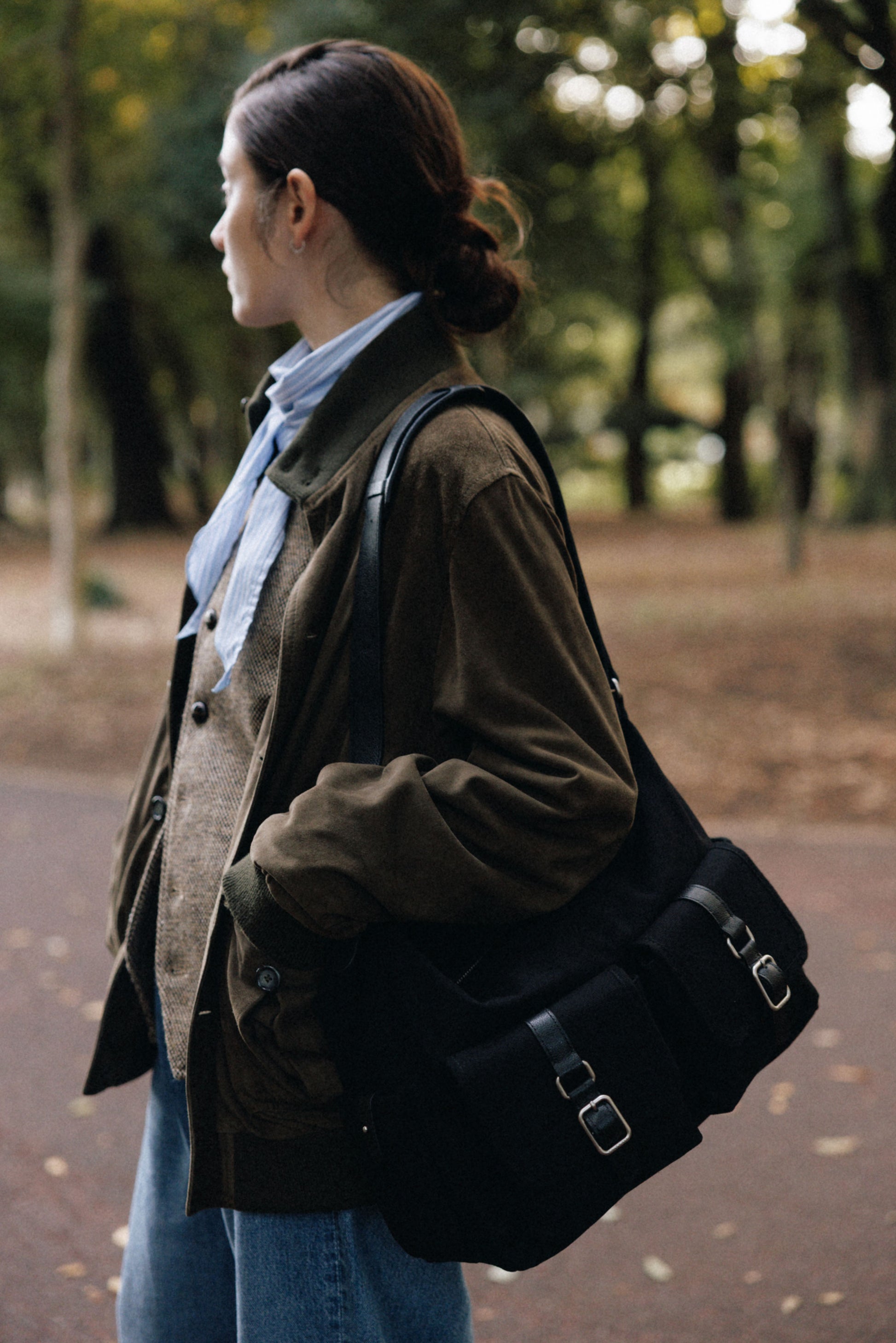 The softly curved silhouette creates a gentler impression compared to the original Bout Bag, and the top zipper closure adds convenience for everyday use. The front features the iconic leather-buckle pocket from the Bout line, while an additional side pocket offers extra storage. The cowhide strap includes a shoulder pad for enhanced comfort, and its adjustable length allows both shoulder and crossbody wear.