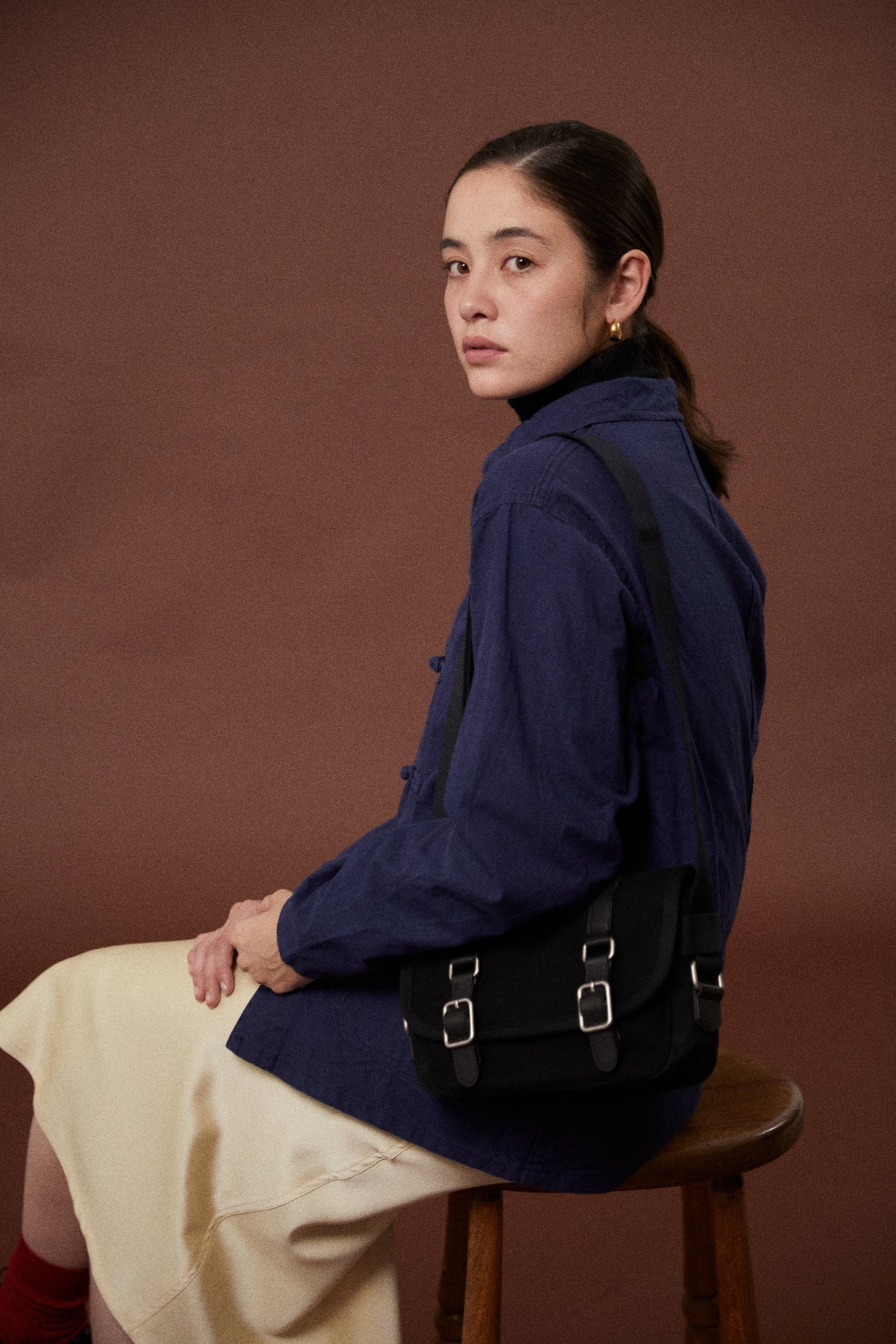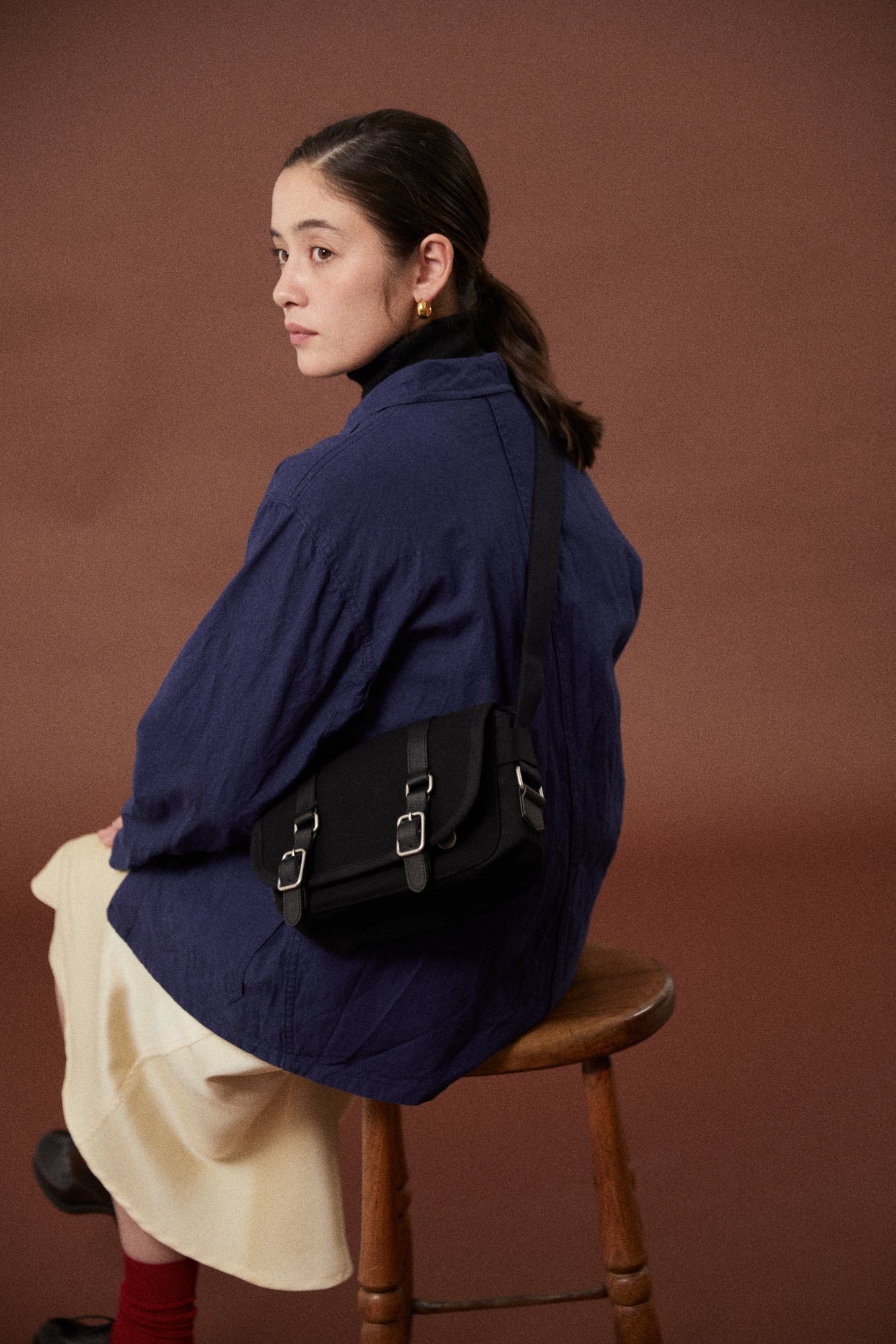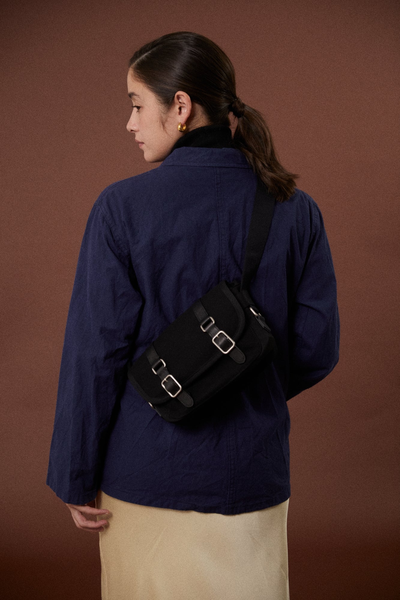 The BOUT bag is crafted from cotton canvas with cowhide details. This unisex-style bag features adjustable straps that can be transformed into either a shoulder or crossbody bag. Inside, there is a zipper pocket and two open pockets, facilitating easy organization of your belongings. The back of the bag features a magnetic pocket for quick access to essentials. The BOUT Mini size boasts stable storage capacity despite its small size. Check out our BOUT Mini bag—light, durable, and still classic.