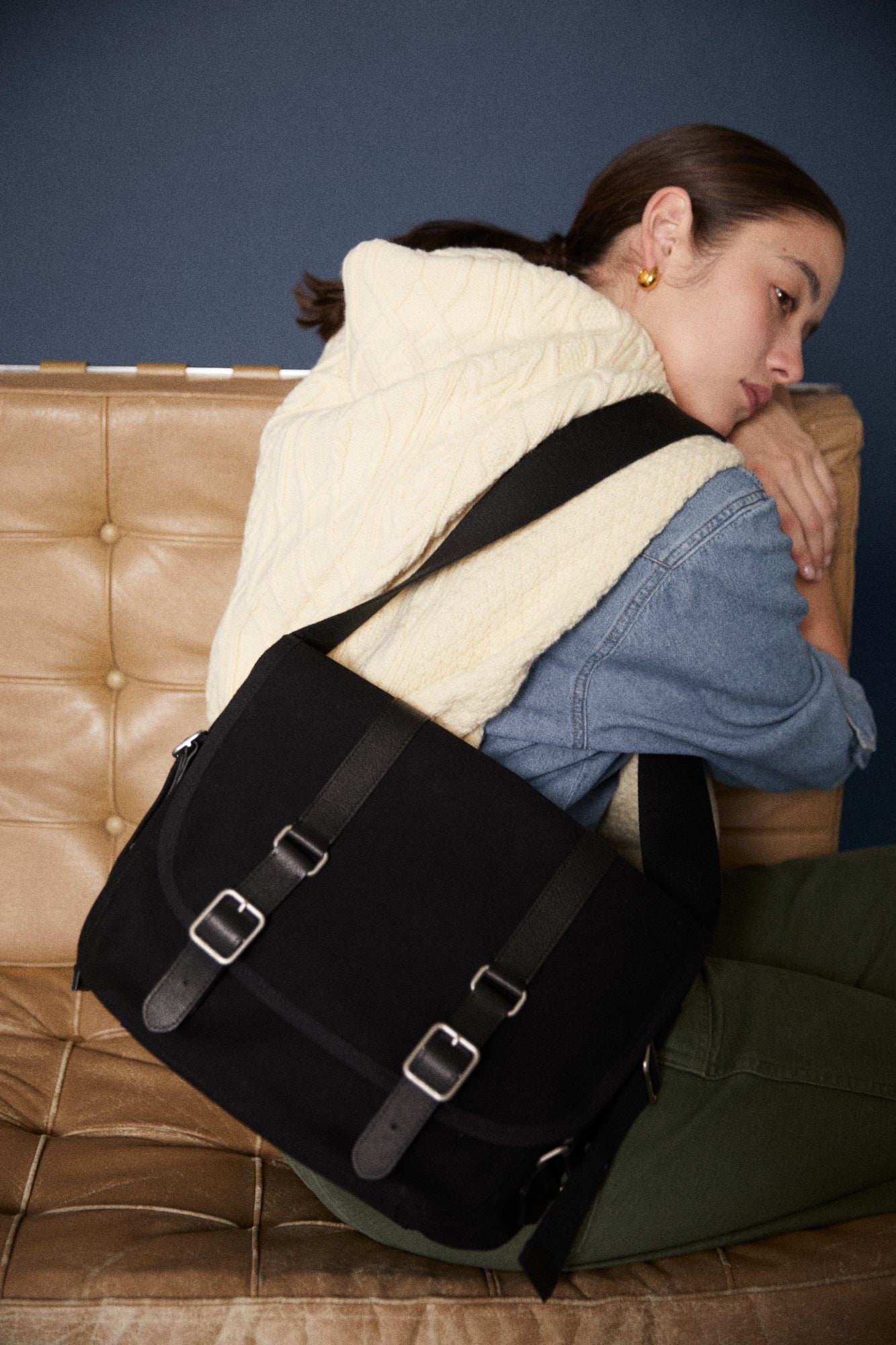 The BOUT bag is crafted from cotton canvas with cowhide details. This unisex-style bag features adjustable straps that can be transformed into either a shoulder or crossbody bag. Inside, there is a zipper pocket and two open pockets, facilitating easy organization of your belongings. The back of the bag features a magnetic pocket for quick access to essentials. The BOUT Small size can store up to A4 size and accommodate most pad products. Check out our BOUT small bag—light, durable, and still classic.