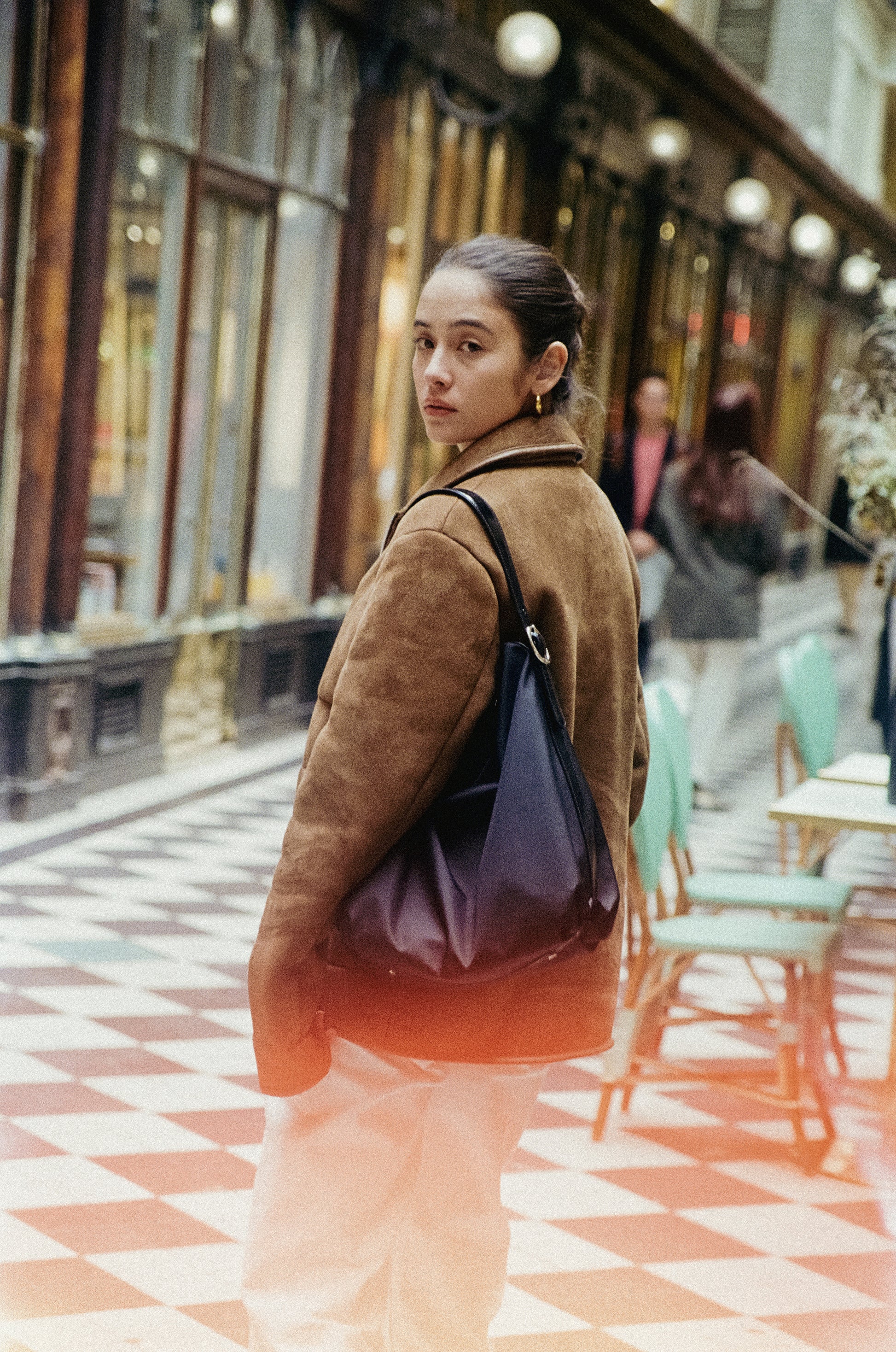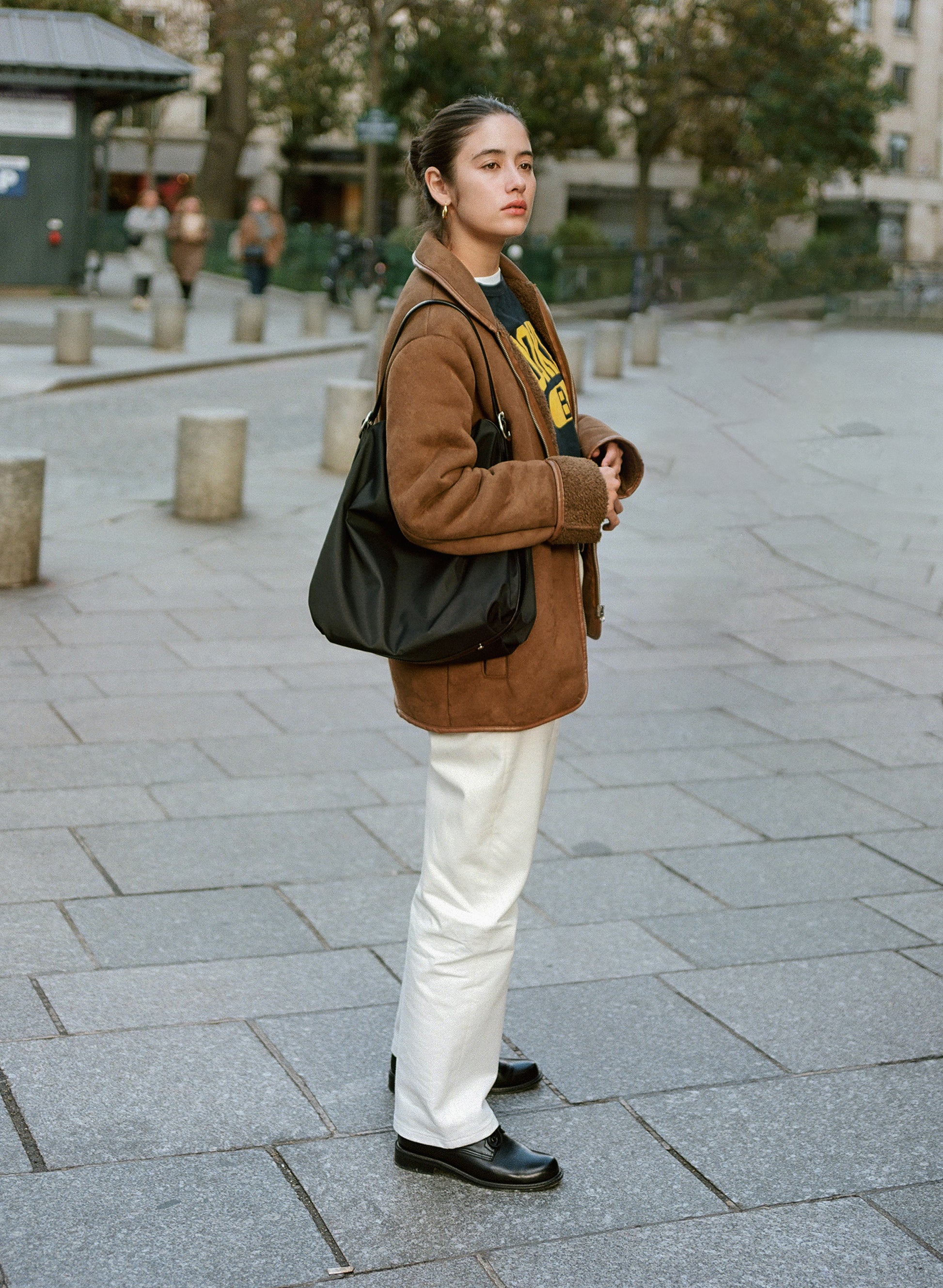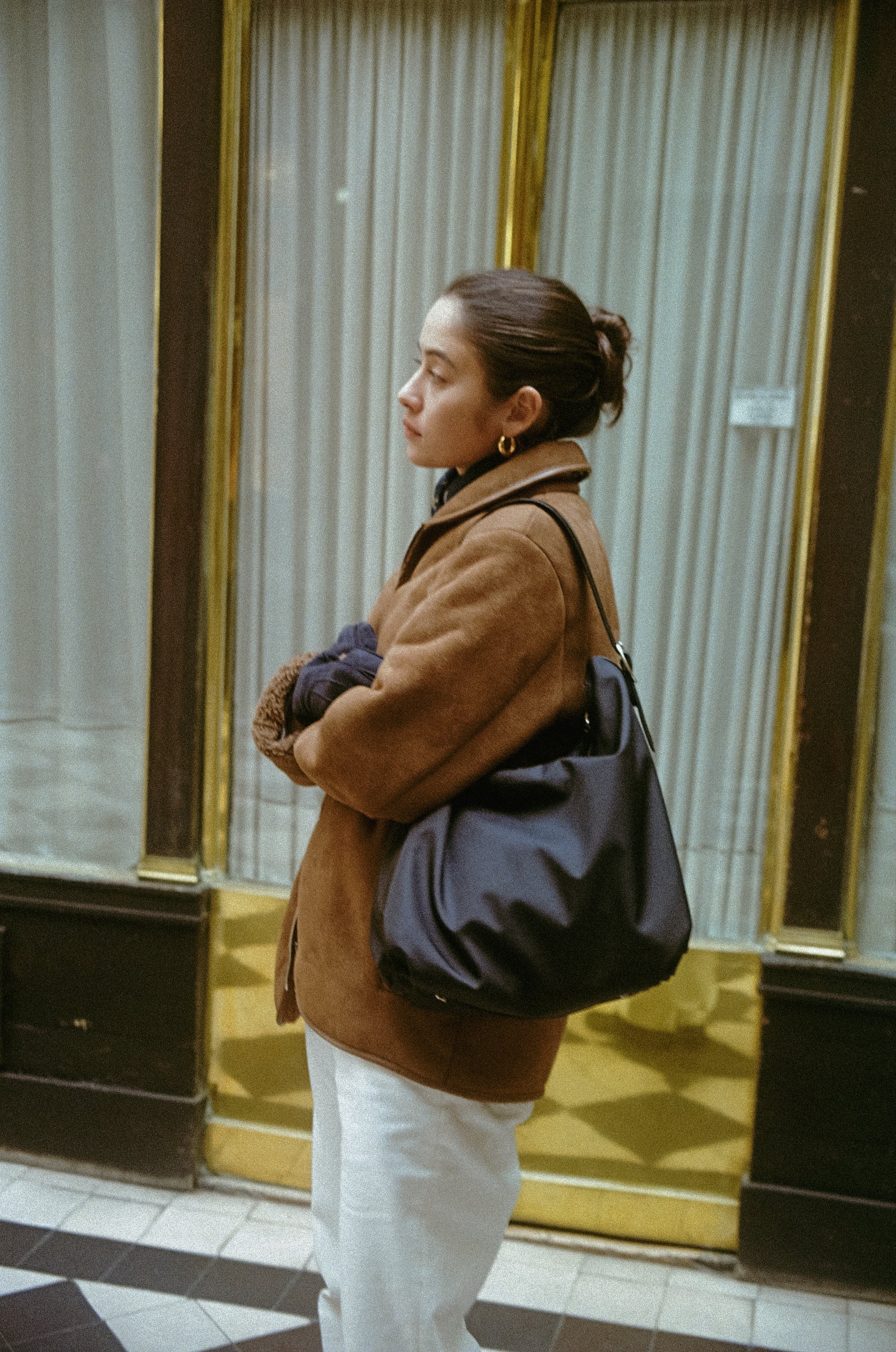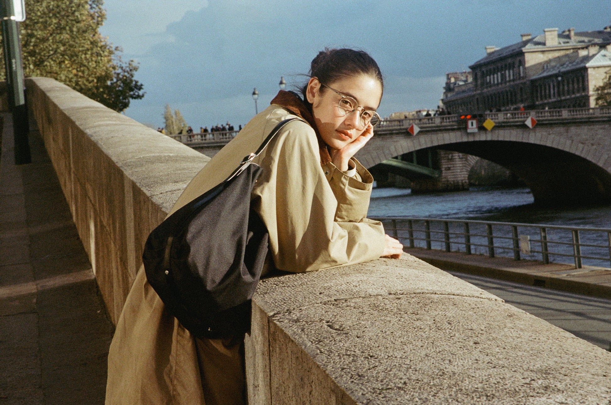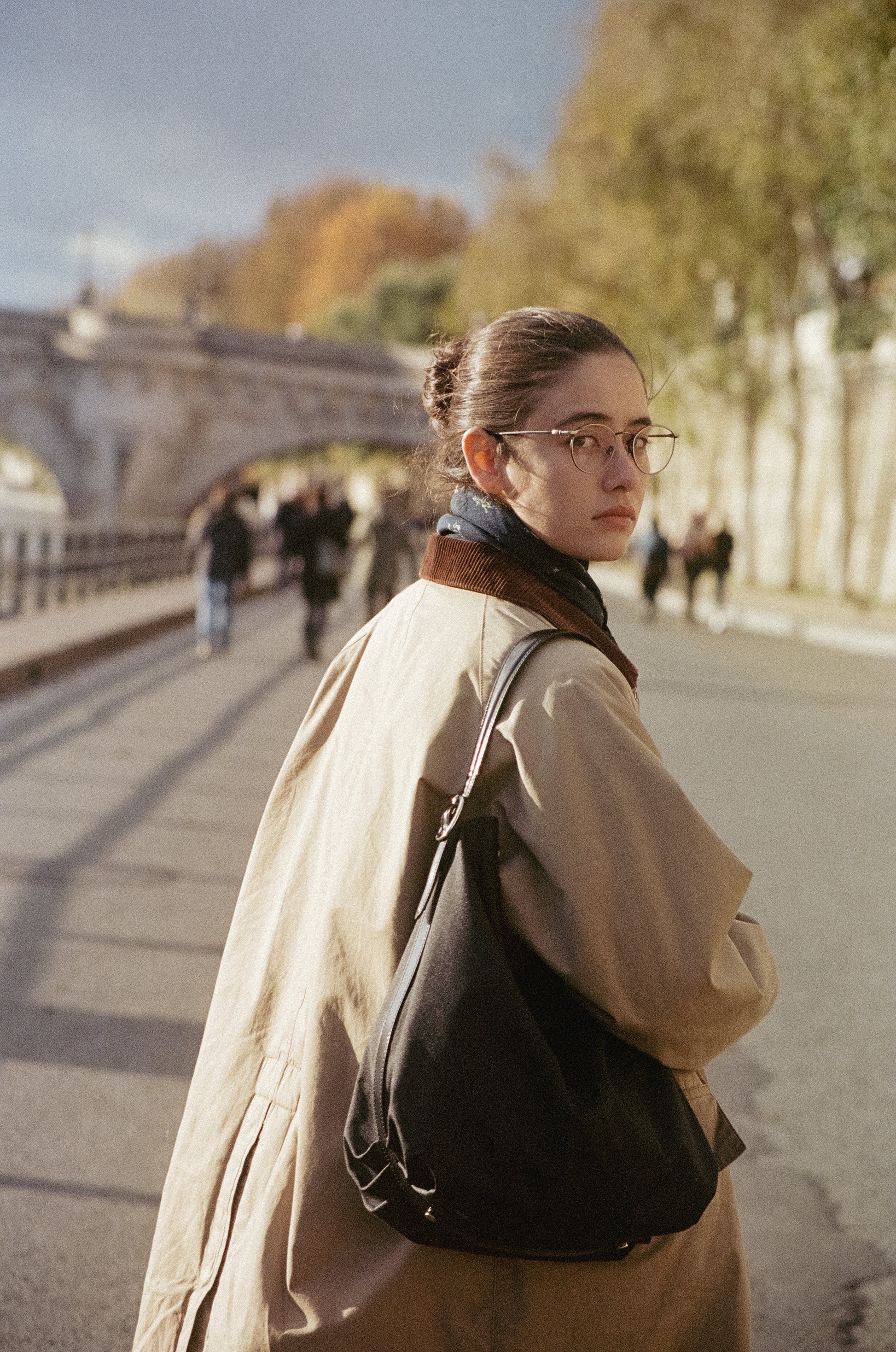 The CANOT TOILE bag is crafted from a lightweight and durable material, featuring leather strap decoration and signature buckles. The nickel-plated brass buckle has an engraved logo, and the hem is pleated to give the bag a natural shape even with belongings inside. The outer fabric is water-resistant, making it suitable for use in any season. The leather decorations around the bag support its shape and are finished with the embossed logo. Inside, there is a small pocket with zipper closure, and the length of strap can be adjusted with a belt buckle. The original size can accomodate a 13-inch laptop, and it can be flexibly shaped depending on your belongings, making it easy to wear anywhere.