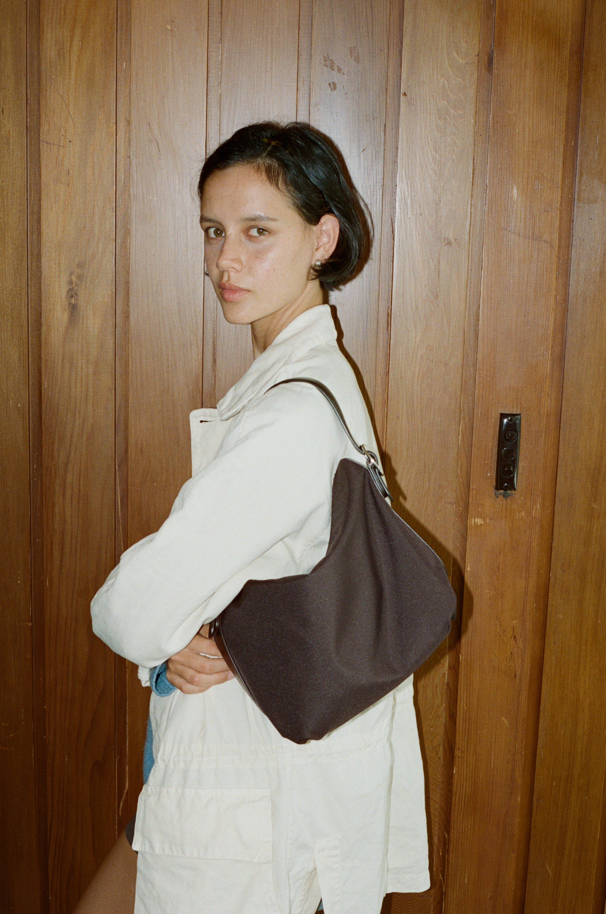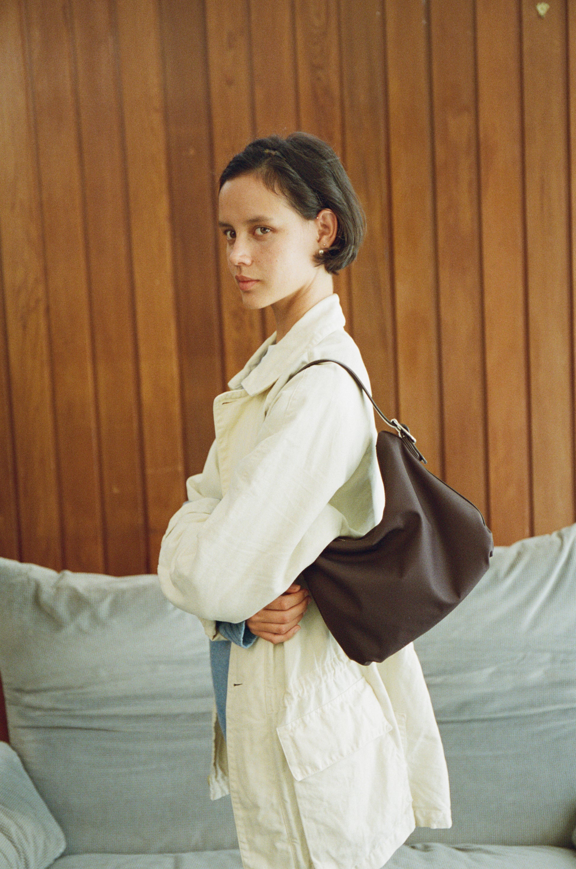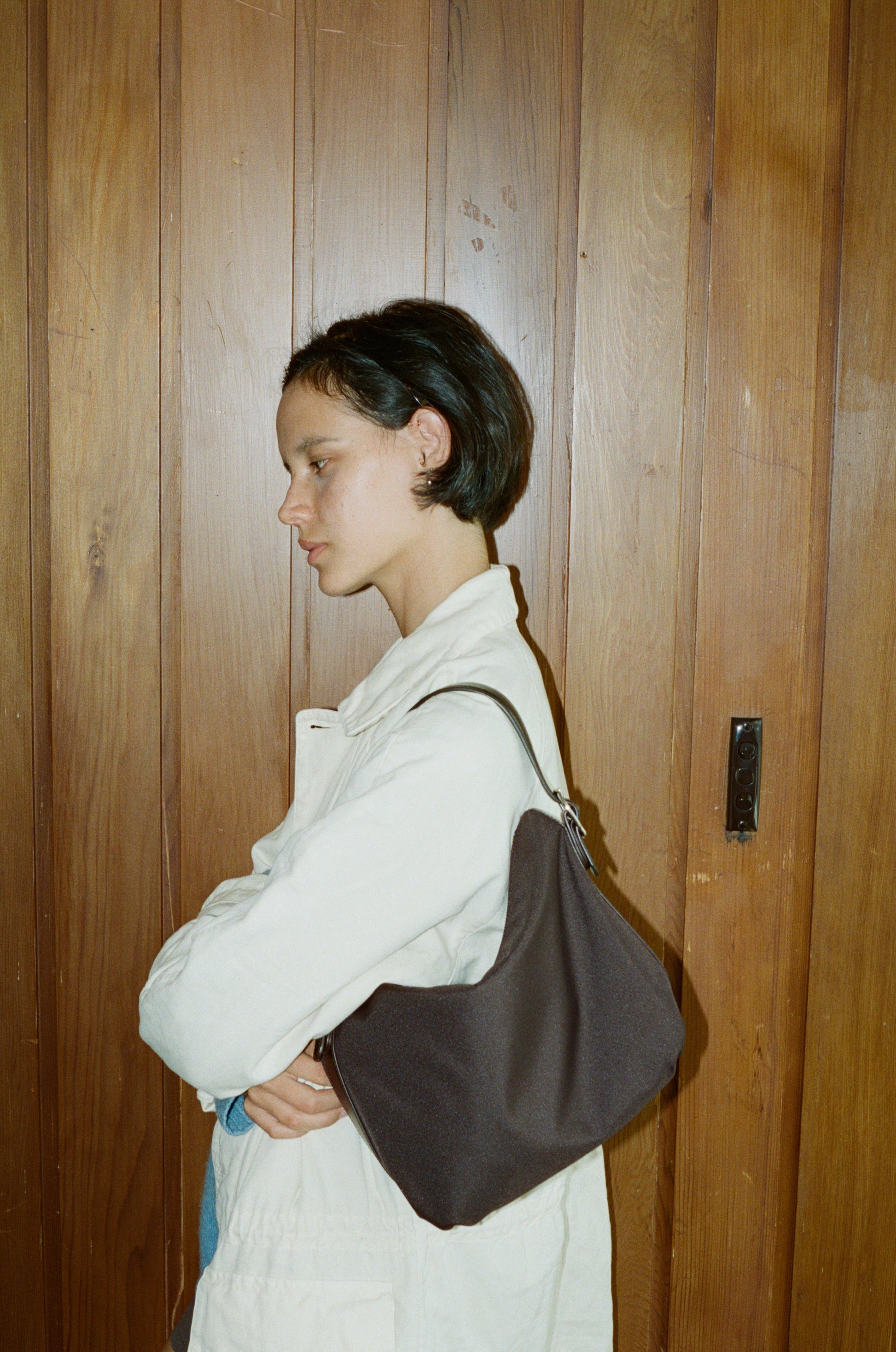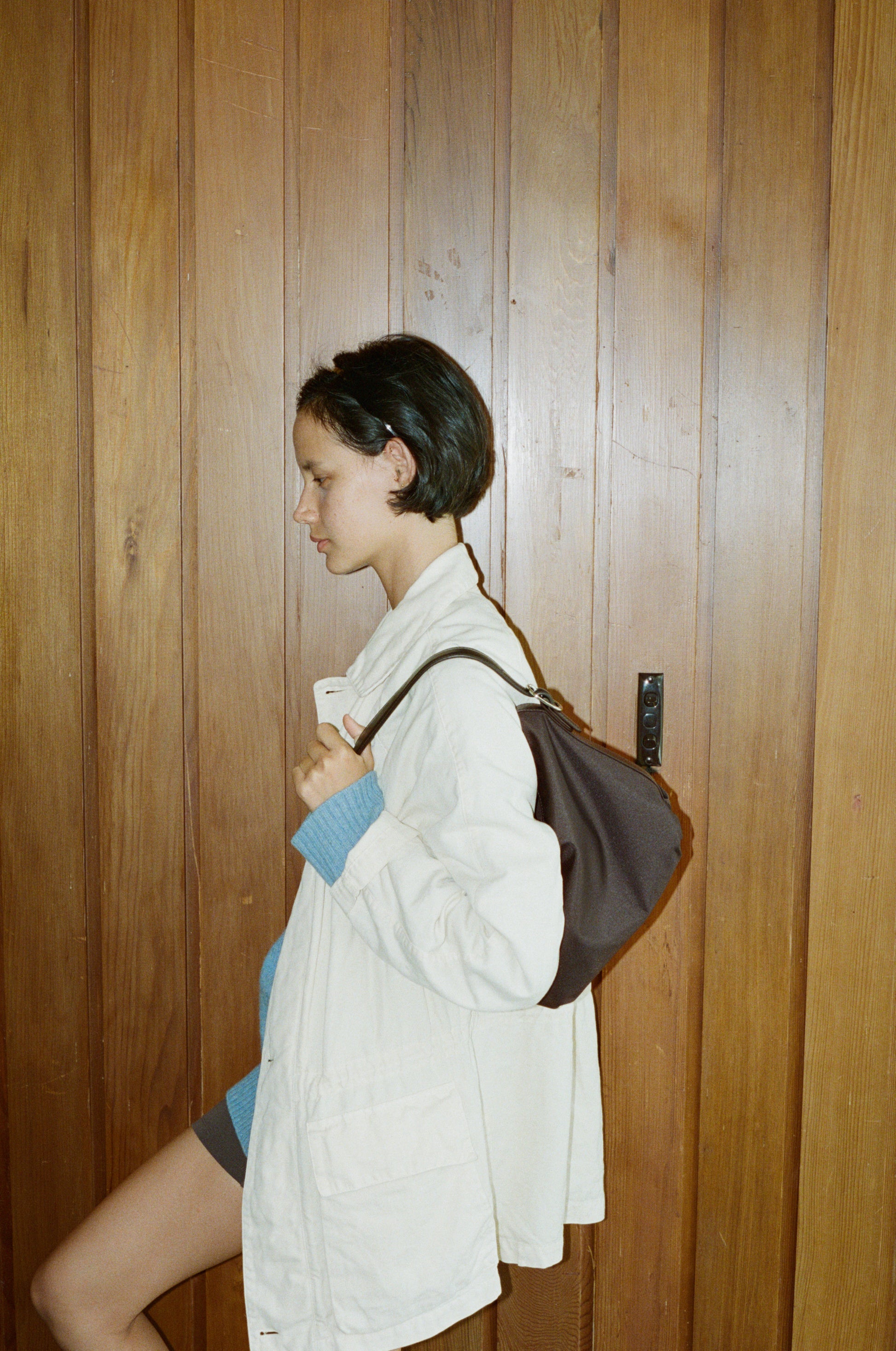 The CANOT TOILE bag is crafted from a lightweight and durable material, featuring leather strap decoration and signature buckles. The nickel-plated brass buckle has an engraved logo, and the hem is pleated to give the bag a natural shape even with belongings inside. The outer fabric is water-resistant, making it suitable for use in any season. The leather decorations around the bag support its shape and are finished with the embossed logo. Inside, there is a small pocket with zipper closure, and the length of strap can be adjusted with a belt buckle. The small size can accommodate enough items as it can be flexibly shaped, making it easy to wear anywhere.