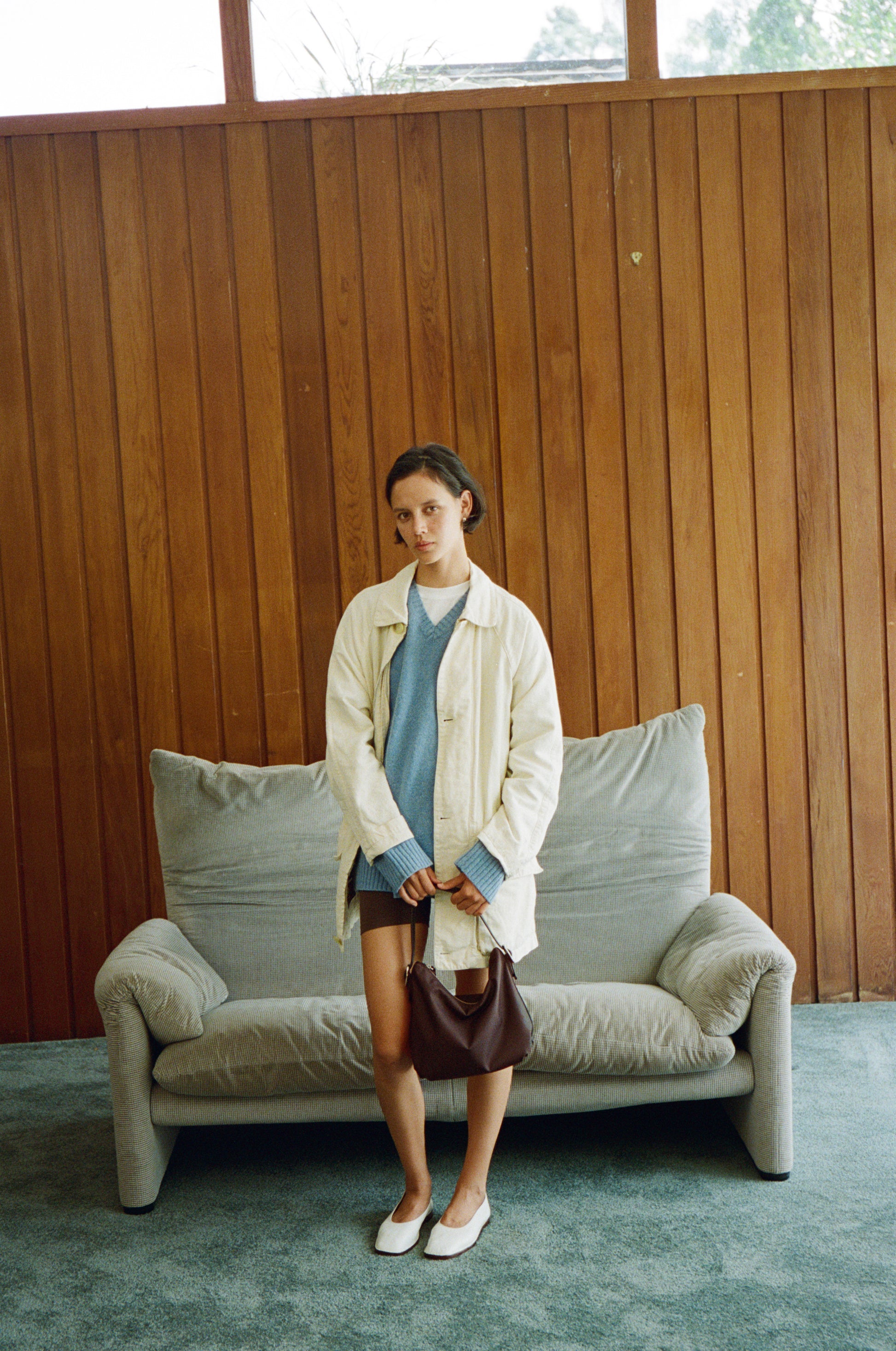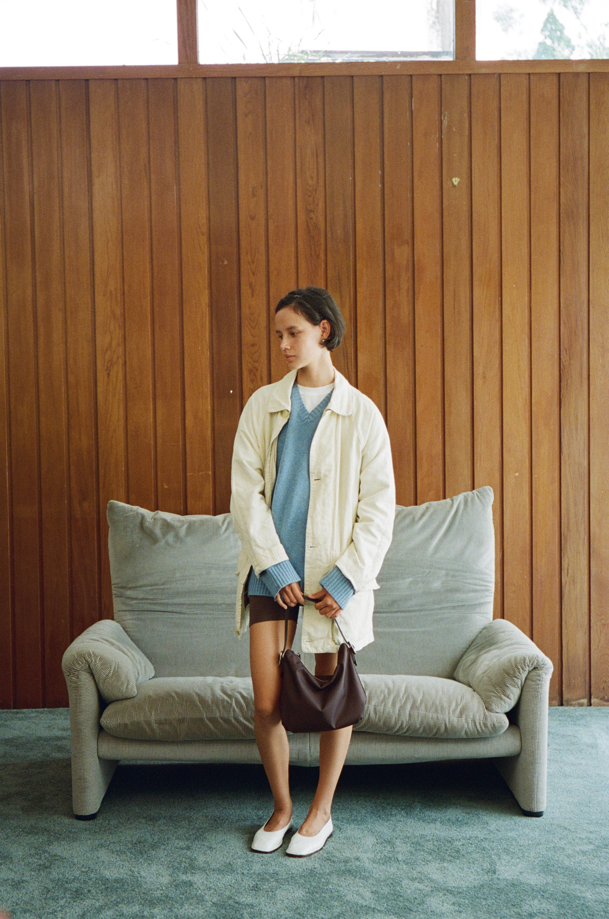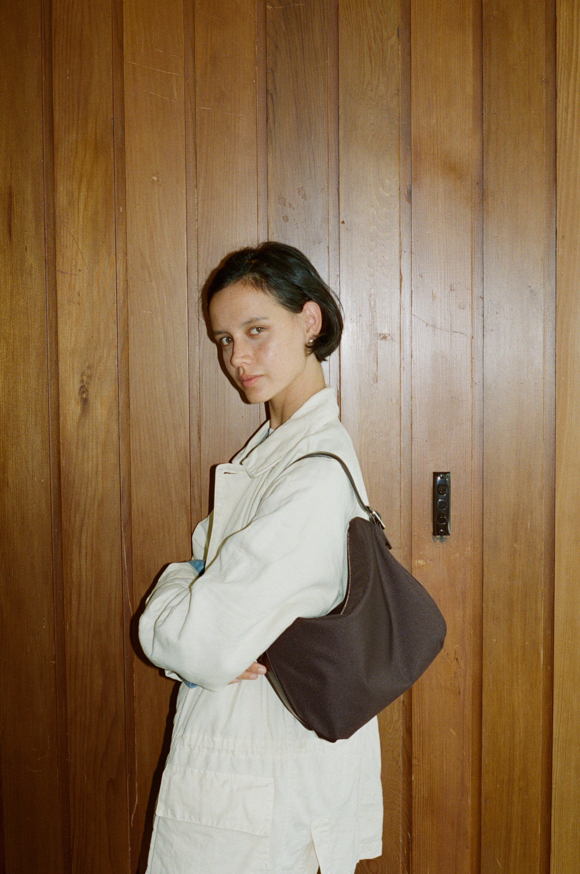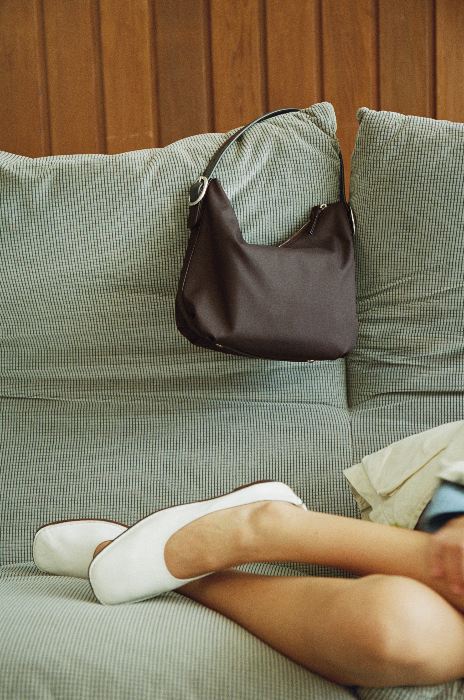 The CANOT TOILE bag is crafted from a lightweight and durable material, featuring leather strap decoration and signature buckles. The nickel-plated brass buckle has an engraved logo, and the hem is pleated to give the bag a natural shape even with belongings inside. The outer fabric is water-resistant, making it suitable for use in any season. The leather decorations around the bag support its shape and are finished with the embossed logo. Inside, there is a small pocket with zipper closure, and the length of strap can be adjusted with a belt buckle. The small size can accommodate enough items as it can be flexibly shaped, making it easy to wear anywhere.