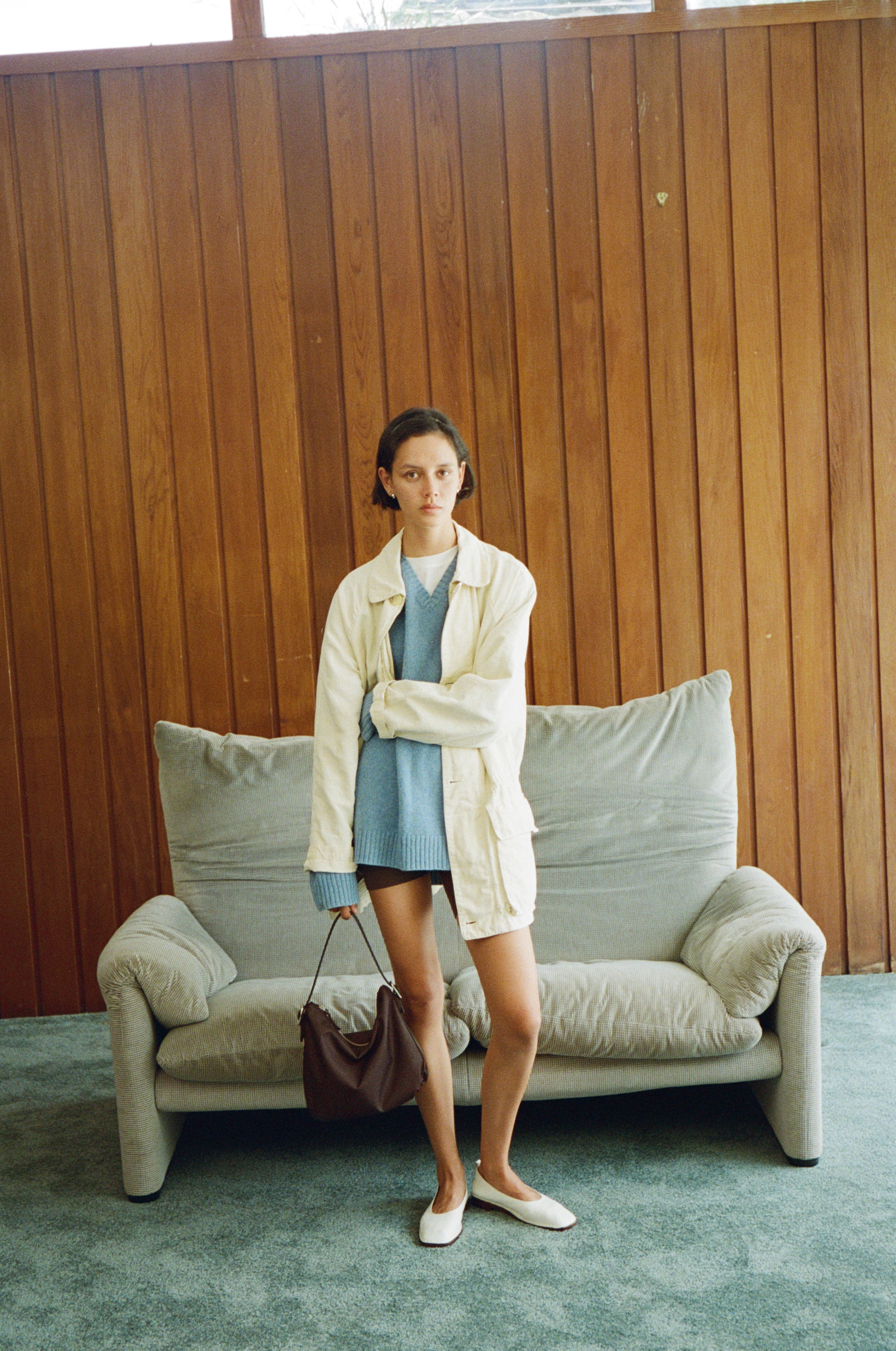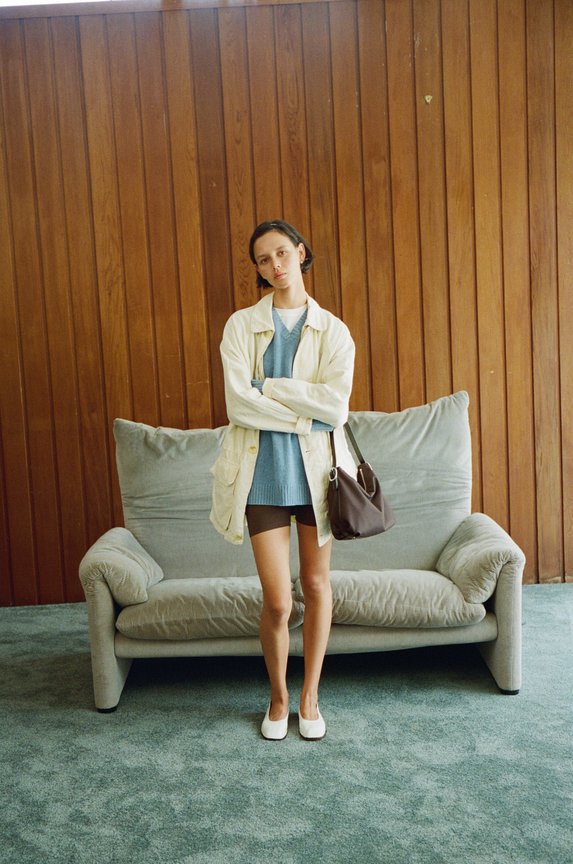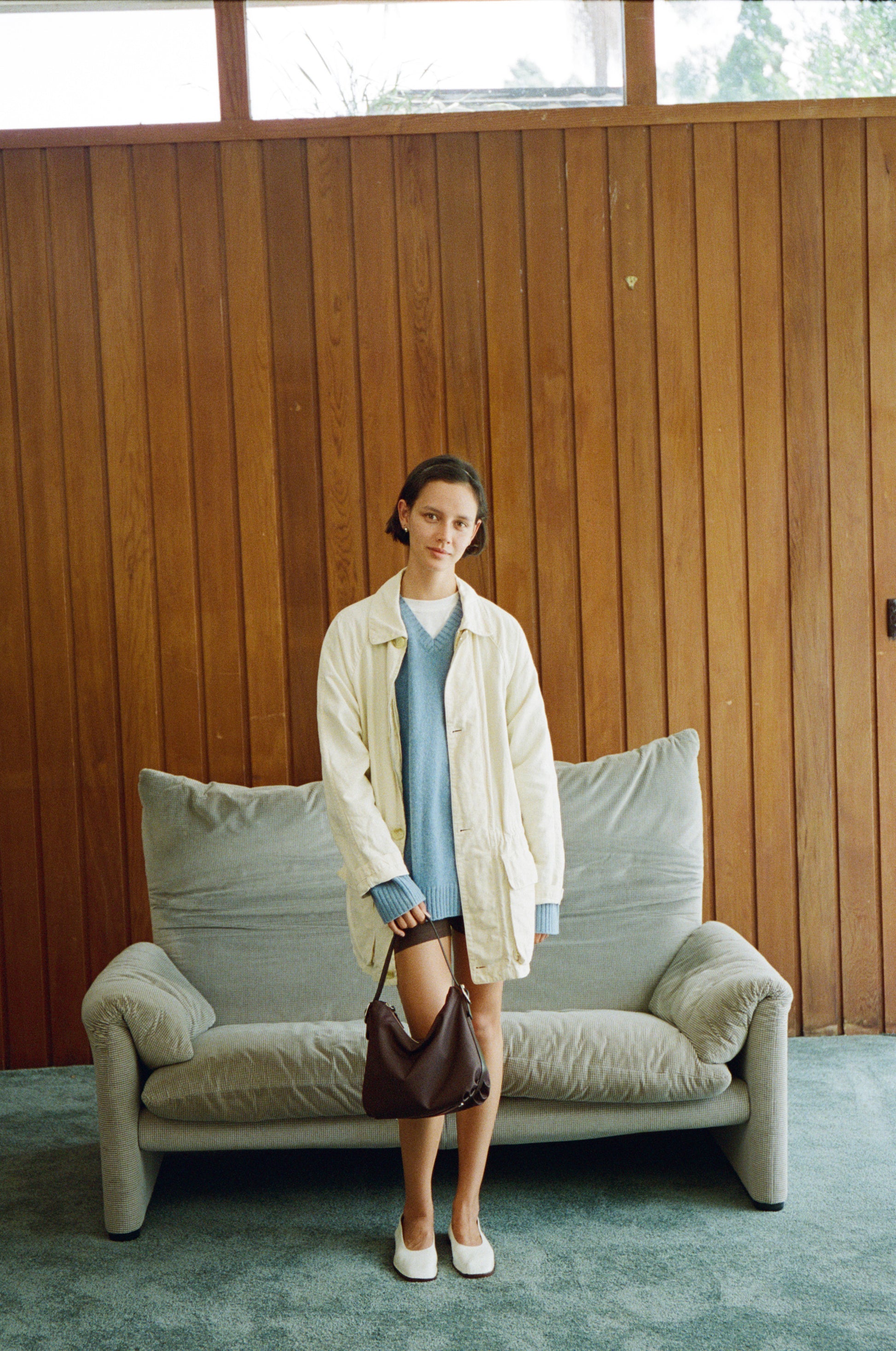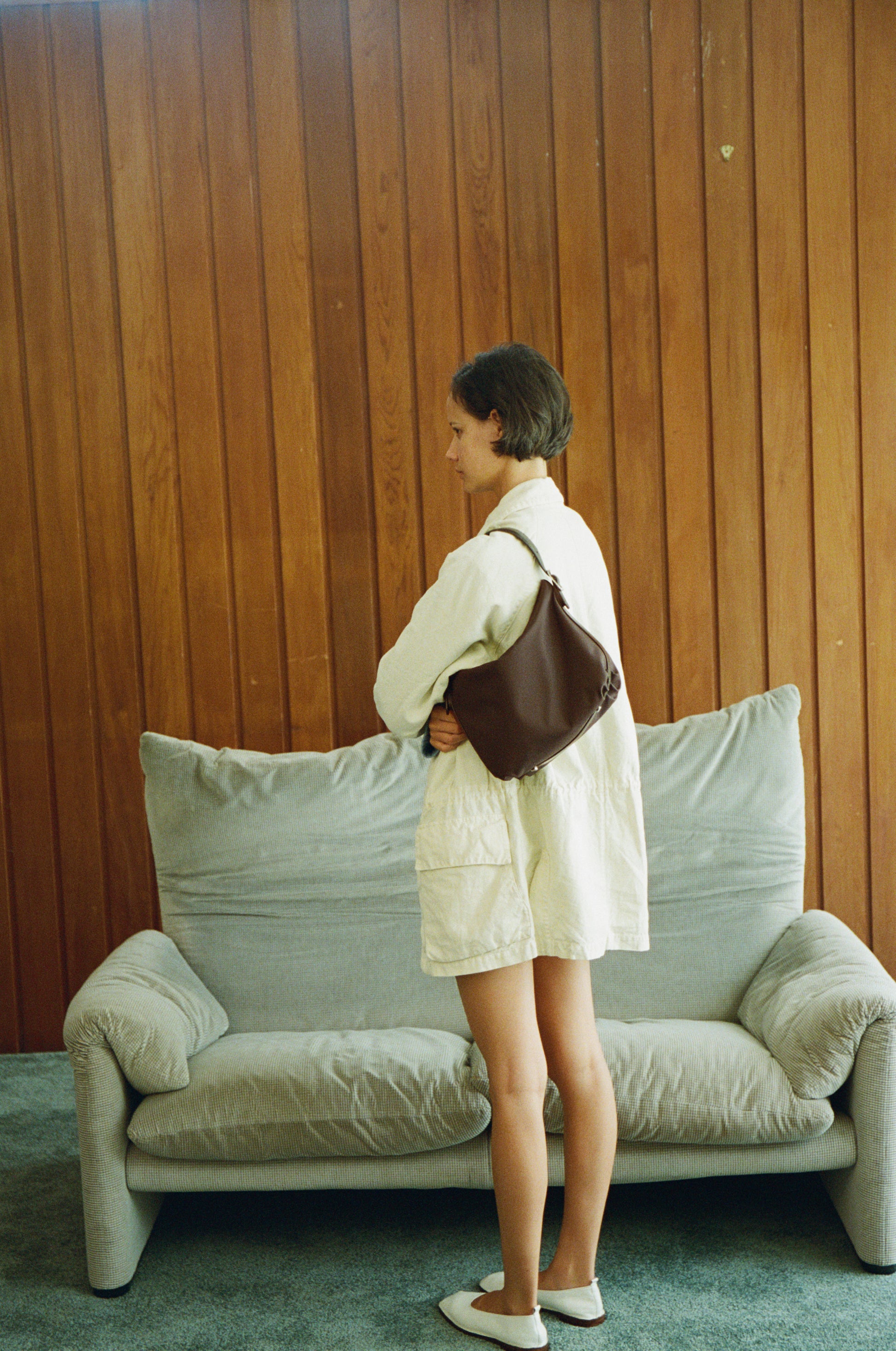 The CANOT TOILE bag is crafted from a lightweight and durable material, featuring leather strap decoration and signature buckles. The nickel-plated brass buckle has an engraved logo, and the hem is pleated to give the bag a natural shape even with belongings inside. The outer fabric is water-resistant, making it suitable for use in any season. The leather decorations around the bag support its shape and are finished with the embossed logo. Inside, there is a small pocket with zipper closure, and the length of strap can be adjusted with a belt buckle. The small size can accommodate enough items as it can be flexibly shaped, making it easy to wear anywhere.