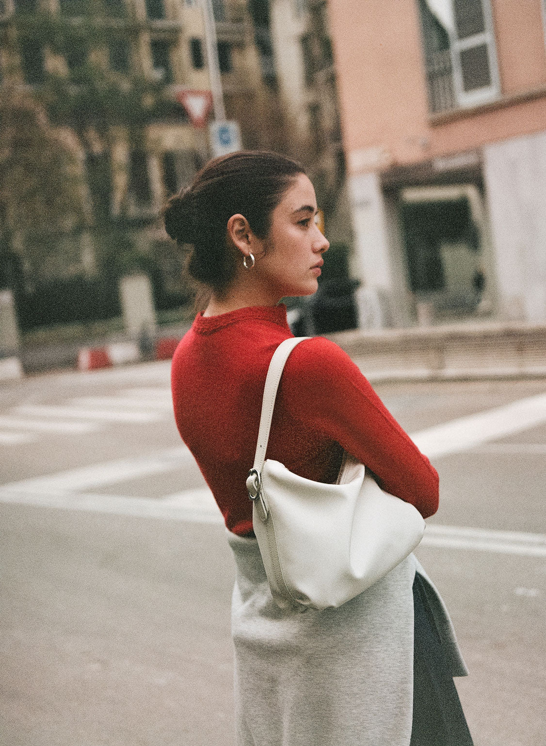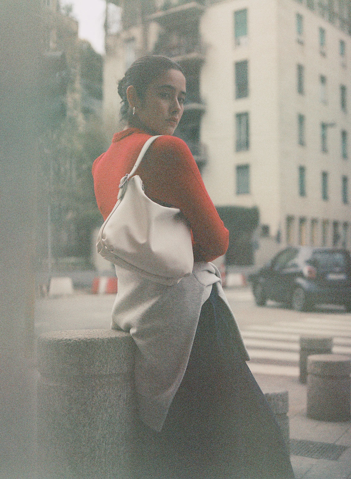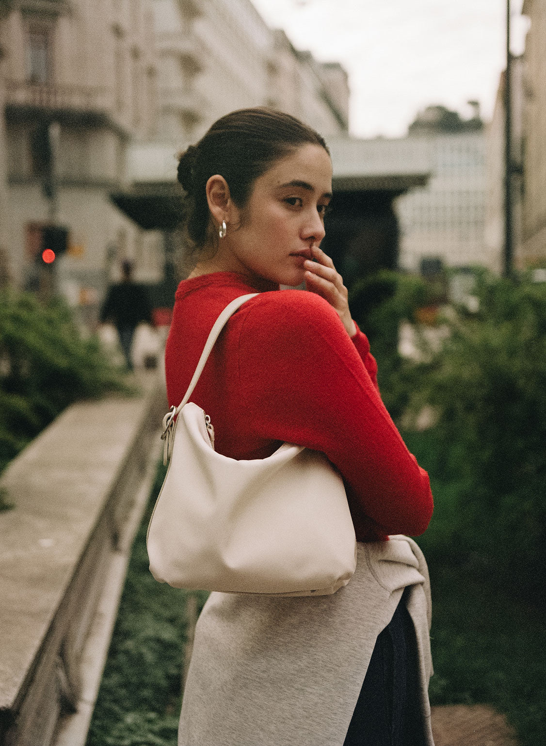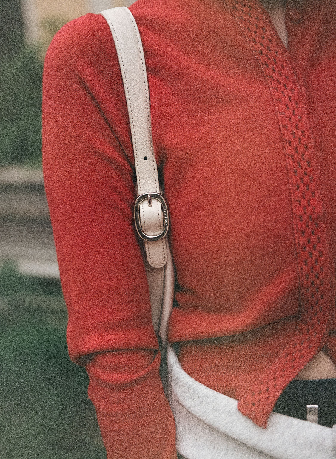 The CANOT TOILE bag is crafted from a lightweight and durable material, featuring leather strap decoration and signature buckles. The nickel-plated brass buckle has an engraved logo, and the hem is pleated to give the bag a natural shape even with belongings inside. The outer fabric is water-resistant, making it suitable for use in any season. The leather decorations around the bag support its shape and are finished with the embossed logo. Inside, there is a small pocket with zipper closure, and the length of strap can be adjusted with a belt buckle. The small size can accommodate enough items as it can be flexibly shaped, making it easy to wear anywhere.