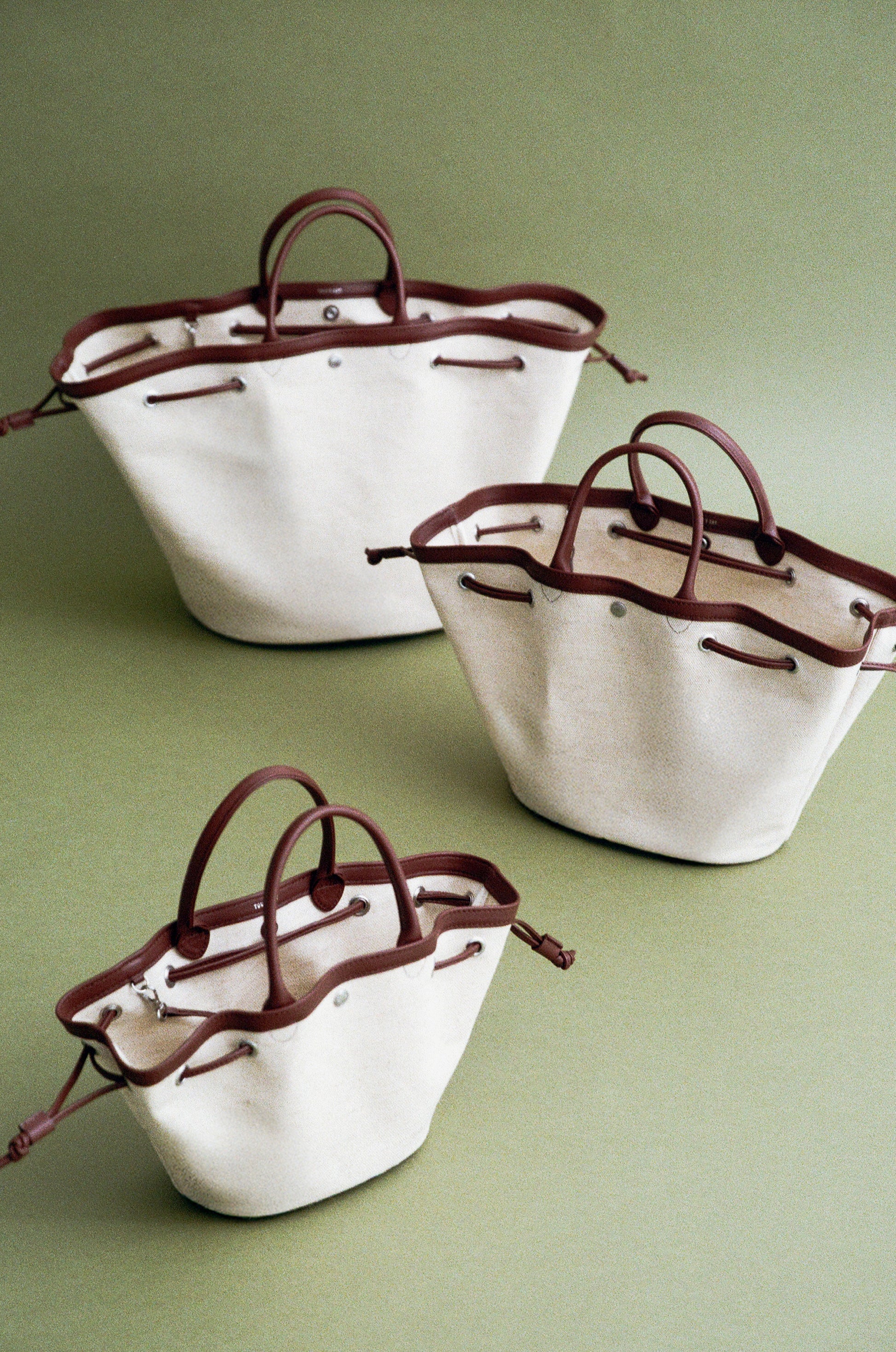 This shopper bag is crafted by combining soft sheepskin with cotton canvas material. Named "COQUILLE," which means "shell" in French, it embodies the feature of a bag that can be freely shaped using the leather string at the top. When carrying many belongings, you can spread it wide to form the shape of a shopper bag, or you can tighten the string to use it as a bucket bag. There's a snap in the center with the logo embossed, allowing for secure closure. Additionally, it comes with a detachable pouch, making it convenient to store small essentials that are frequently needed. The soft and round strap provides a comfortable grip even when the bag is filled with many items, while the sturdy sheepskin bottom provides stability to the bag.