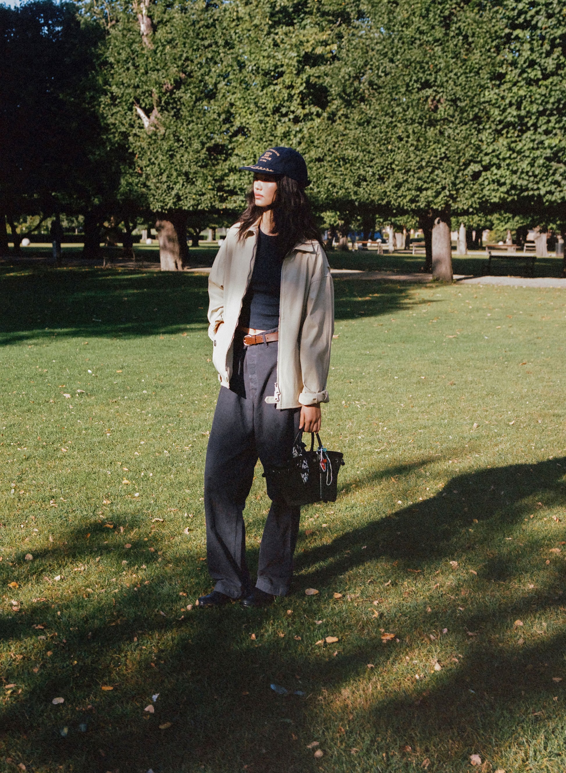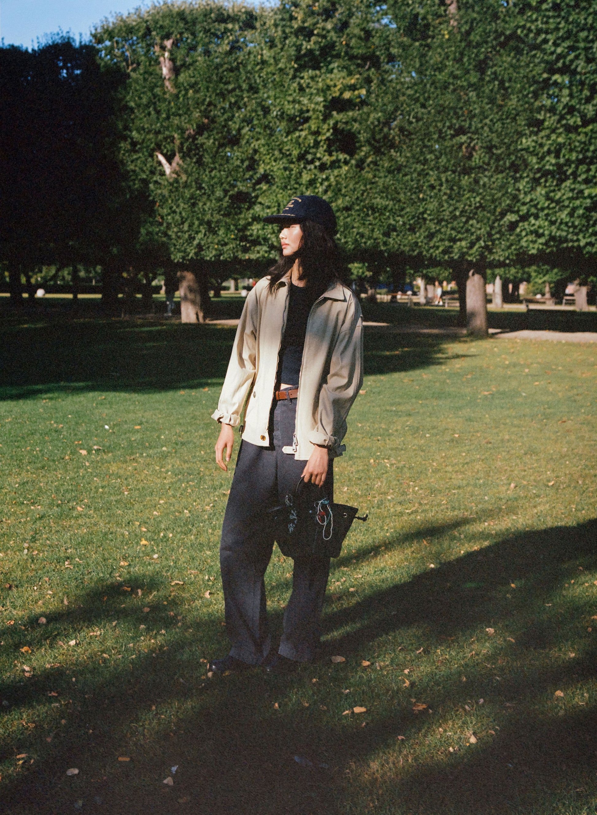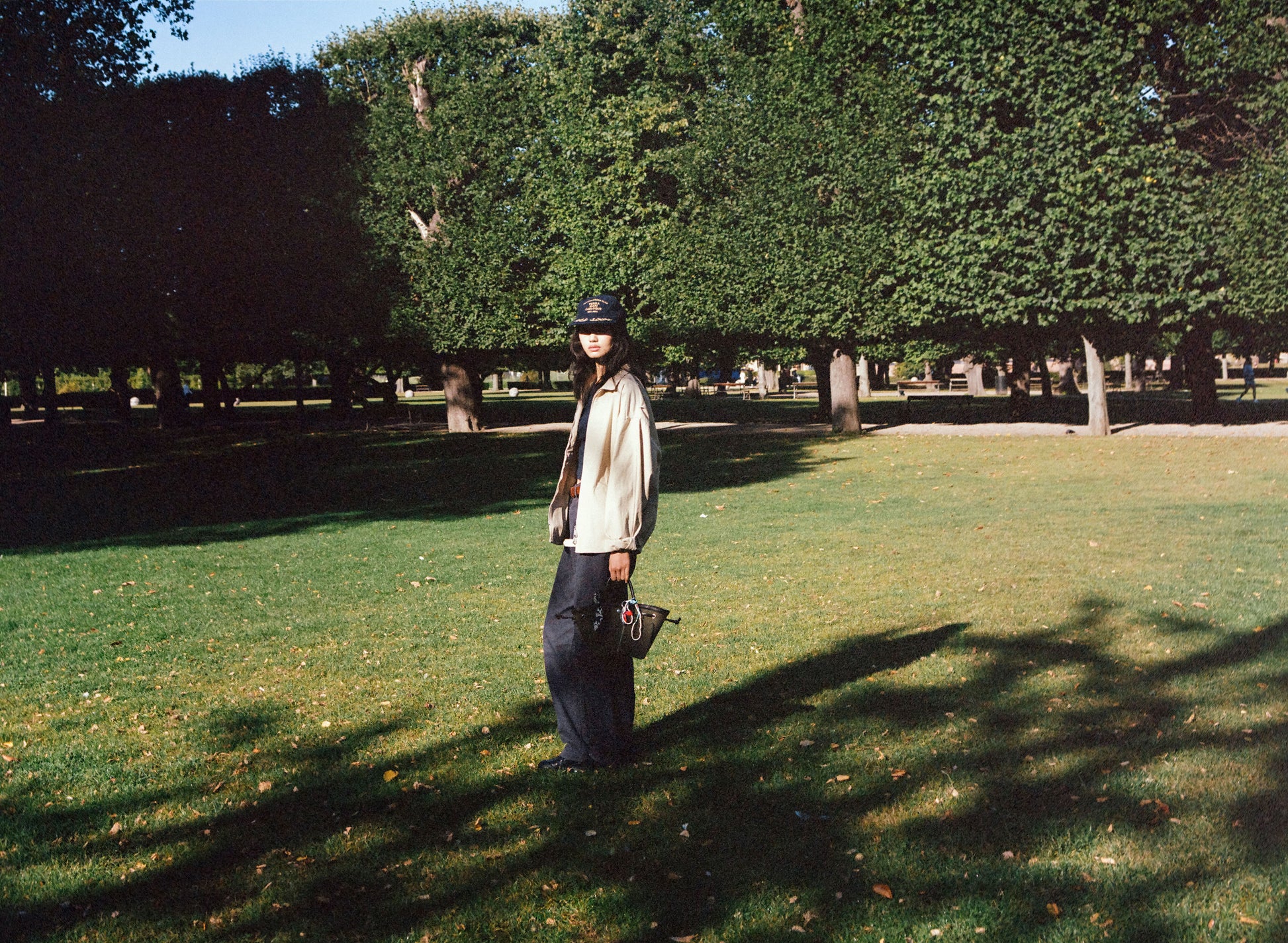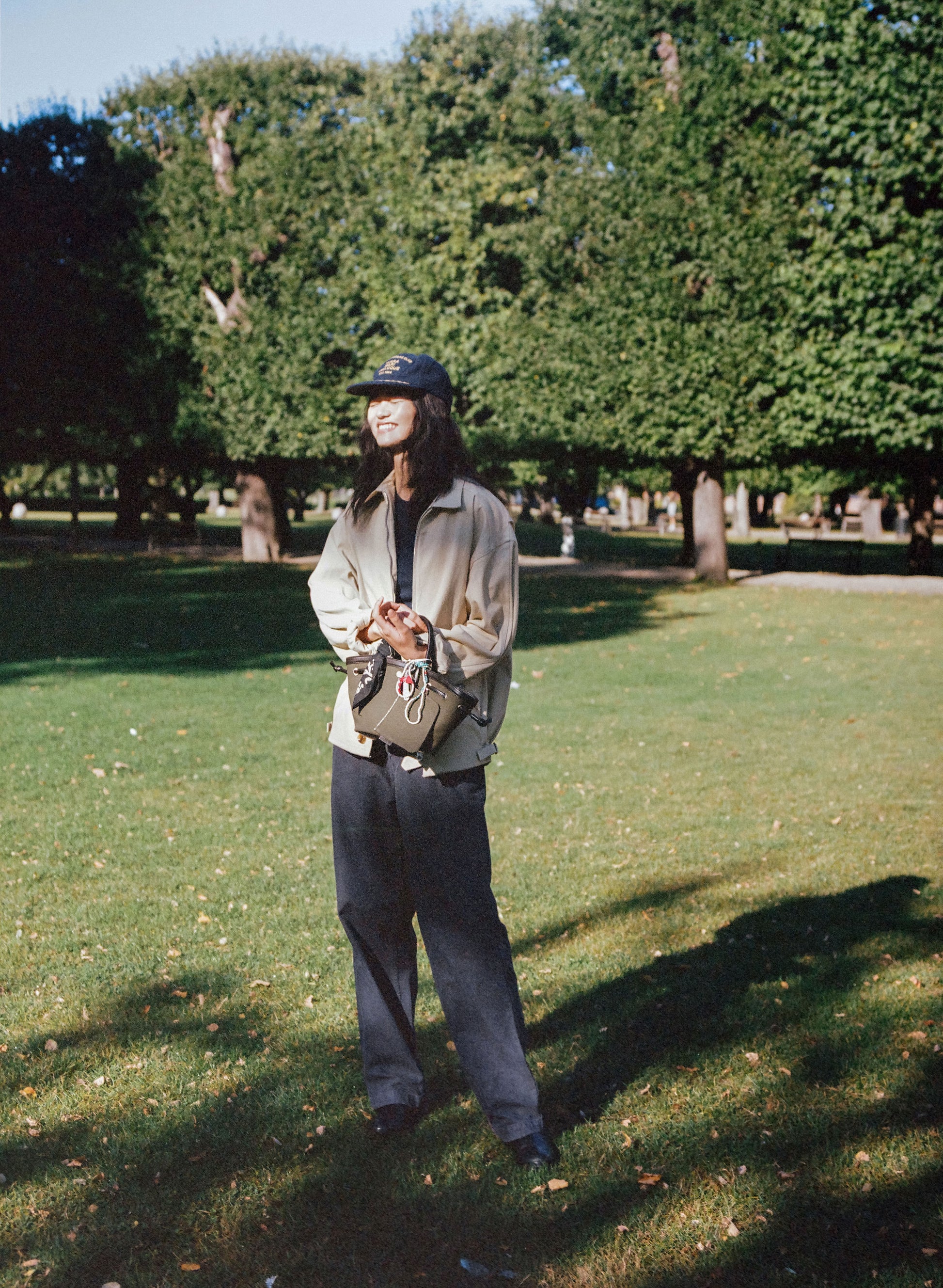 This shopper bag is crafted by combining soft sheepskin with cotton canvas material. Named "COQUILLE," which means "shell" in French, it embodies the feature of a bag that can be freely shaped using the leather string at the top. When carrying many belongings, you can spread it wide to form the shape of a shopper bag, or you can tighten the string to use it as a bucket bag. There's a snap in the center with the logo embossed, allowing for secure closure. Additionally, it comes with a detachable pouch, making it convenient to store small essentials that are frequently needed. The soft and round strap provides a comfortable grip even when the bag is filled with many items, while the sturdy sheepskin bottom provides stability to the bag.
