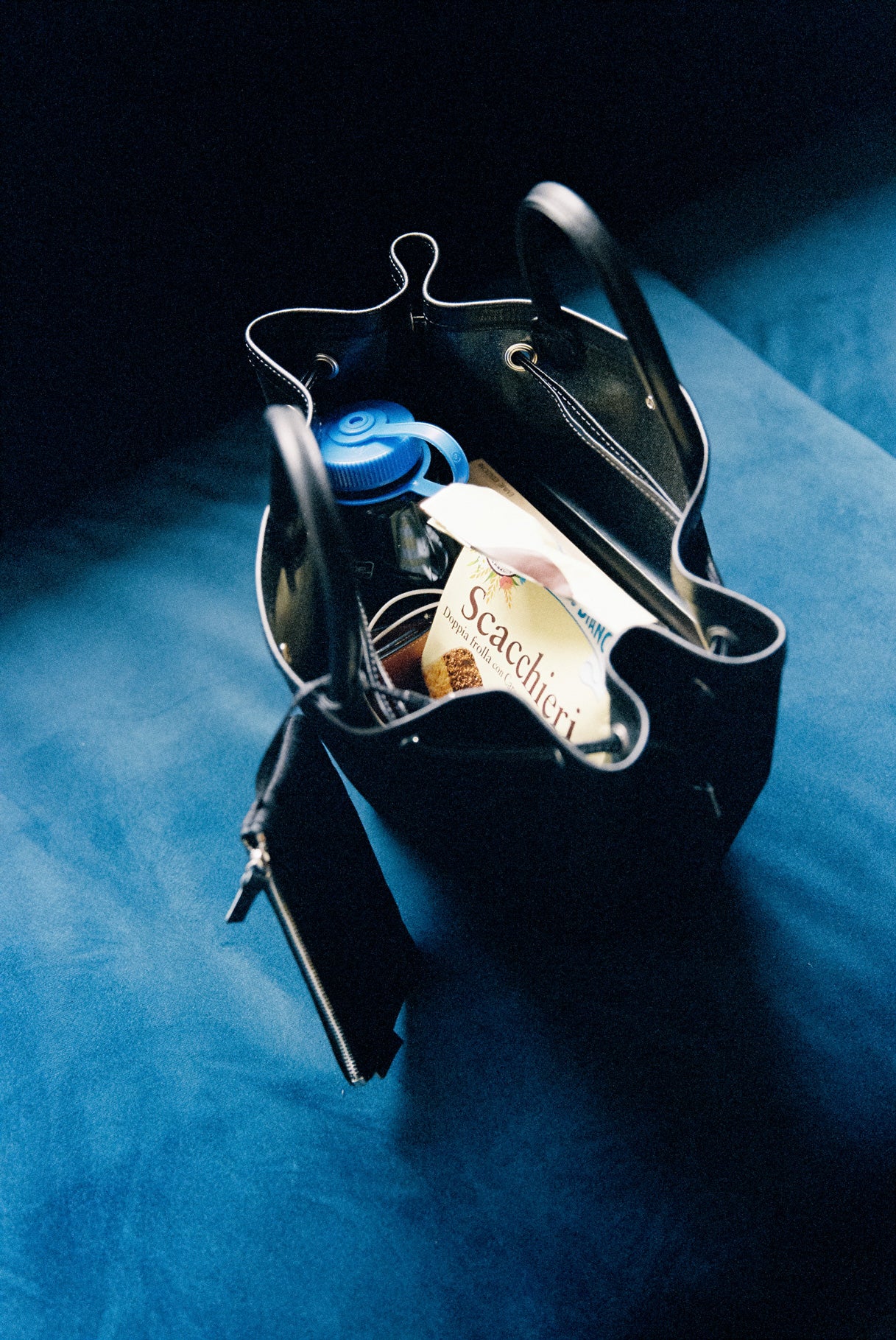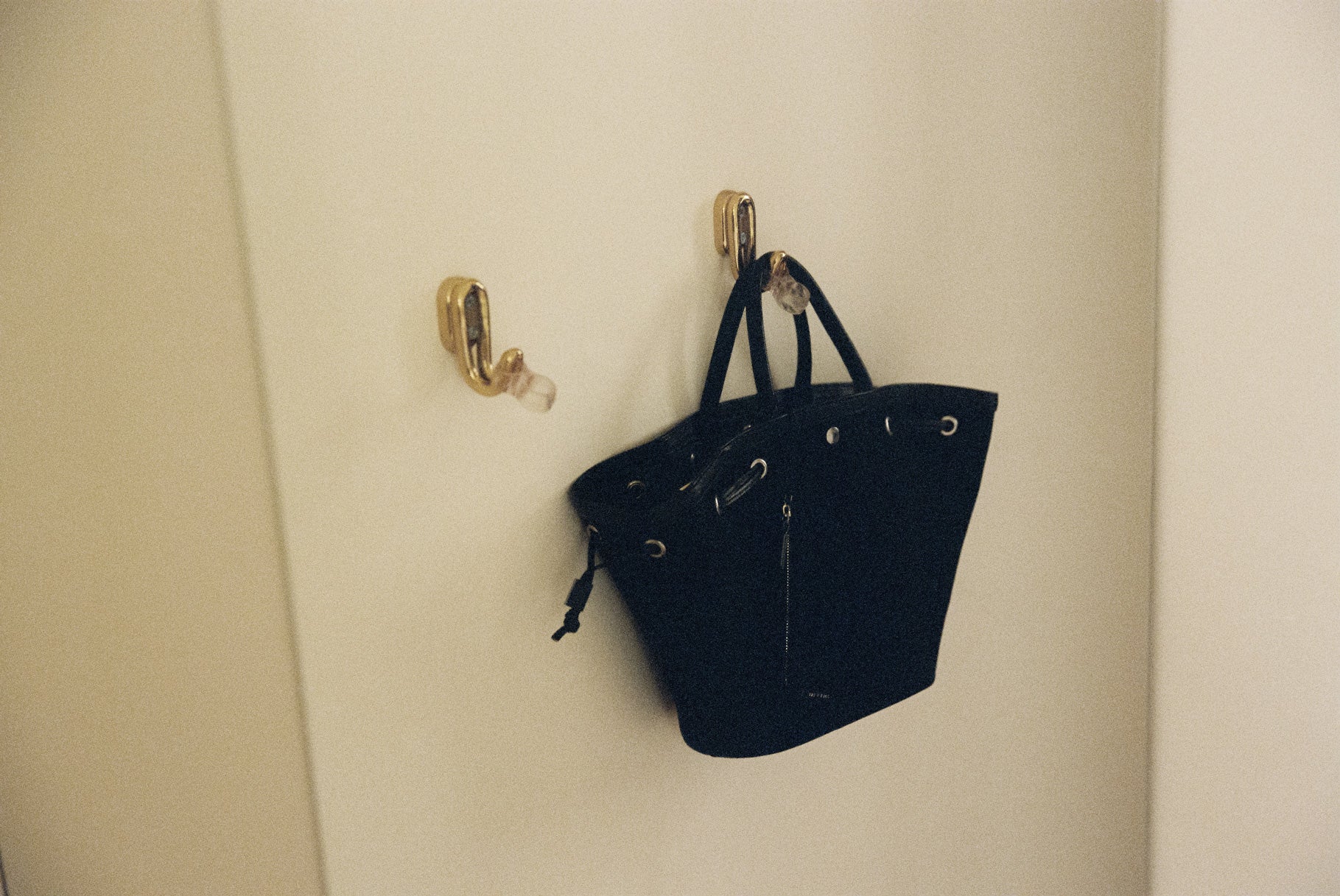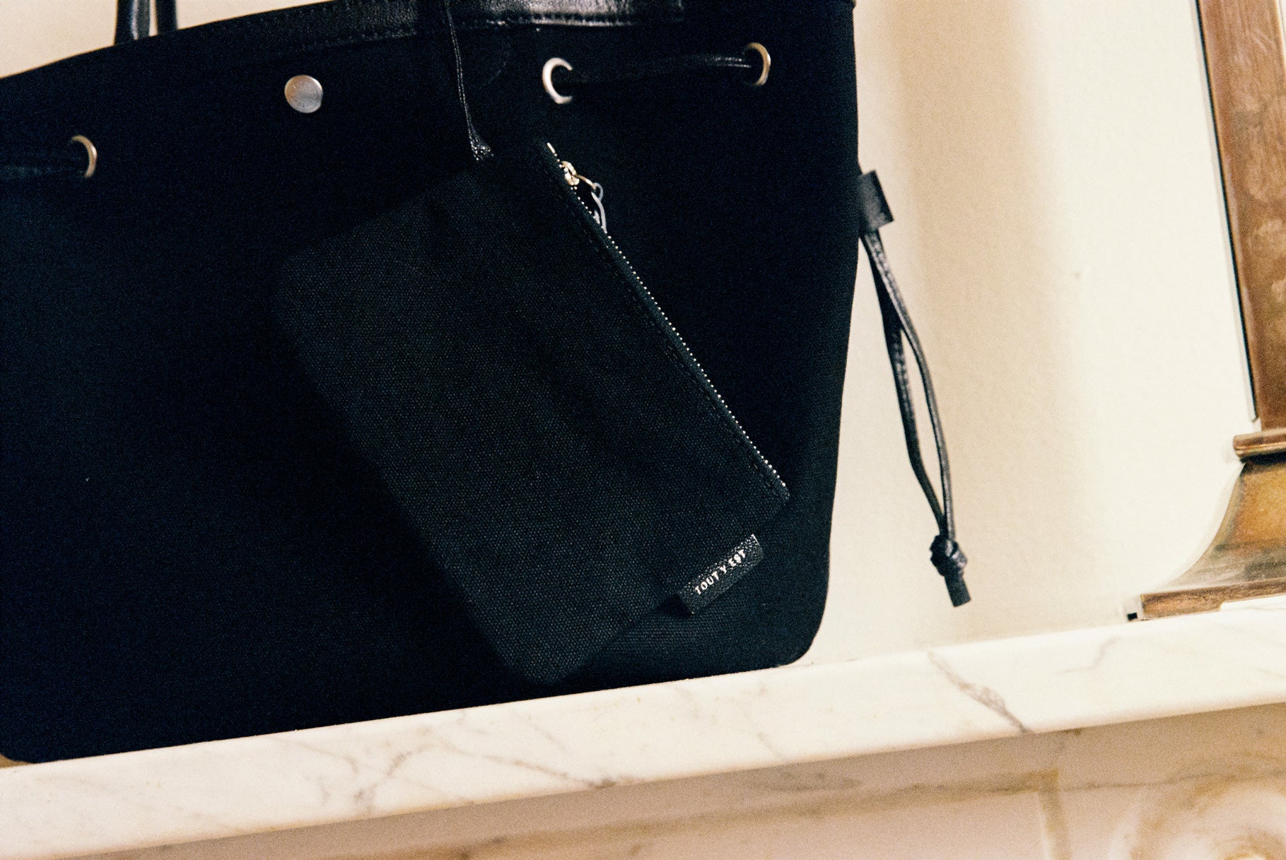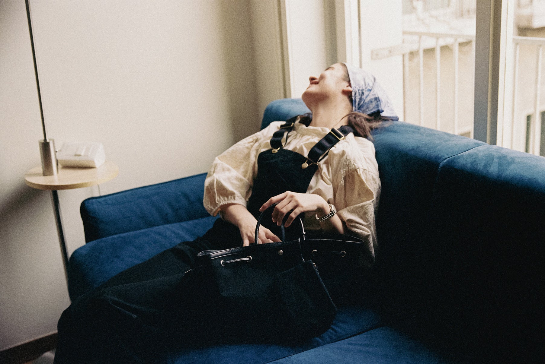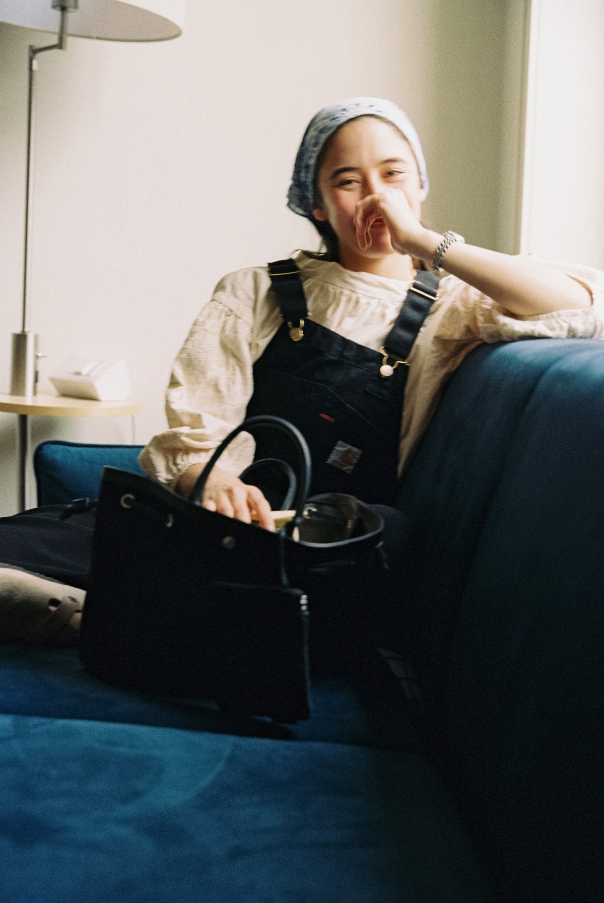 This shopper bag is crafted by combining soft sheepskin with cotton canvas material. Named "COQUILLE," which means "shell" in French, it embodies the feature of a bag that can be freely shaped using the leather string at the top. When carrying many belongings, you can spread it wide to form the shape of a shopper bag, or you can tighten the string to use it as a bucket bag. There's a snap in the center with the logo embossed, allowing for secure closure. Additionally, it comes with a detachable pouch, making it convenient to store small essentials that are frequently needed. The soft and round strap provides a comfortable grip even when the bag is filled with many items, while the sturdy sheepskin bottom provides stability to the bag.