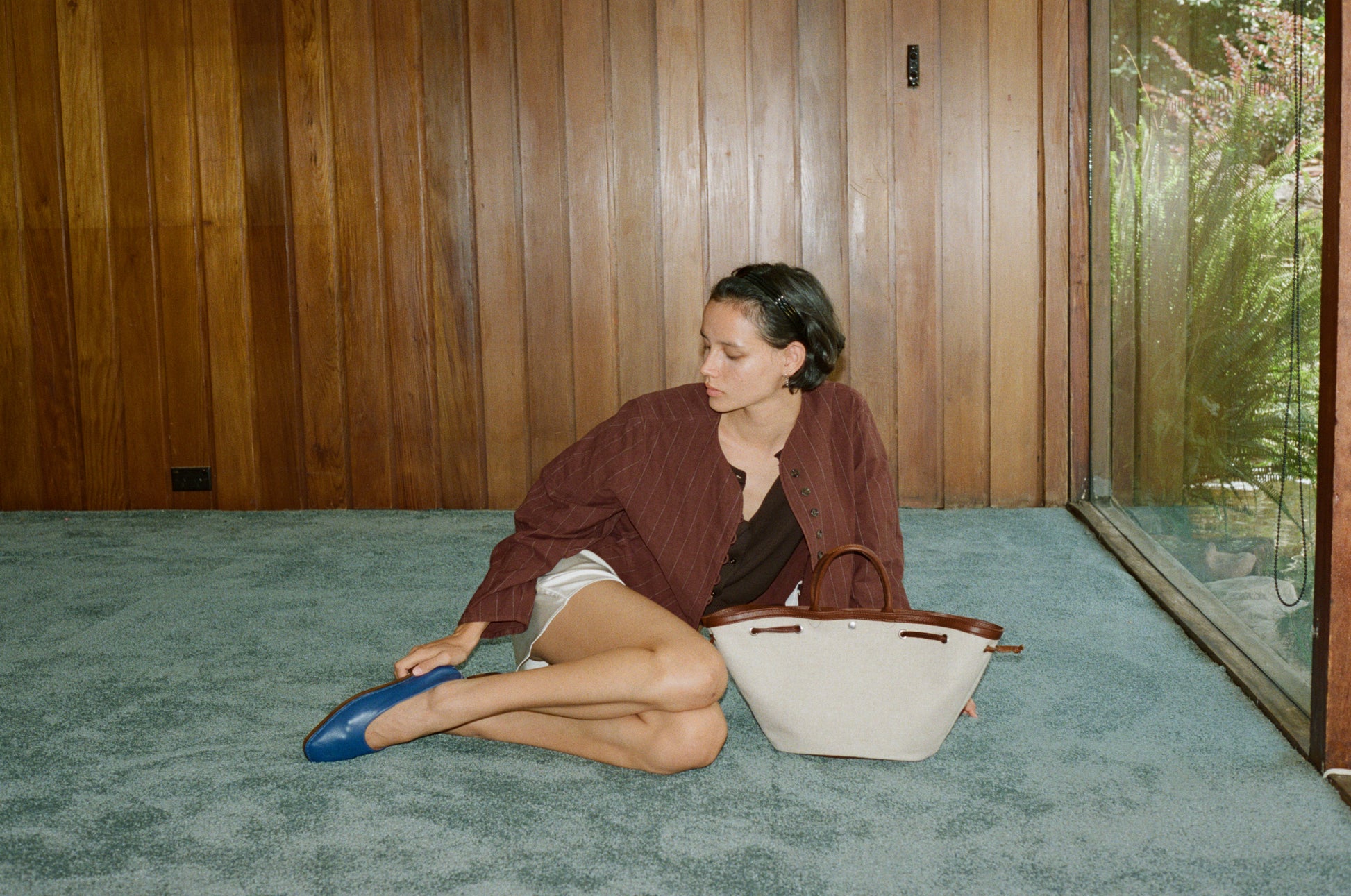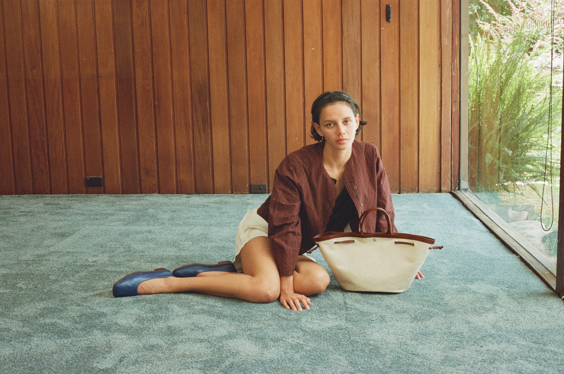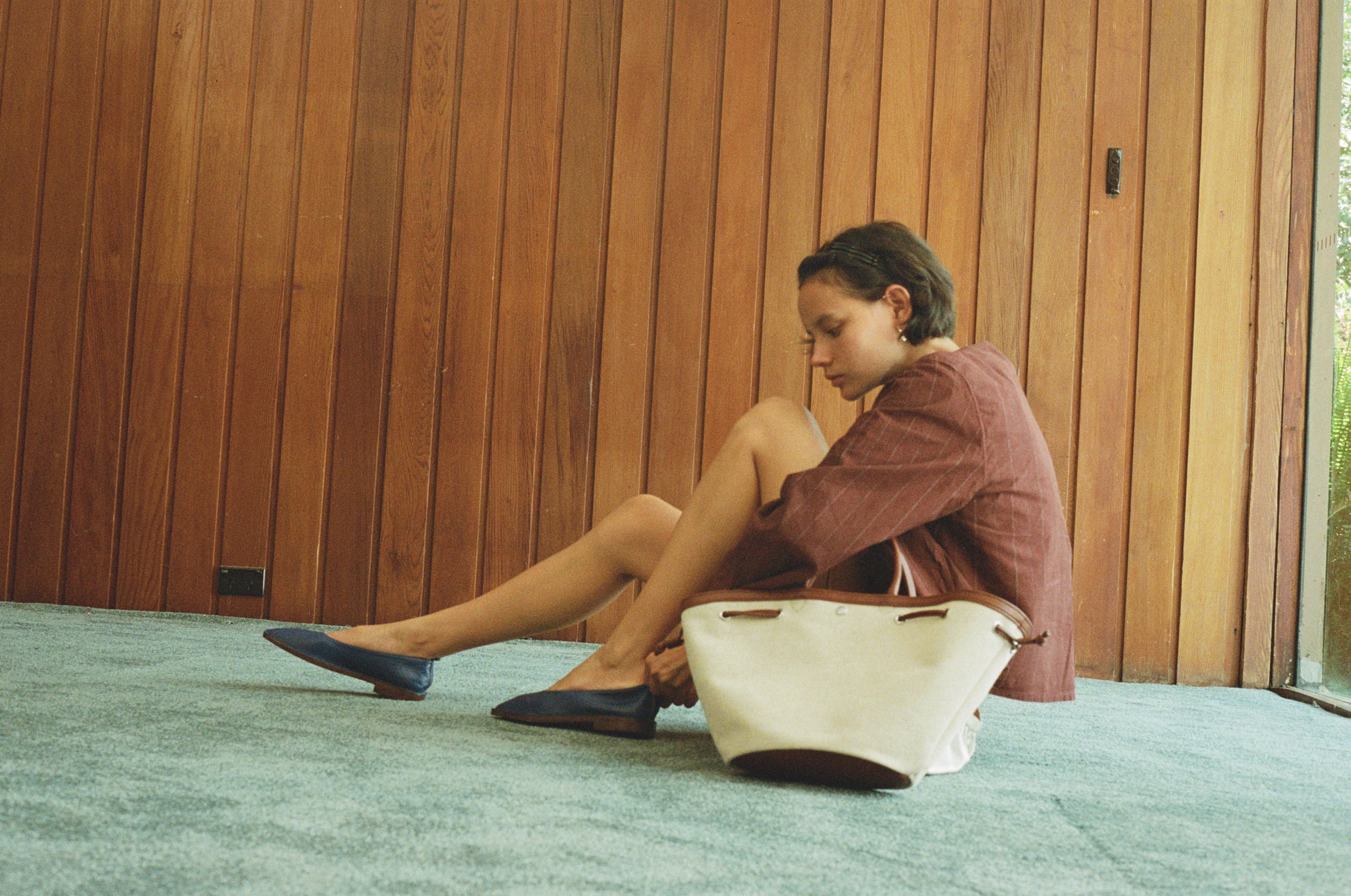 This shopper bag is crafted by combining soft sheepskin with cotton canvas material. Named "COQUILLE," which means "shell" in French, it embodies the feature of a bag that can be freely shaped using the leather string at the top. When carrying many belongings, you can spread it wide to form the shape of a shopper bag, or you can tighten the string to use it as a bucket bag. There's a snap in the center with the logo embossed, allowing for secure closure. Additionally, it comes with a detachable pouch, making it convenient to store small essentials that are frequently needed. The soft and round strap provides a comfortable grip even when the bag is filled with many items, while the sturdy sheepskin bottom provides stability to the bag.