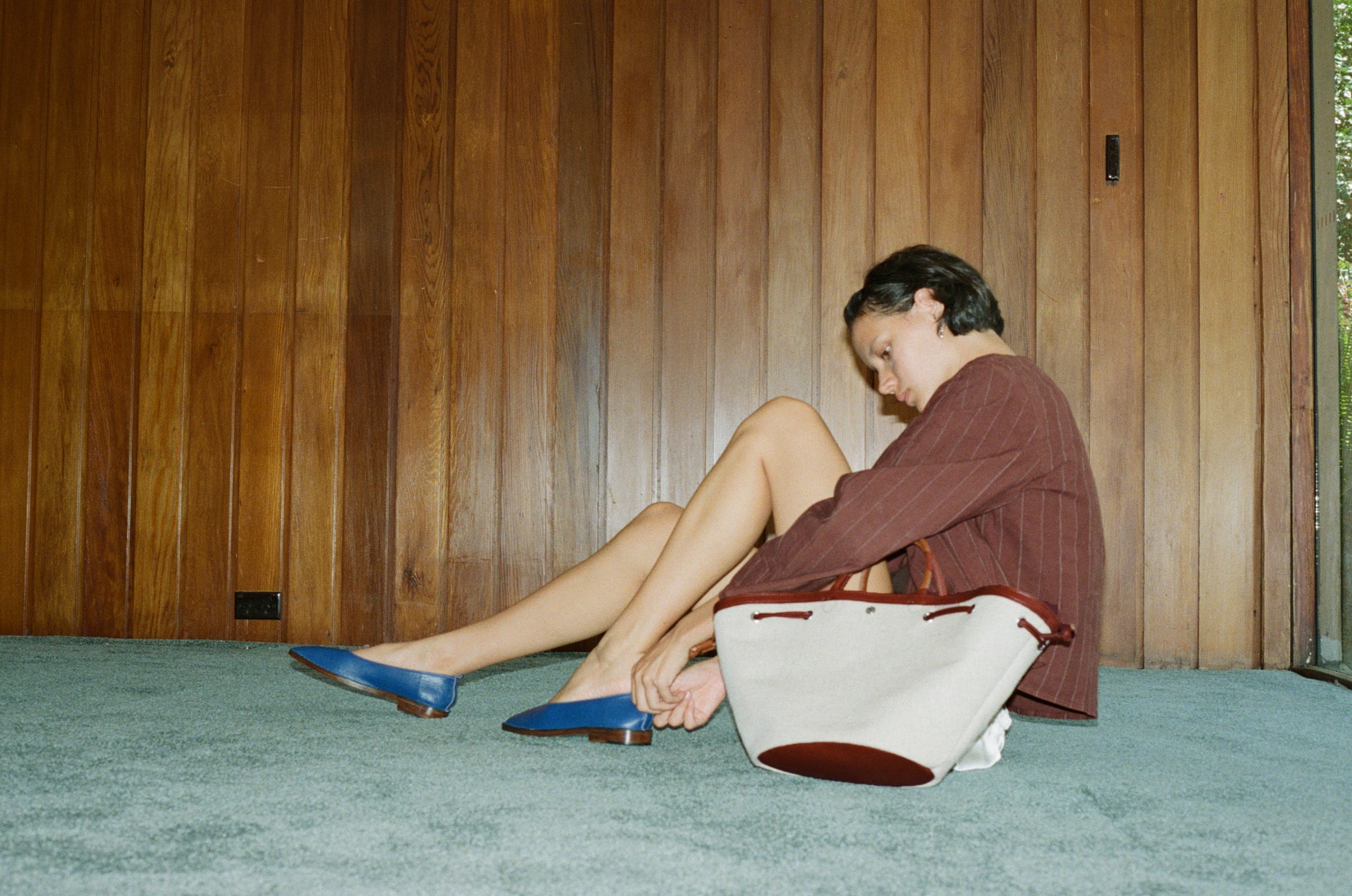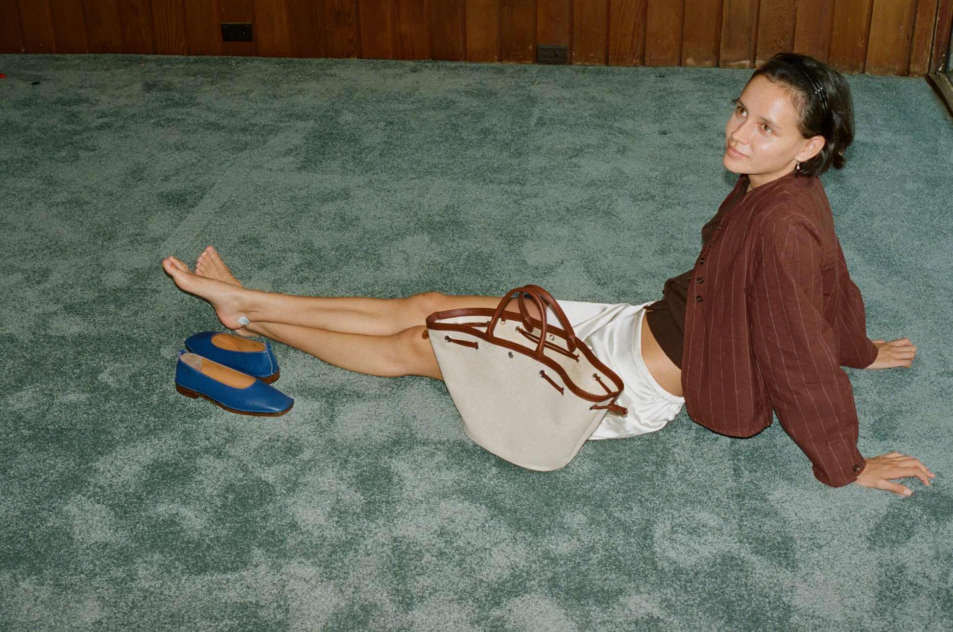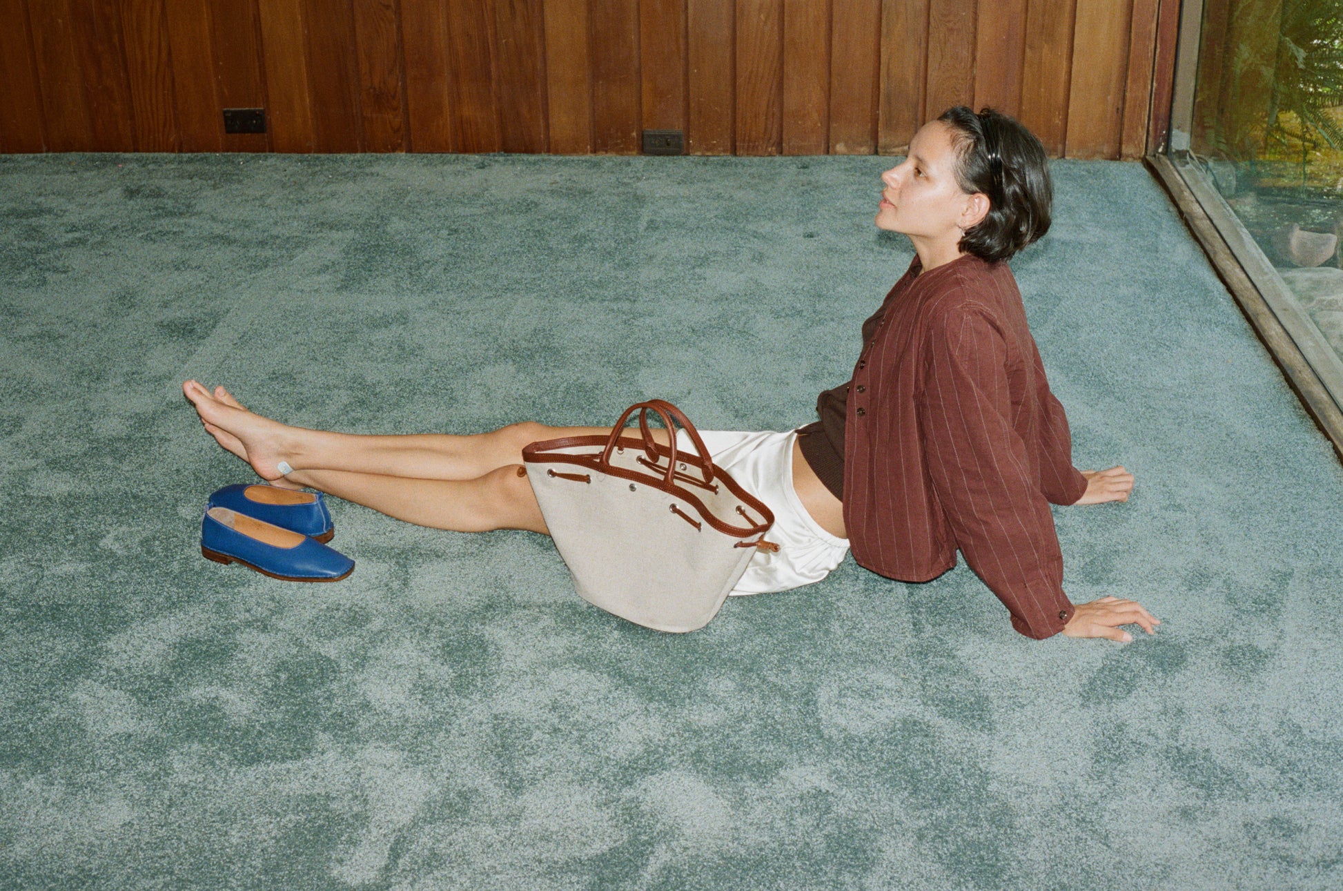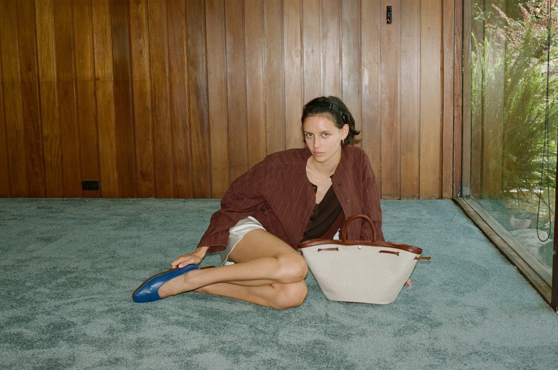 This shopper bag is crafted by combining soft sheepskin with cotton canvas material. Named "COQUILLE," which means "shell" in French, it embodies the feature of a bag that can be freely shaped using the leather string at the top. When carrying many belongings, you can spread it wide to form the shape of a shopper bag, or you can tighten the string to use it as a bucket bag. There's a snap in the center with the logo embossed, allowing for secure closure. Additionally, it comes with a detachable pouch, making it convenient to store small essentials that are frequently needed. The soft and round strap provides a comfortable grip even when the bag is filled with many items, while the sturdy sheepskin bottom provides stability to the bag.