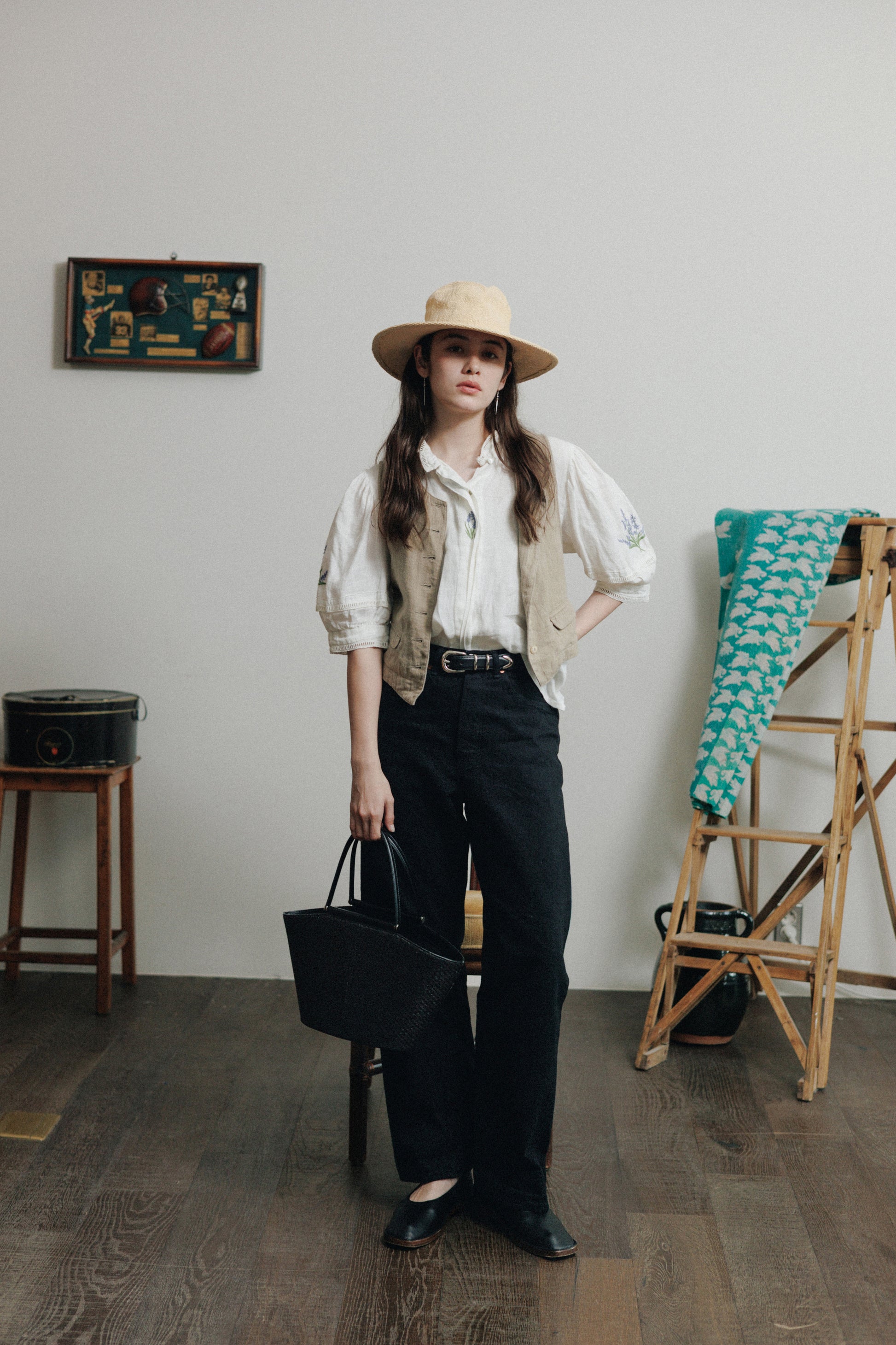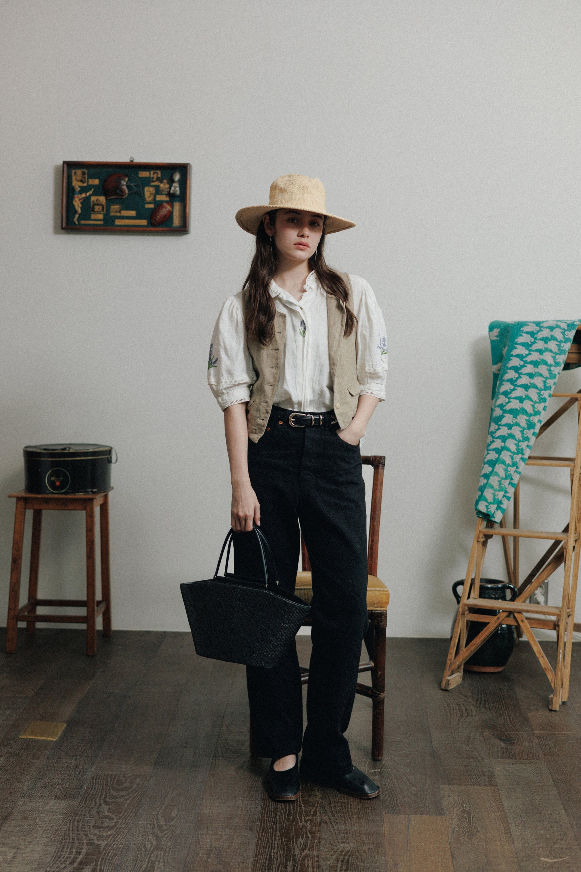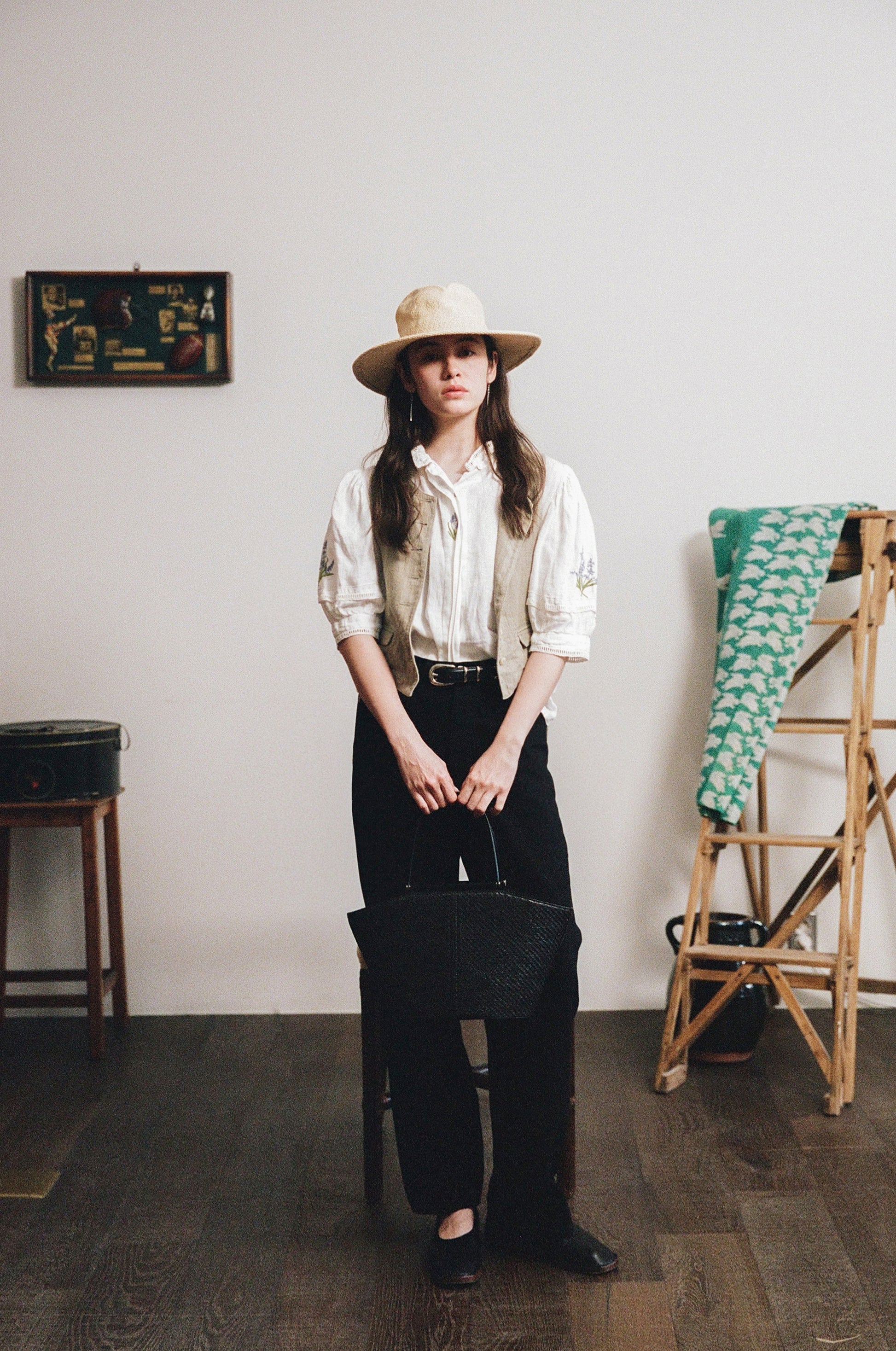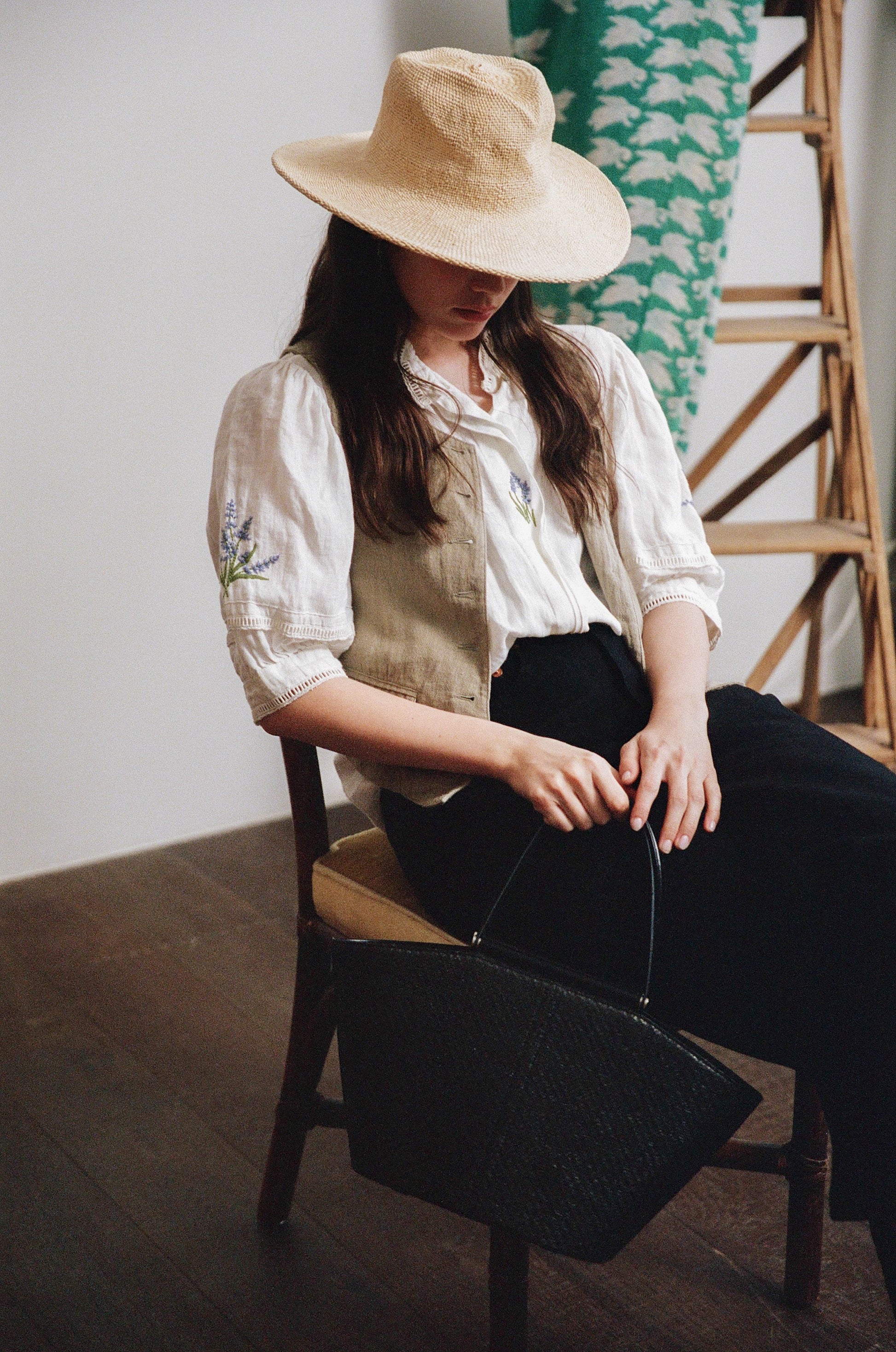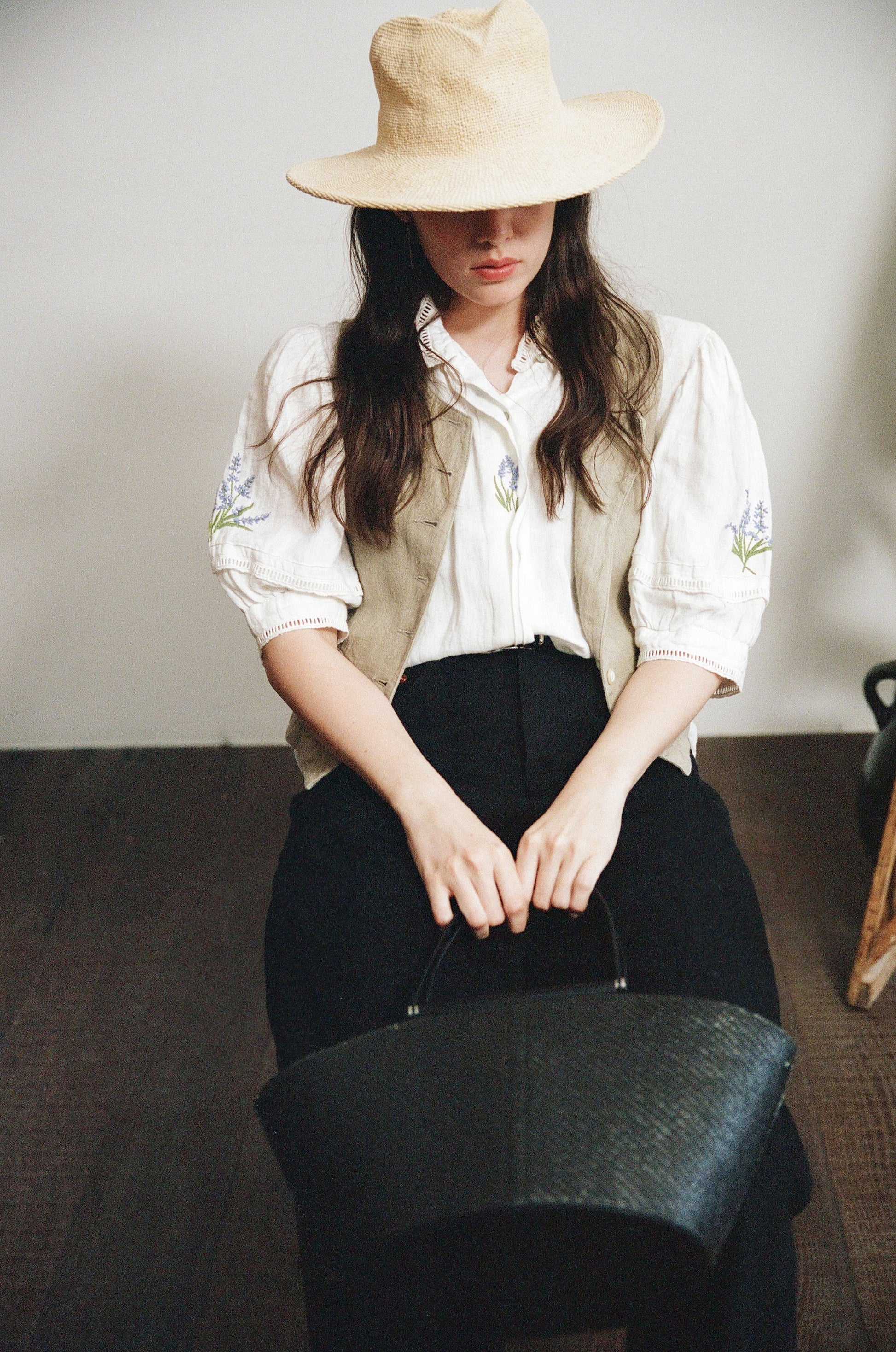 The SAC ÉTIRÉ is reintroduced this season in three new colors. Woven from finely twisted pulp material and finished with vintage two-tone leather accents, it combines a light, airy feel with a classic mood. Its linen lining keeps the bag lightweight, while the roomy interior makes it perfect for both daily use and travel. A zippered inner pocket provides secure storage for small essentials, and a small leather tab allows for easy opening and closing. The bottom is reinforced with full-grain leather and features leather-designed pads for added durability.