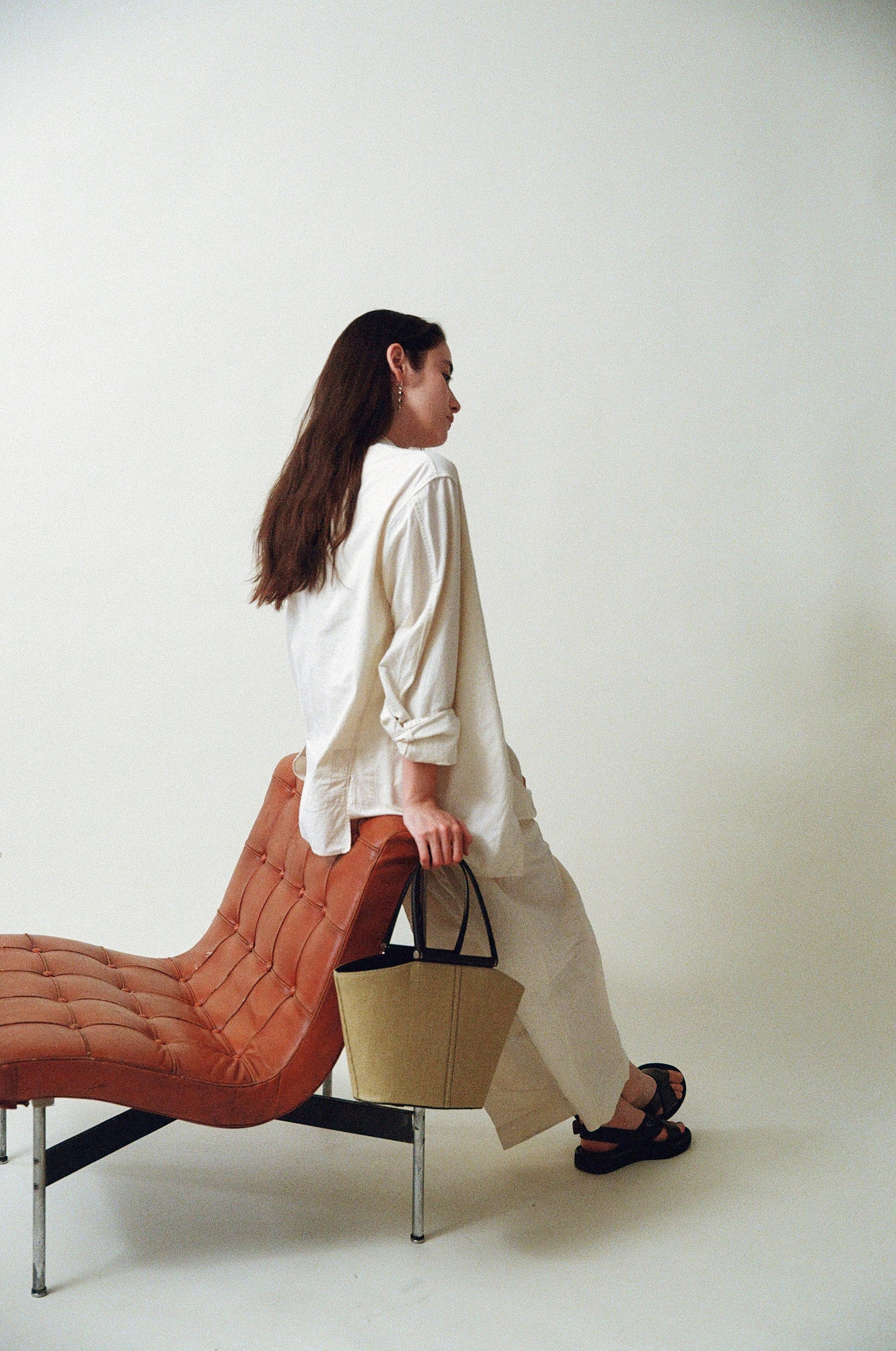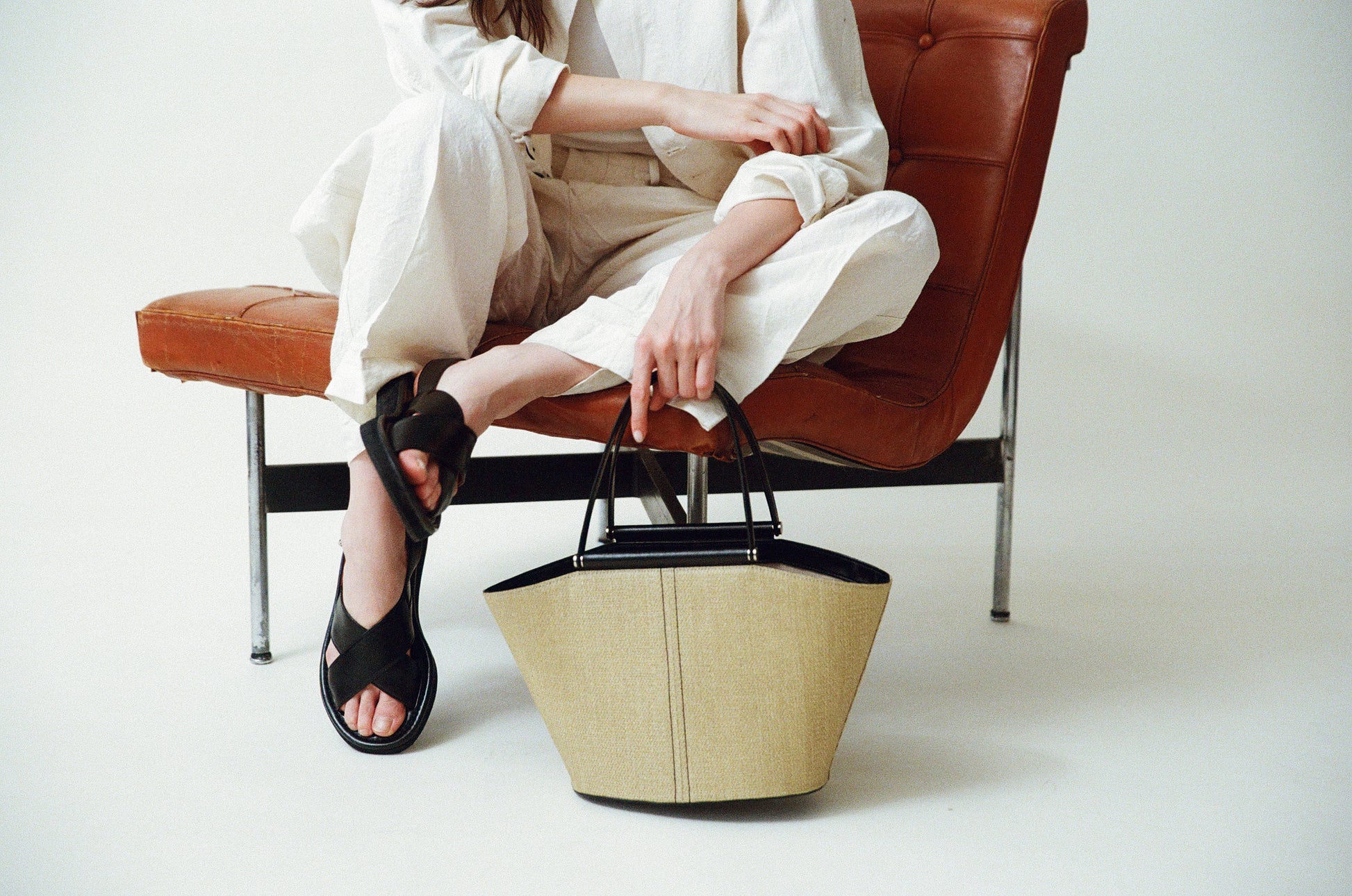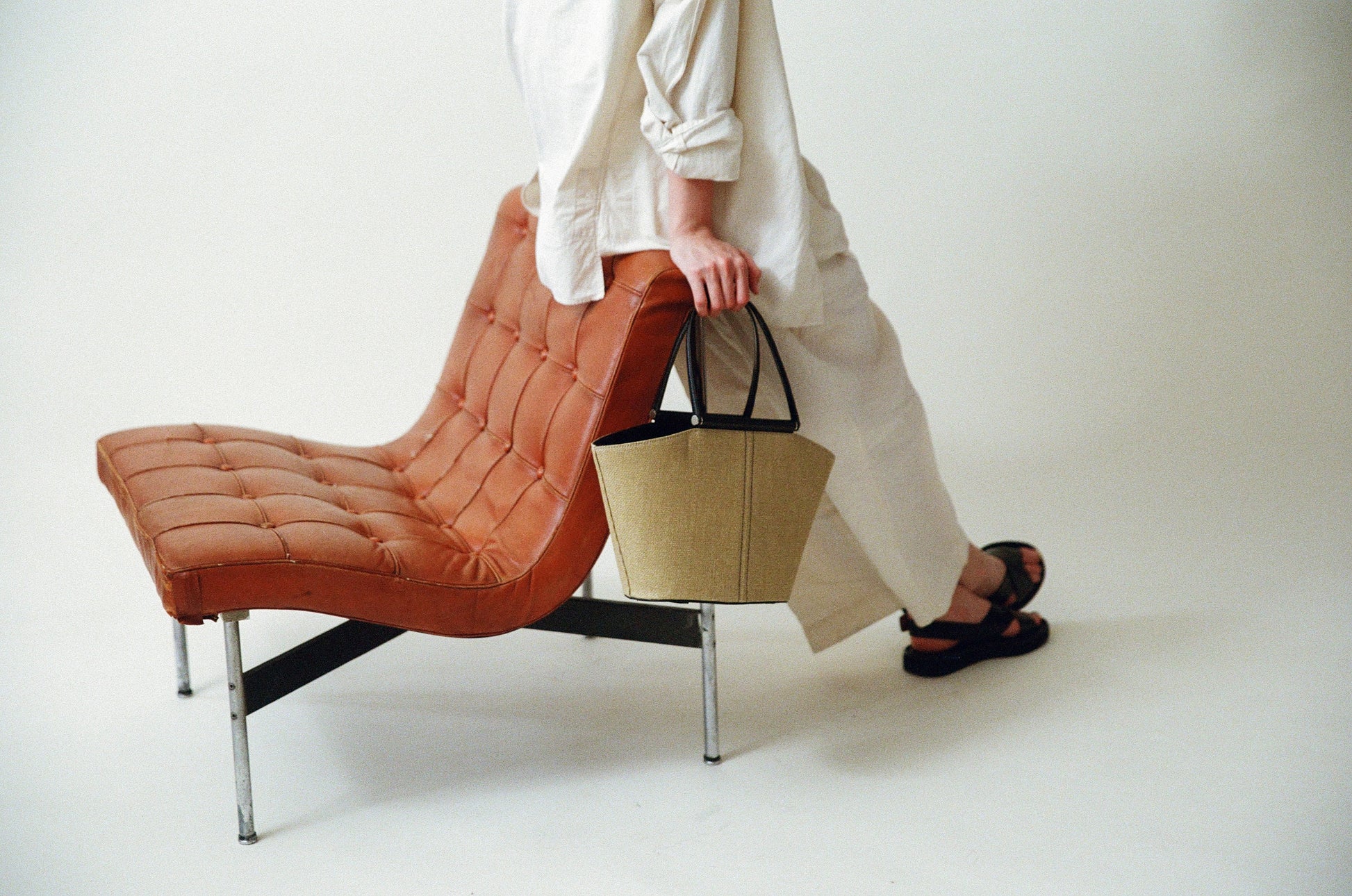 The SAC ÉTIRÉ is reintroduced this season in three new colors. Woven from finely twisted pulp material and finished with vintage two-tone leather accents, it combines a light, airy feel with a classic mood. Its linen lining keeps the bag lightweight, while the roomy interior makes it perfect for both daily use and travel. A zippered inner pocket provides secure storage for small essentials, and a small leather tab allows for easy opening and closing. The bottom is reinforced with full-grain leather and features leather-designed pads for added durability.