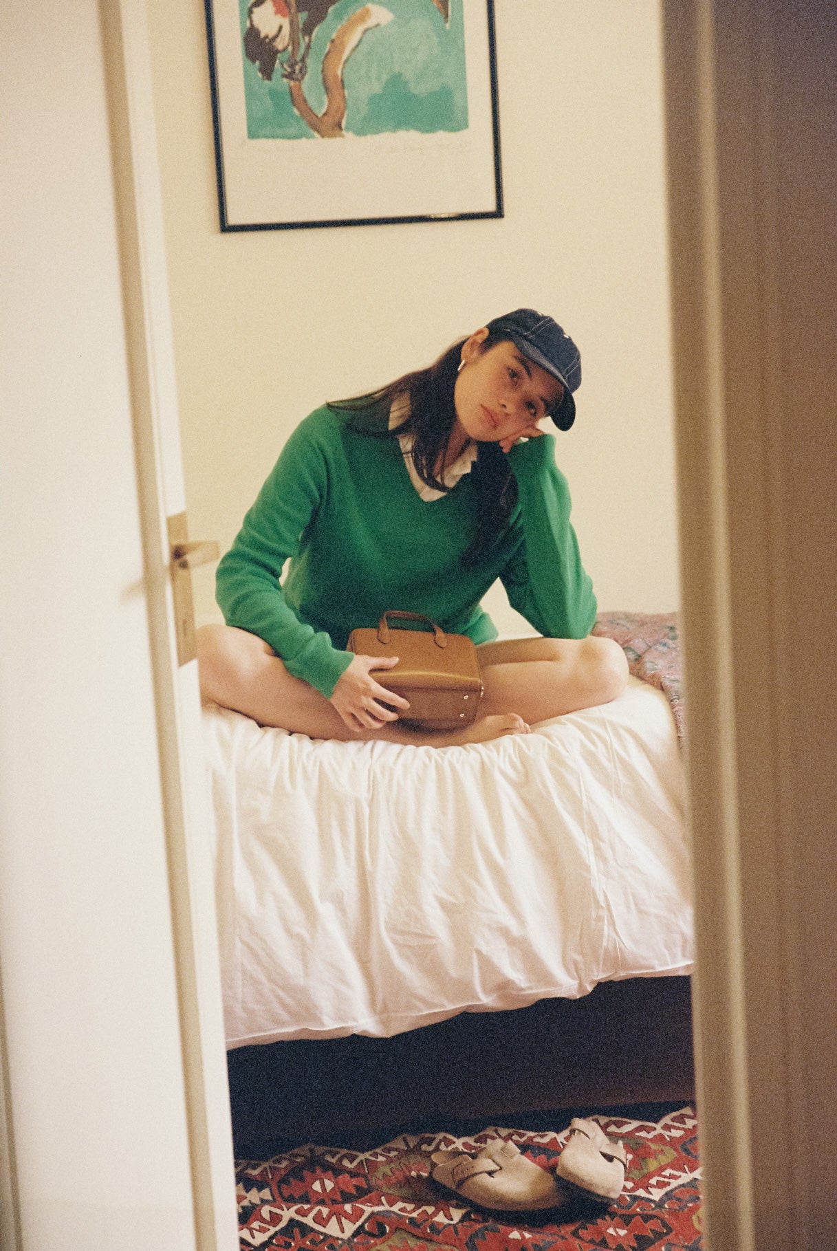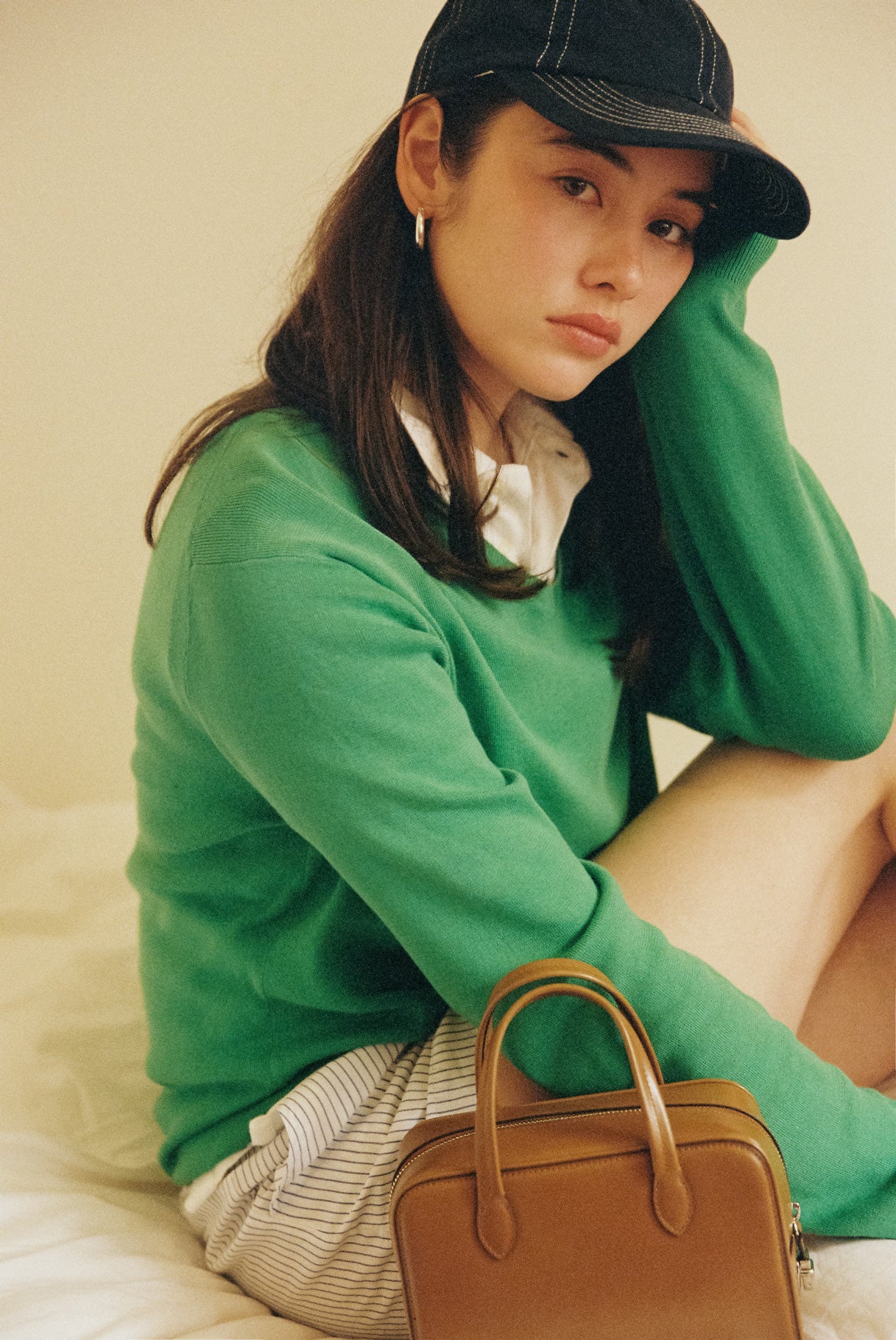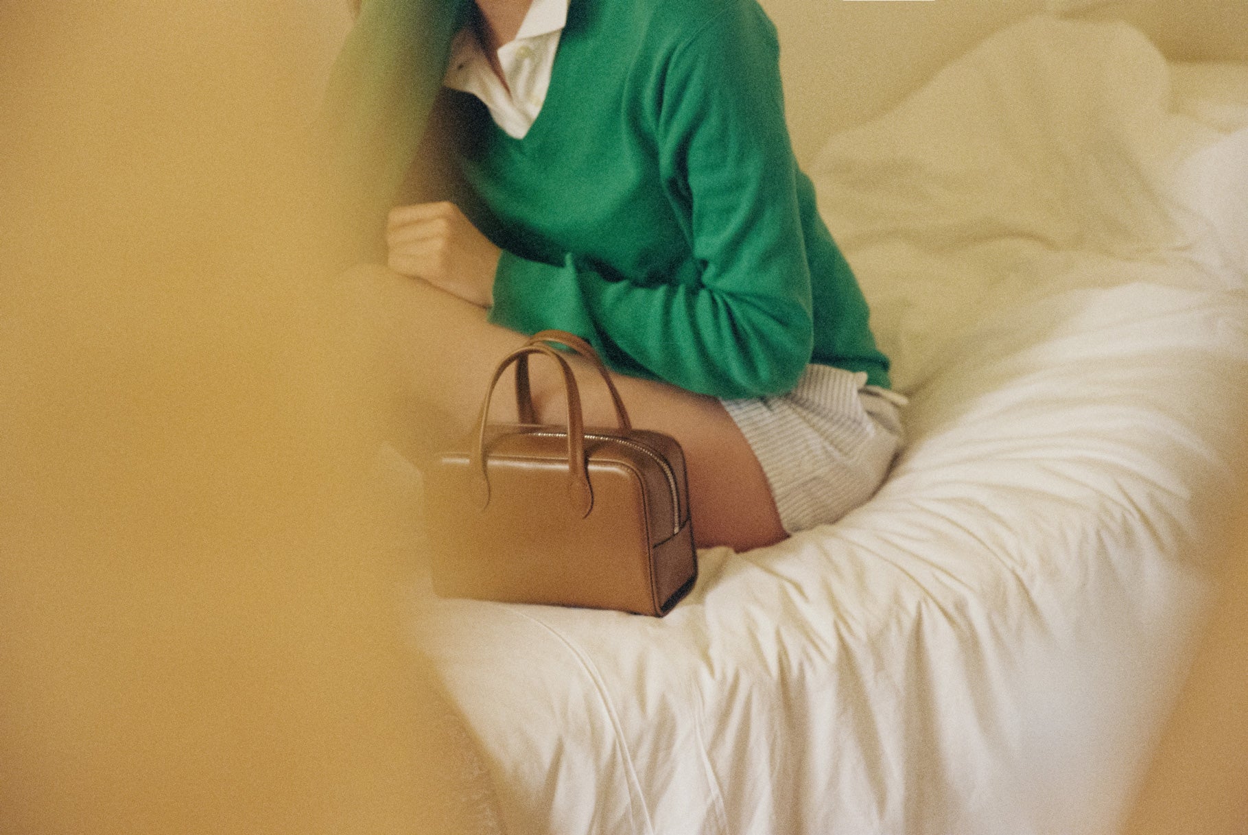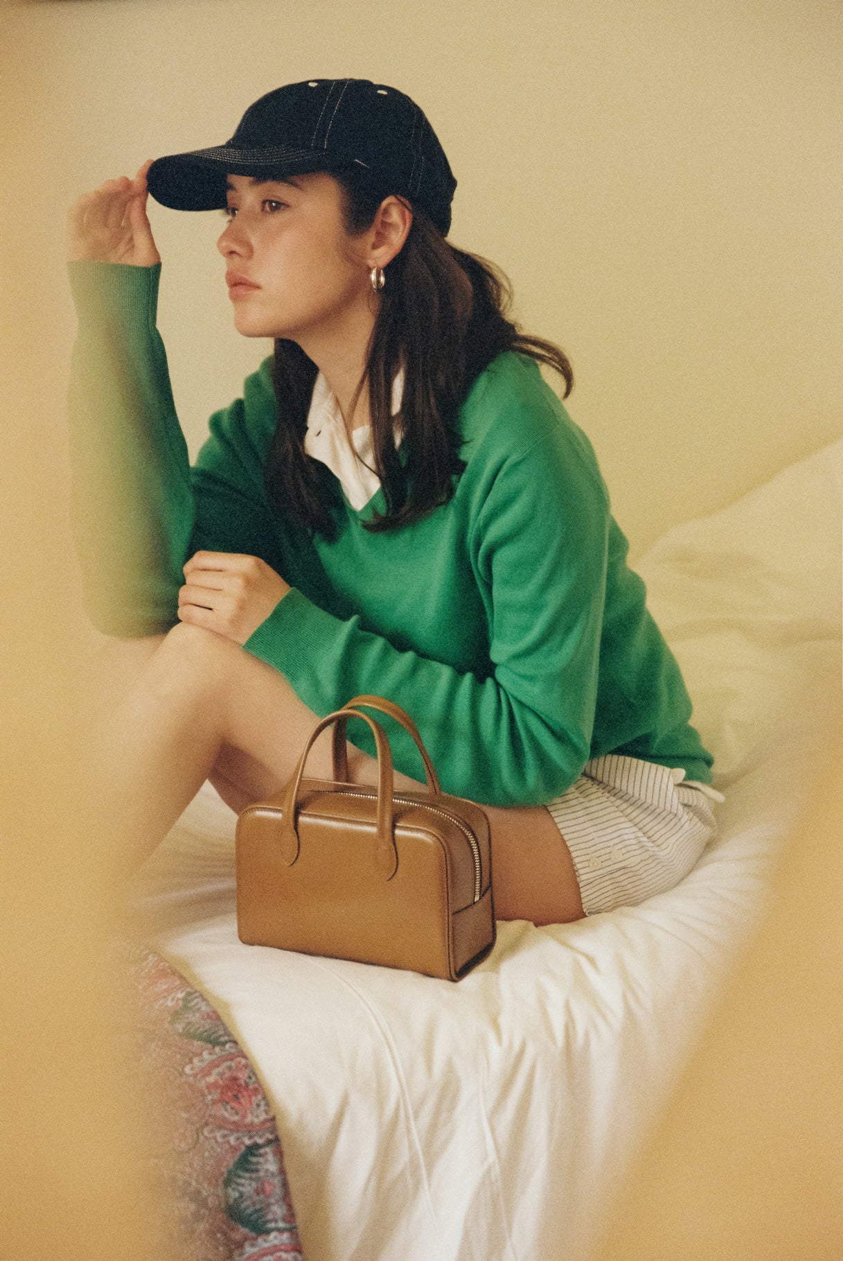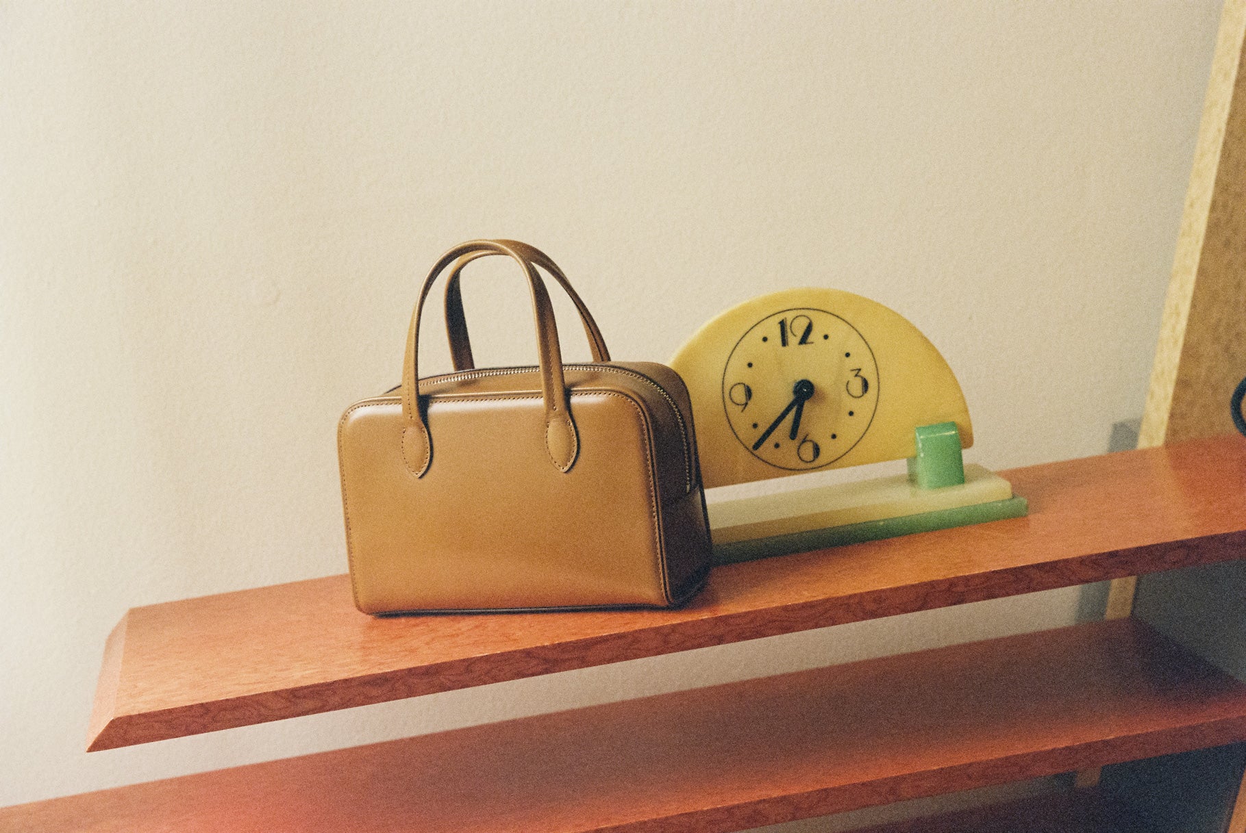 The LOQUET bag features a classic shape adorned with delicate decorations, offering a distinctive interpretation of bawling bag by TOUT Y EST. Crafted from oil-finished leather with a subtle sheen, it incorporates a secure zipper closure enhanced by a signature push lock. The four foot decorations provide stable support, and a firm and classic shape complements any outfit. The thick linen-cotton lining enhances durability, while the wide-opening zipper offers generous storage capacity.