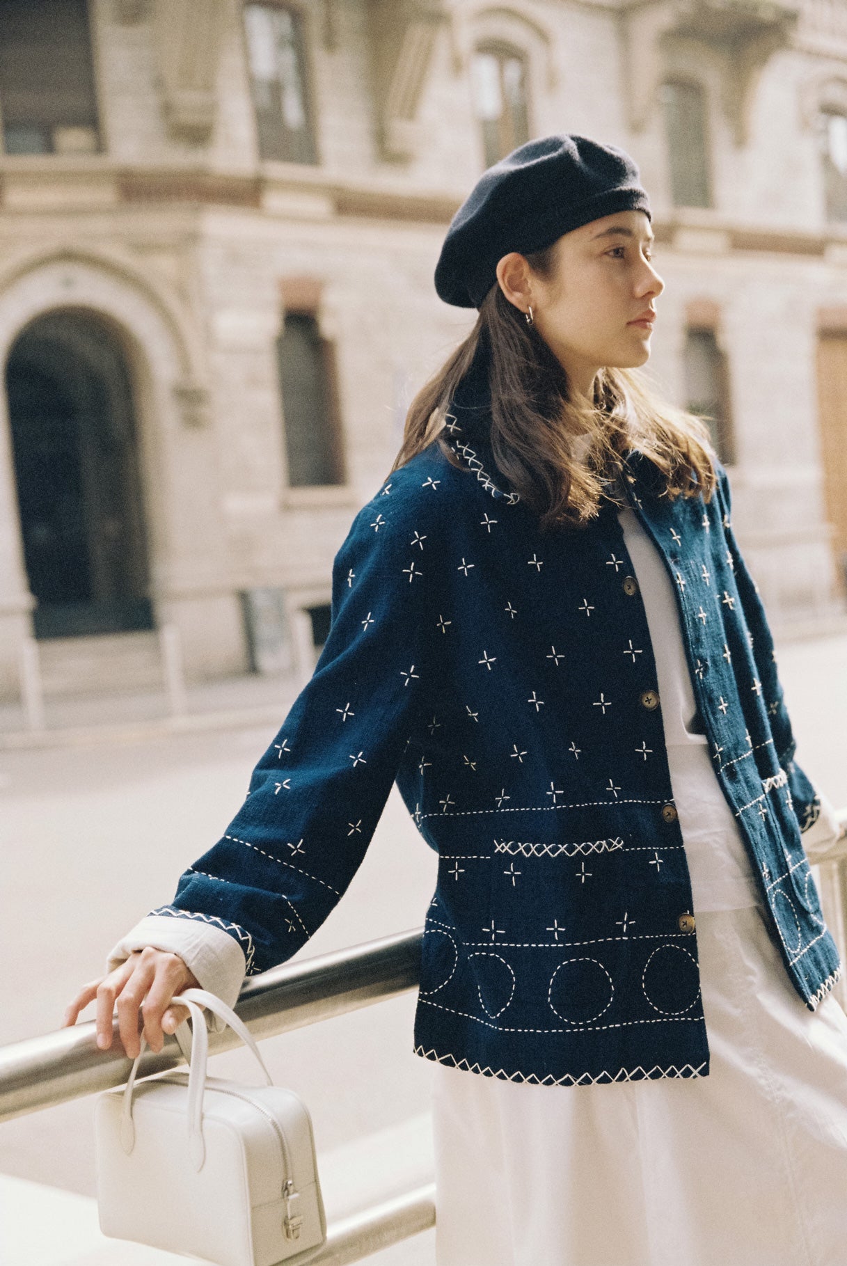 The LOQUET bag features a classic shape adorned with delicate decorations, offering a distinctive interpretation of bawling bag by TOUT Y EST. Crafted from oil-finished leather with a subtle sheen, it incorporates a secure zipper closure enhanced by a signature push lock. The four foot decorations provide stable support, and a firm and classic shape complements any outfit. The thick linen-cotton lining enhances durability, while the wide-opening zipper offers generous storage capacity.