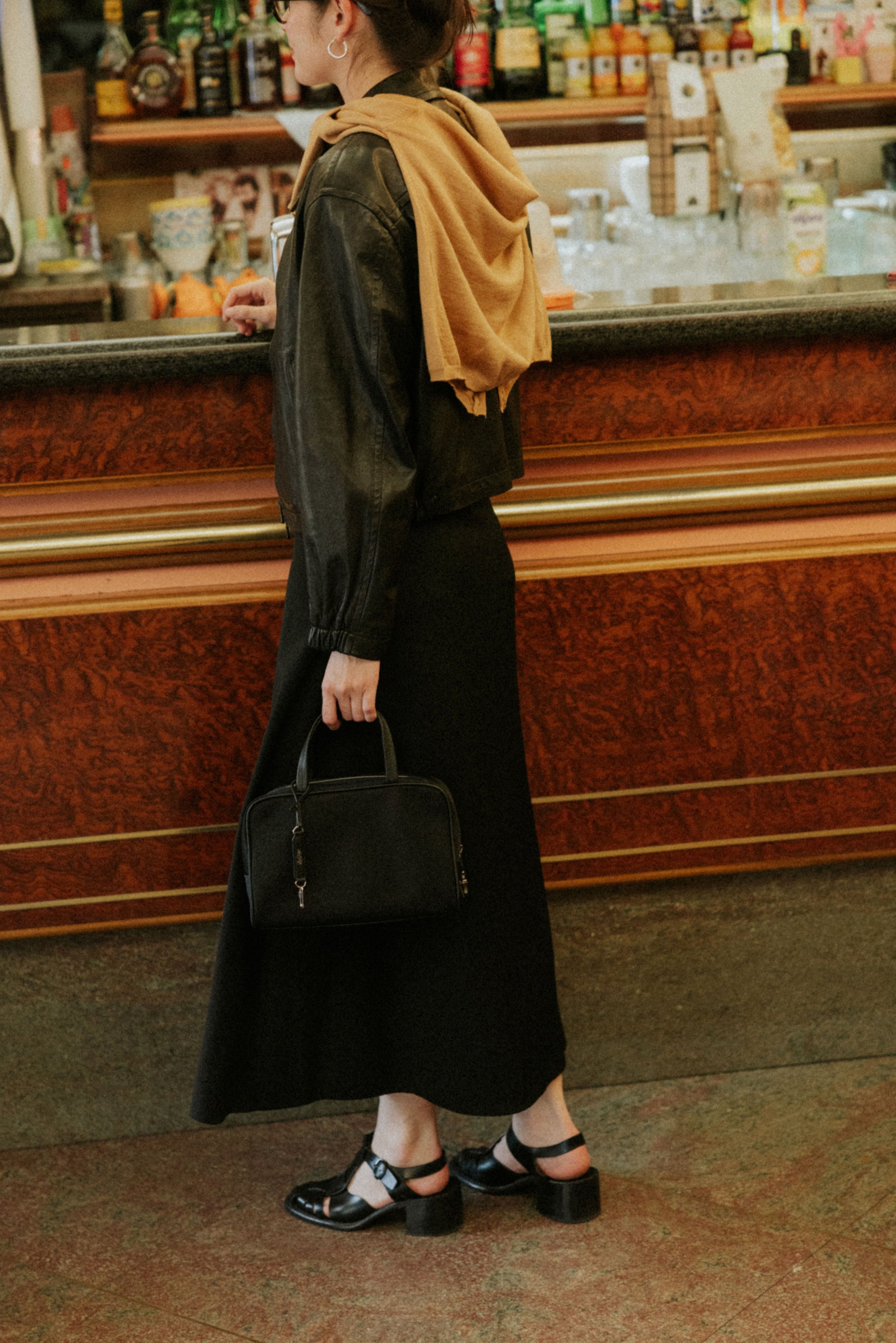 This is the LOQUET bag in nylon; a lightweight and durable material. Its soft finish allows for a natural shape and comfortable fit. The strap section is crafted from cowhide to enhance durability, and the leather trim along the edges stabilizes the bag's shape. The strap features a detachable logo leather charm decoration. The outer fabric is water-resistant, making it suitable for use in any season. The lining, made from thick linen-cotton, coupled with the wide-opening zipper, provides ample storage capacity while maintaining a lightweight of 270g.