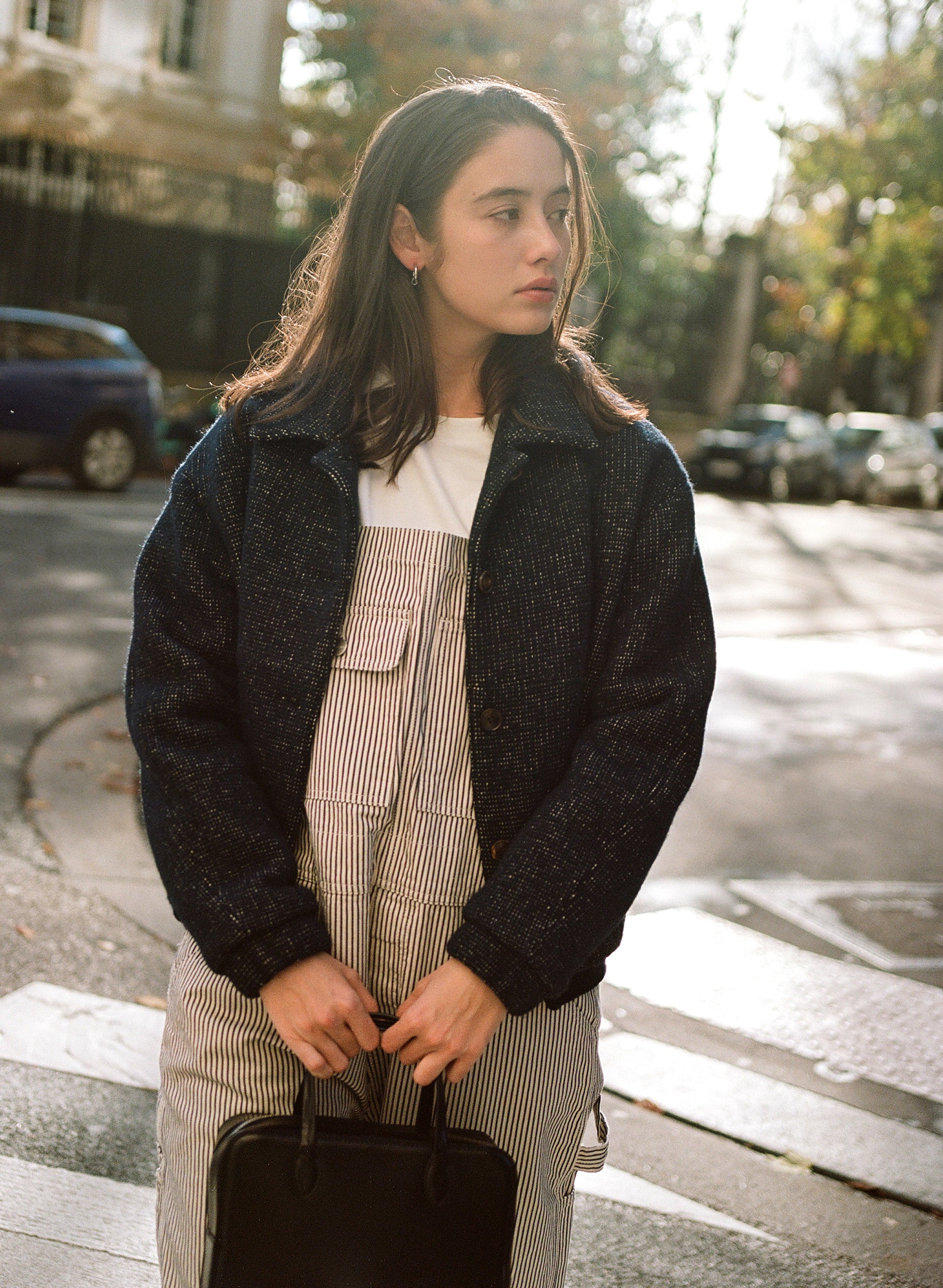The LOQUET bag features a classic shape adorned with delicate decorations, offering a distinctive interpretation of bawling bag by TOUT Y EST. Crafted from oil-finished leather with a subtle sheen, it incorporates a secure zipper closure enhanced by a signature push lock. The four foot decorations provide stable support, and a firm and classic shape complements any outfit. The thick linen-cotton lining enhances durability, while the wide-opening zipper offers generous storage capacity.