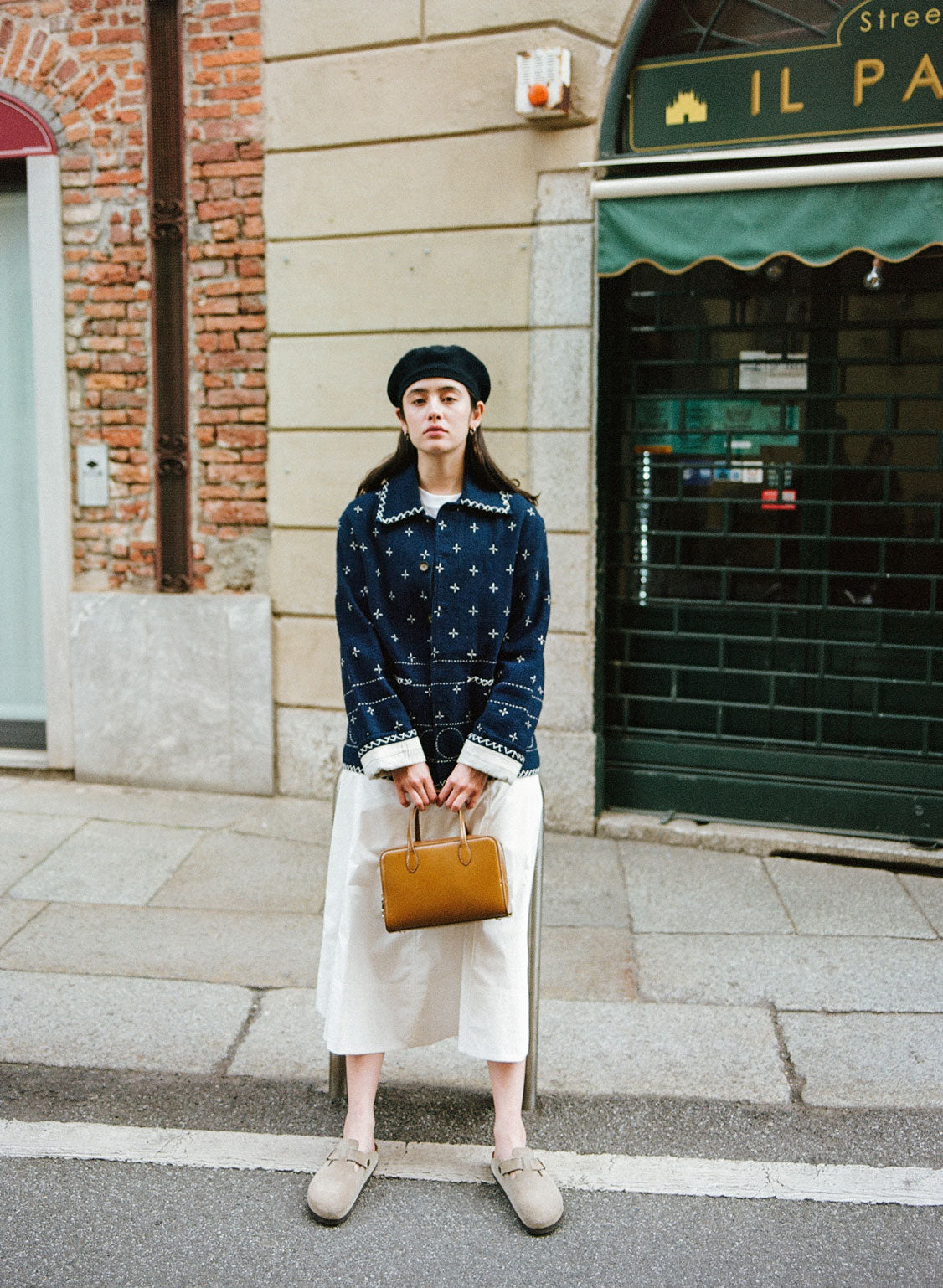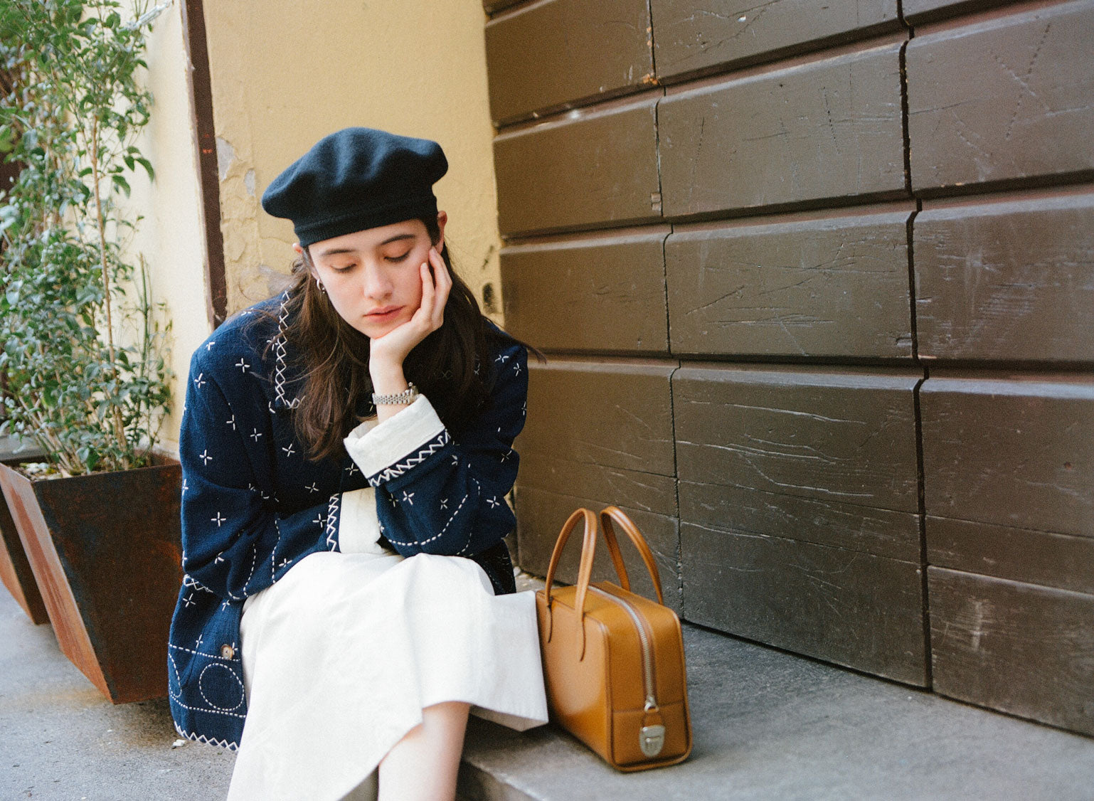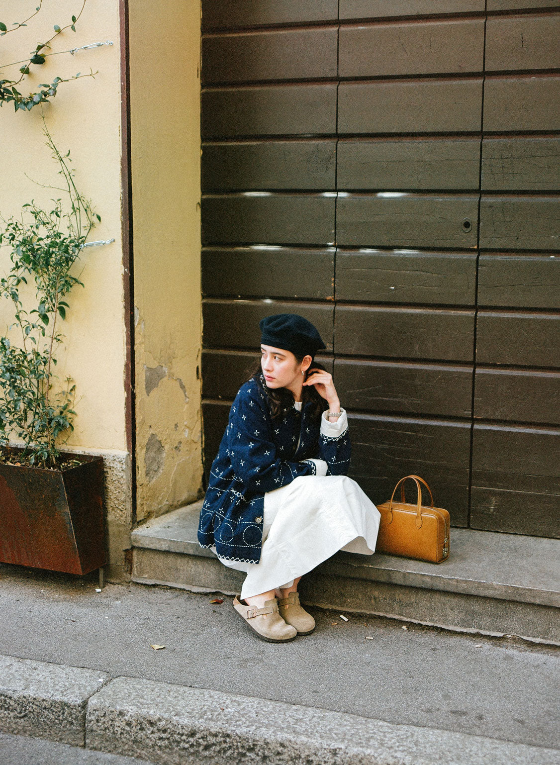 The LOQUET bag features a classic shape adorned with delicate decorations, offering a distinctive interpretation of bawling bag by TOUT Y EST. Crafted from oil-finished leather with a subtle sheen, it incorporates a secure zipper closure enhanced by a signature push lock. The four foot decorations provide stable support, and a firm and classic shape complements any outfit. The thick linen-cotton lining enhances durability, while the wide-opening zipper offers generous storage capacity.