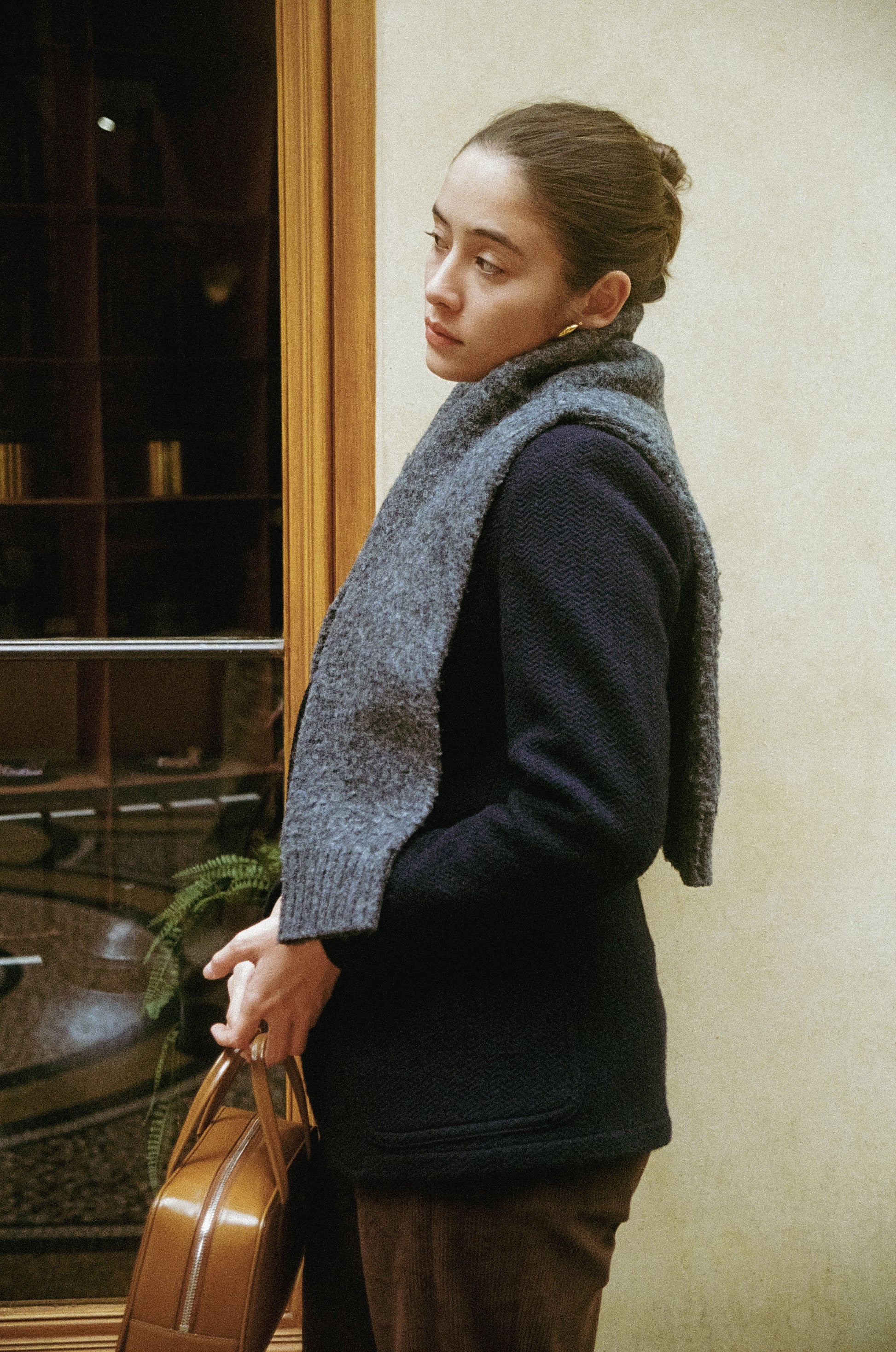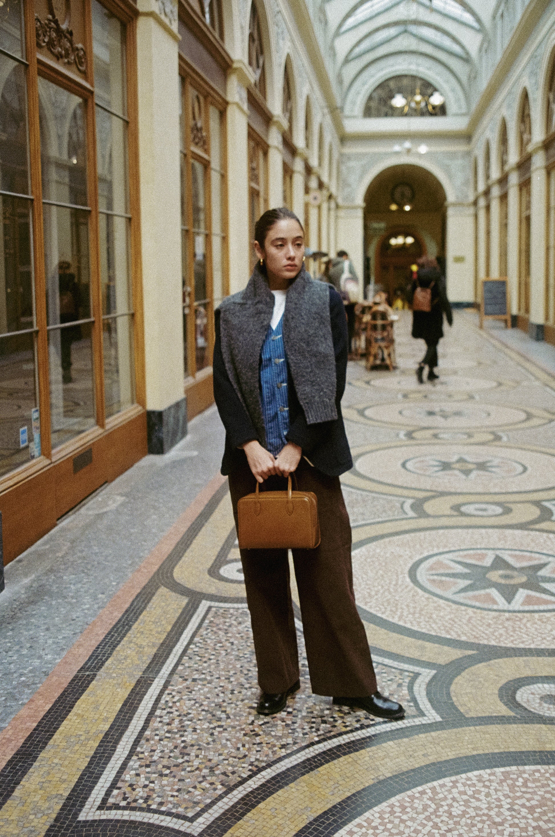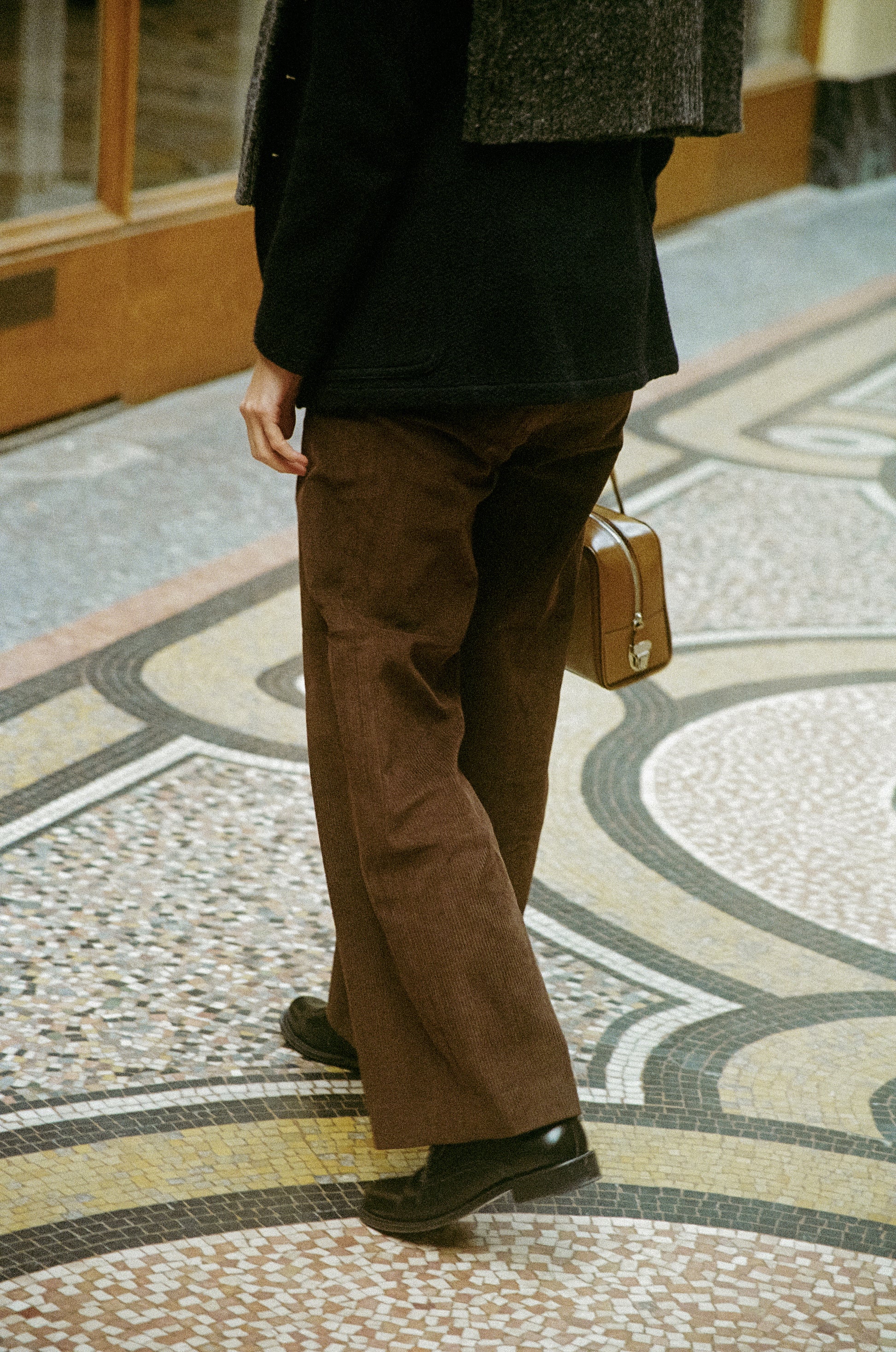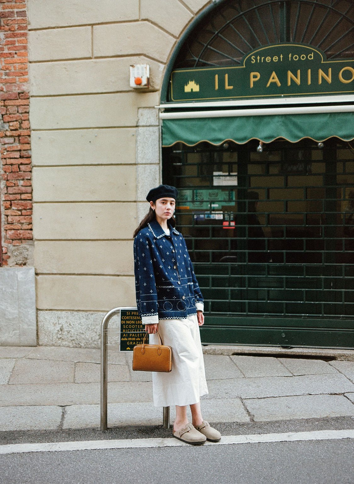 The LOQUET bag features a classic shape adorned with delicate decorations, offering a distinctive interpretation of bawling bag by TOUT Y EST. Crafted from oil-finished leather with a subtle sheen, it incorporates a secure zipper closure enhanced by a signature push lock. The four foot decorations provide stable support, and a firm and classic shape complements any outfit. The thick linen-cotton lining enhances durability, while the wide-opening zipper offers generous storage capacity.
