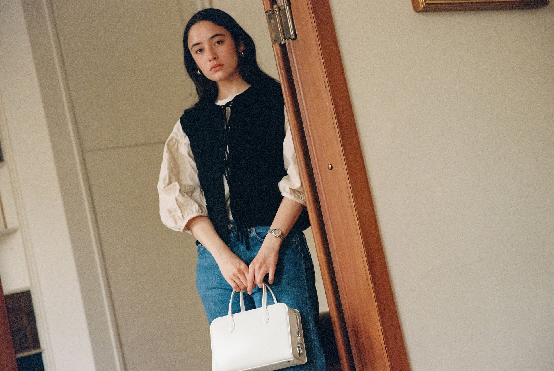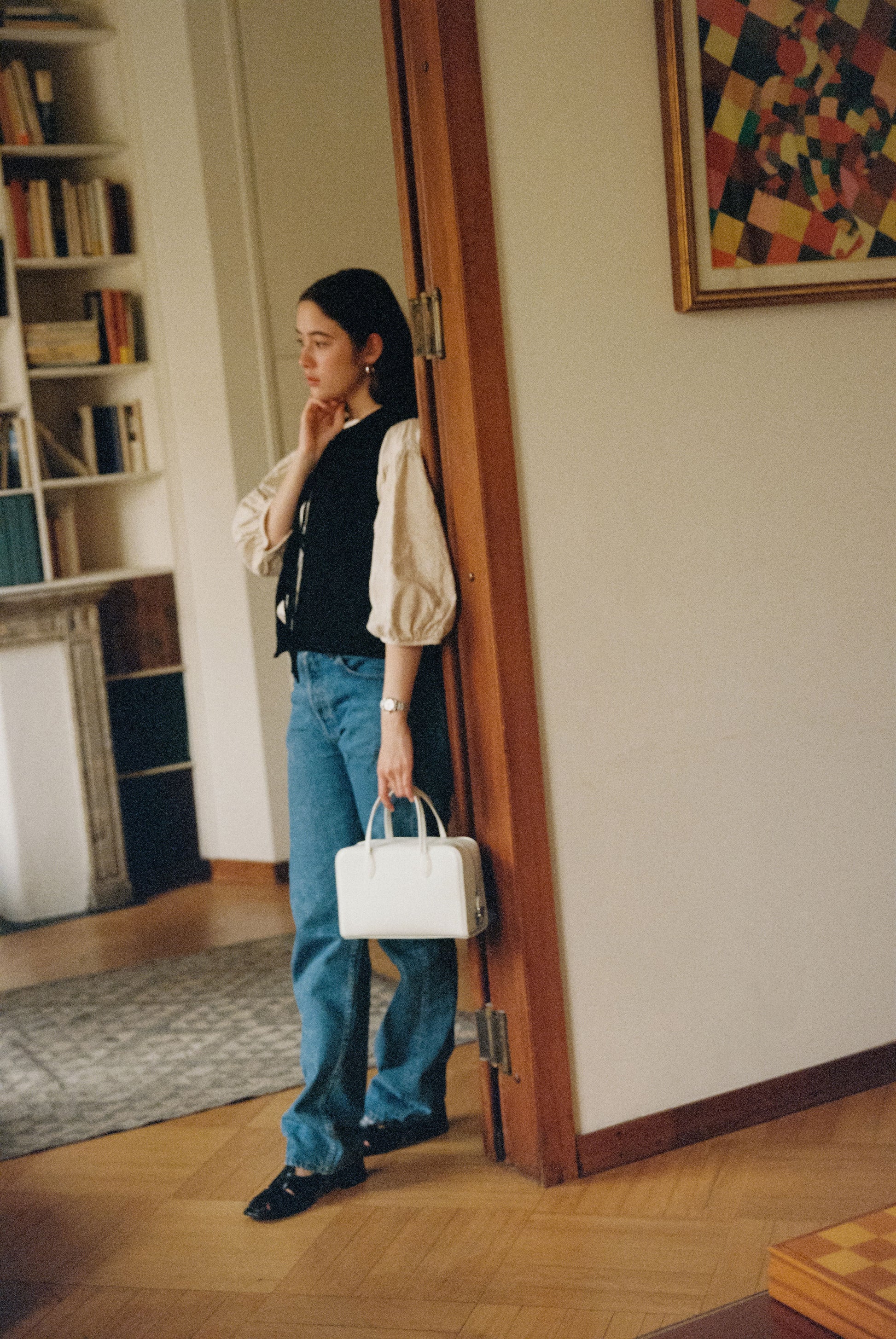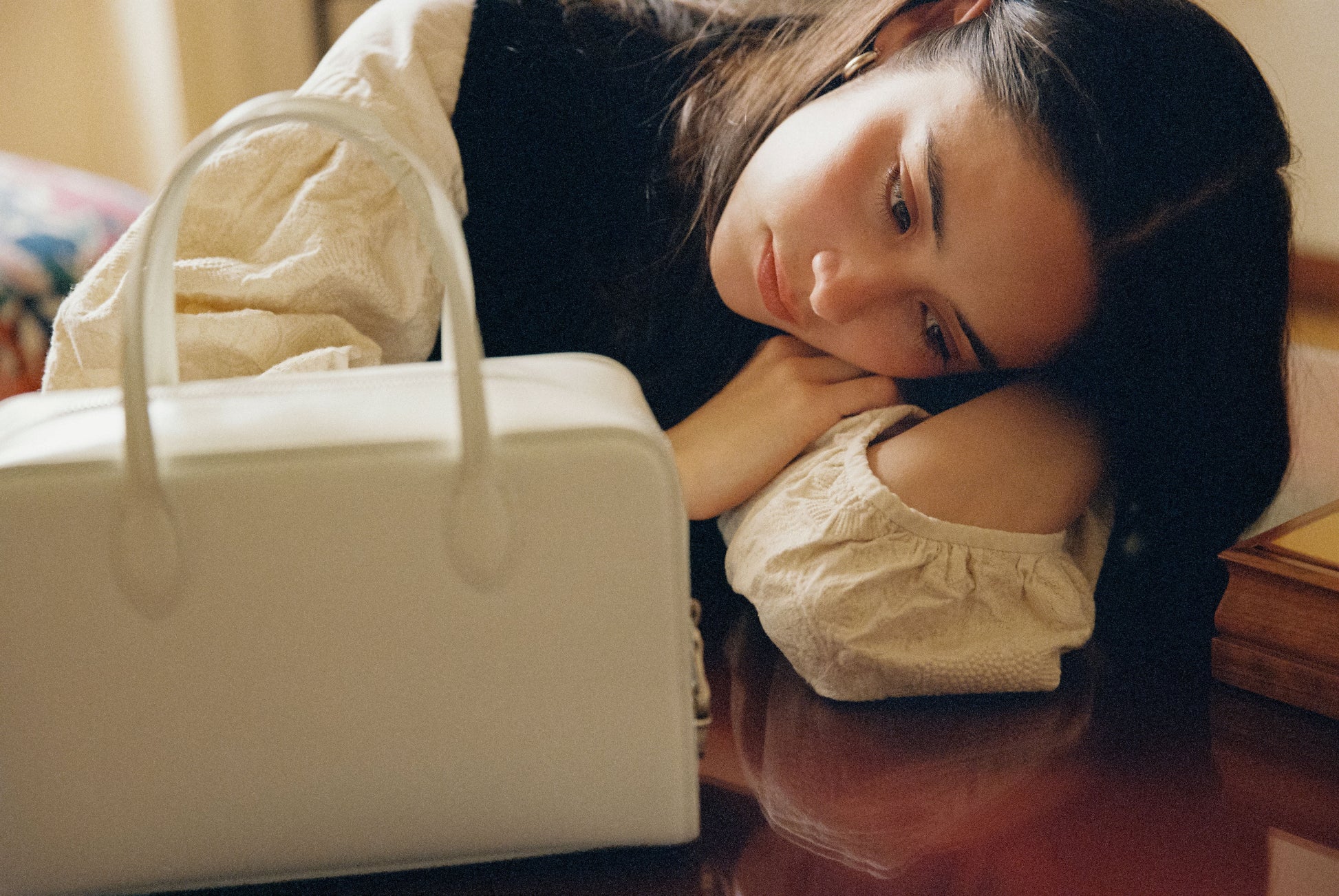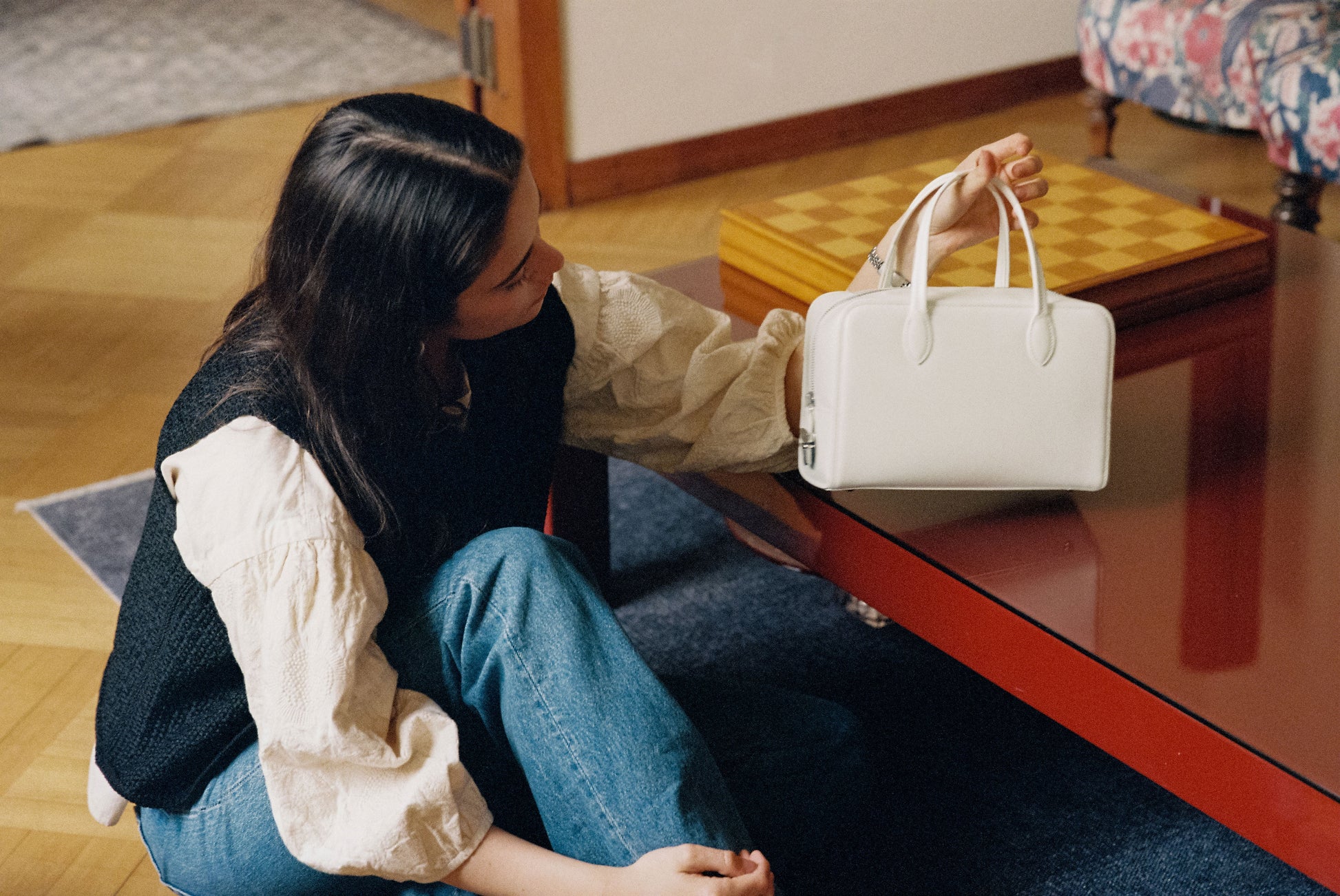 The LOQUET bag features a classic shape adorned with delicate decorations, offering a distinctive interpretation of bawling bag by TOUT Y EST. Crafted from oil-finished leather with a subtle sheen, it incorporates a secure zipper closure enhanced by a signature push lock. The four foot decorations provide stable support, and a firm and classic shape complements any outfit. The thick linen-cotton lining enhances durability, while the wide-opening zipper offers generous storage capacity.