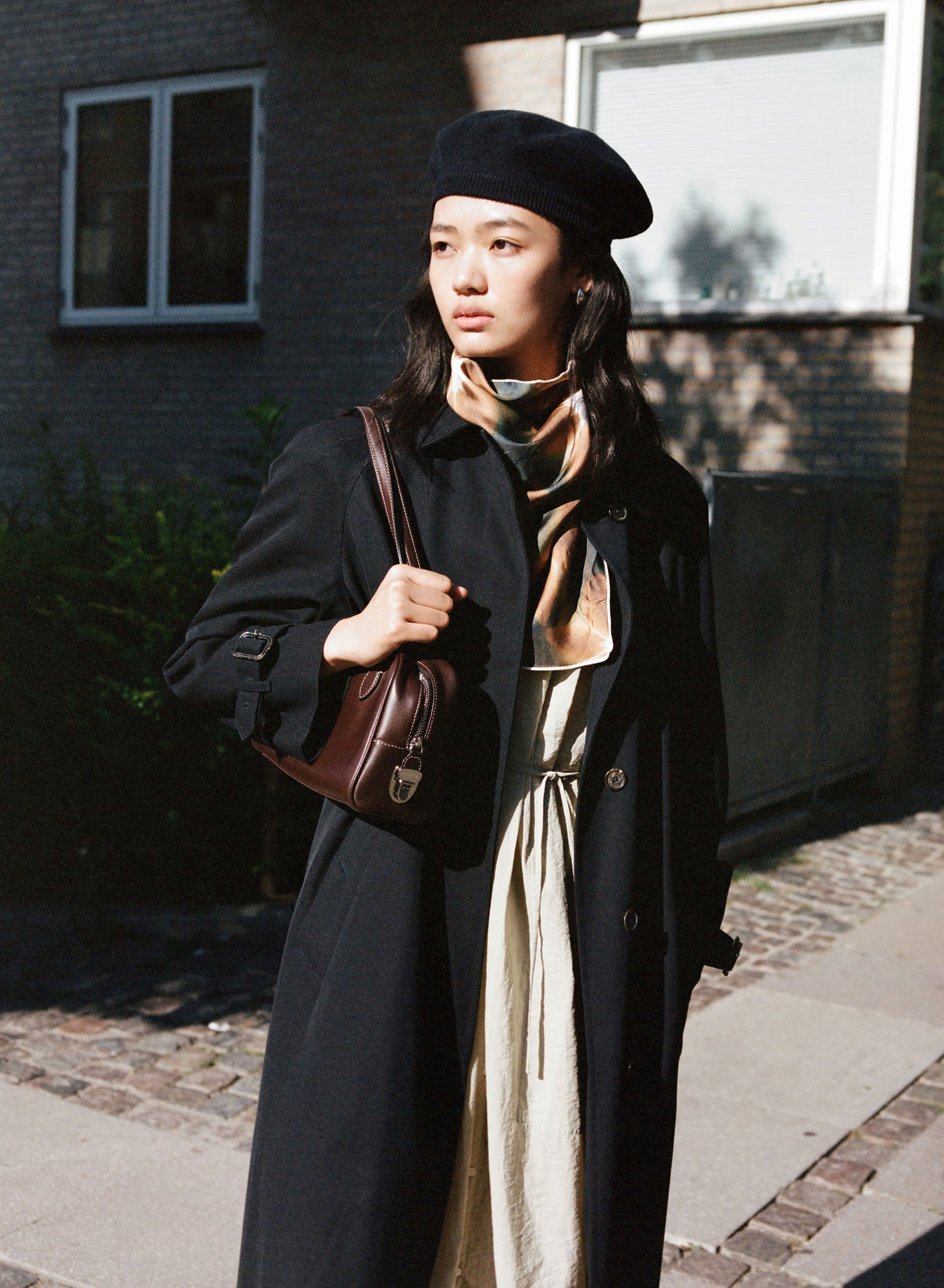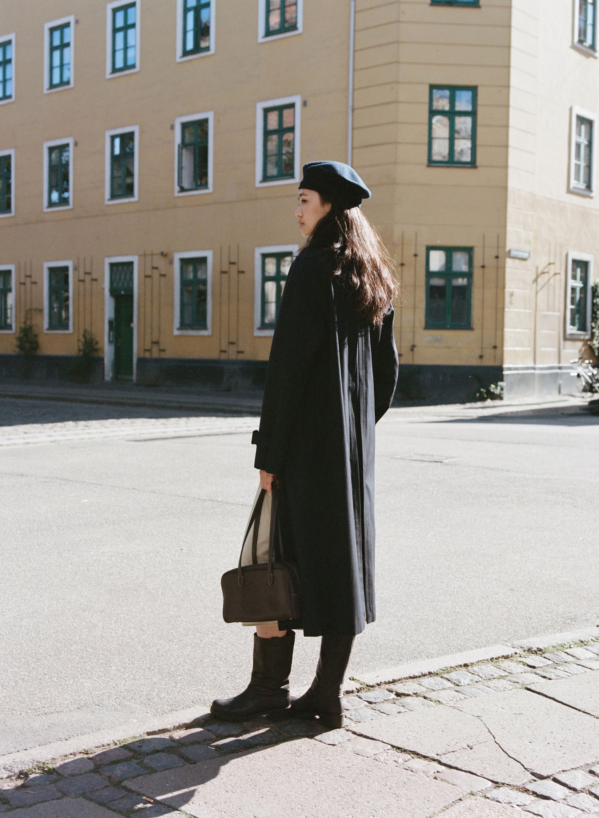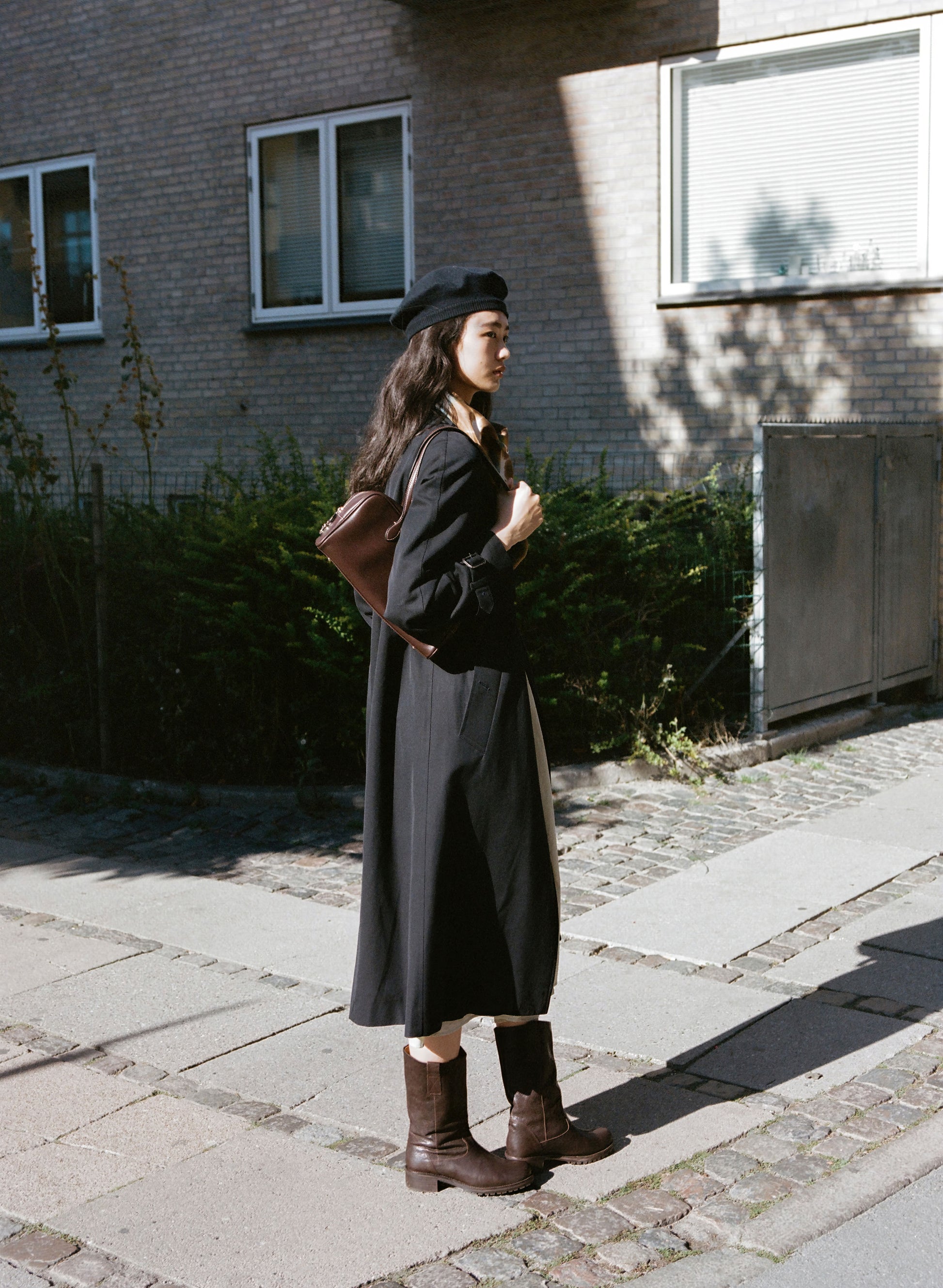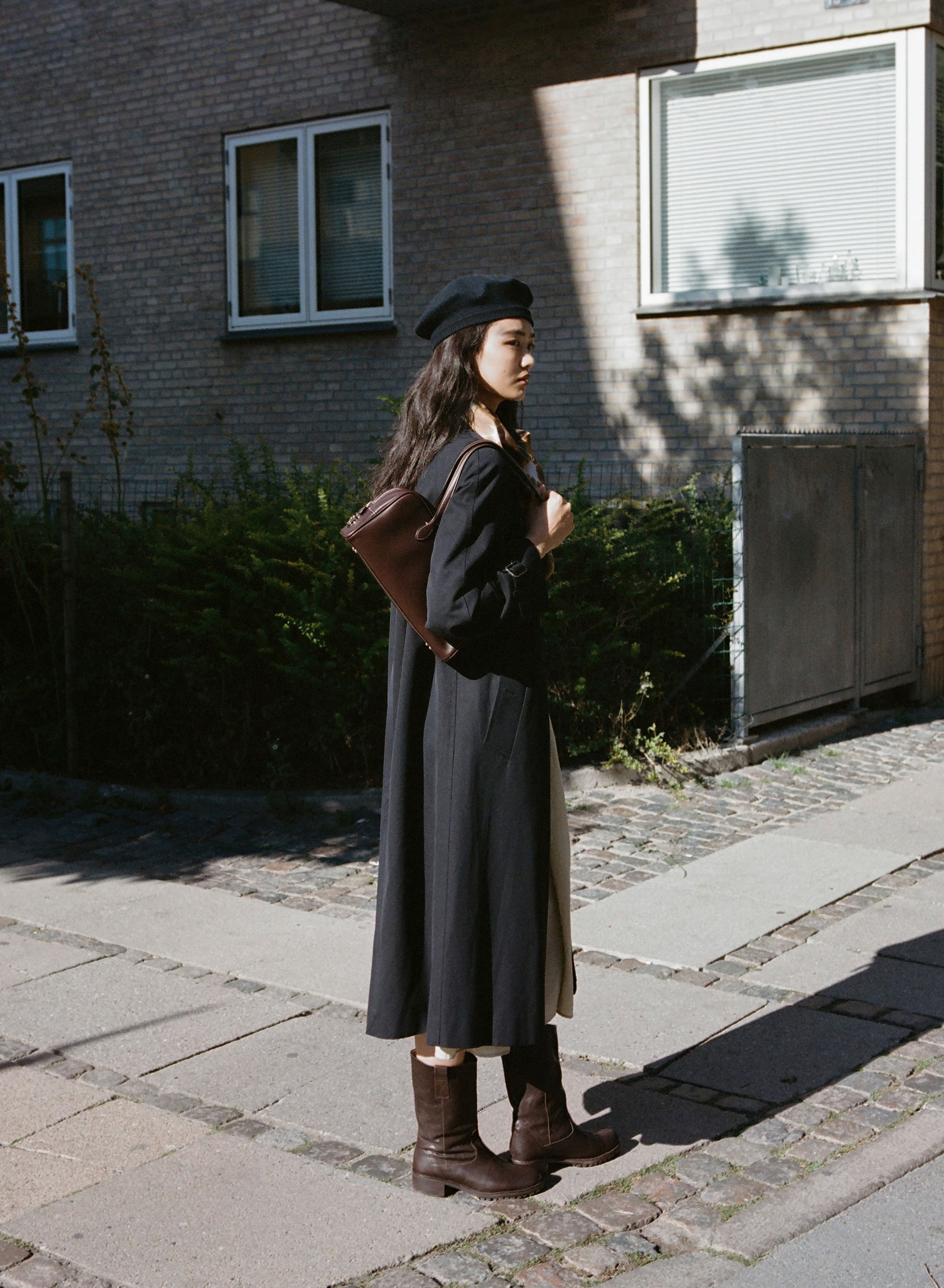 SAC LOQUET SMALL is a compact version of the original long-strap design. Crafted from oil-finished leather with a subtle sheen, it incorporates a secure zipper closure enhanced by a signature push lock. The four foot decorations provide stable support, and a firm and classic shape complements any outfit. The thick linen-cotton lining enhances durability, while the wide-opening zipper offers generous storage capacity. With the addition of the long strap, it can be comfortably worn over winter outerwear.