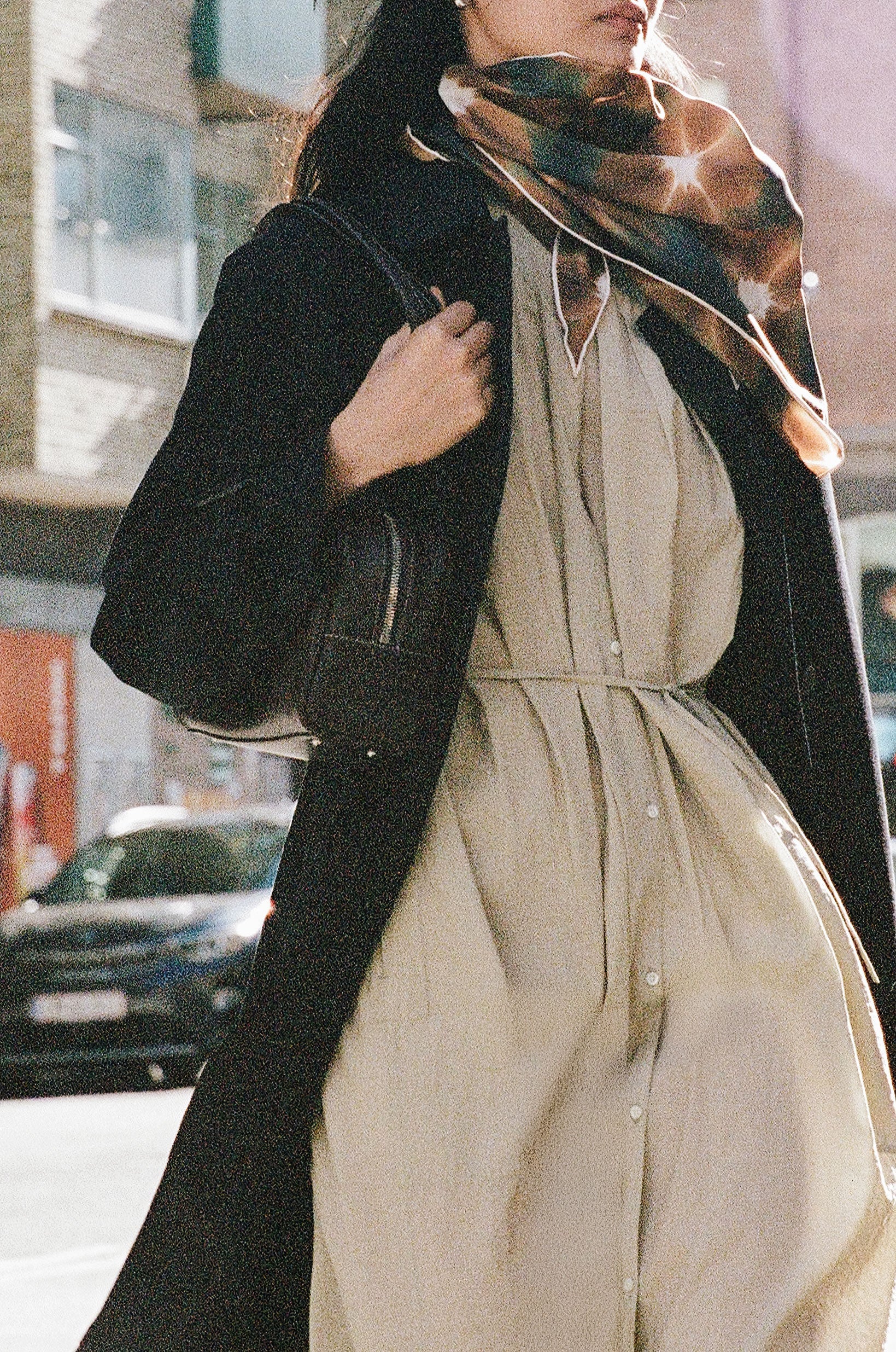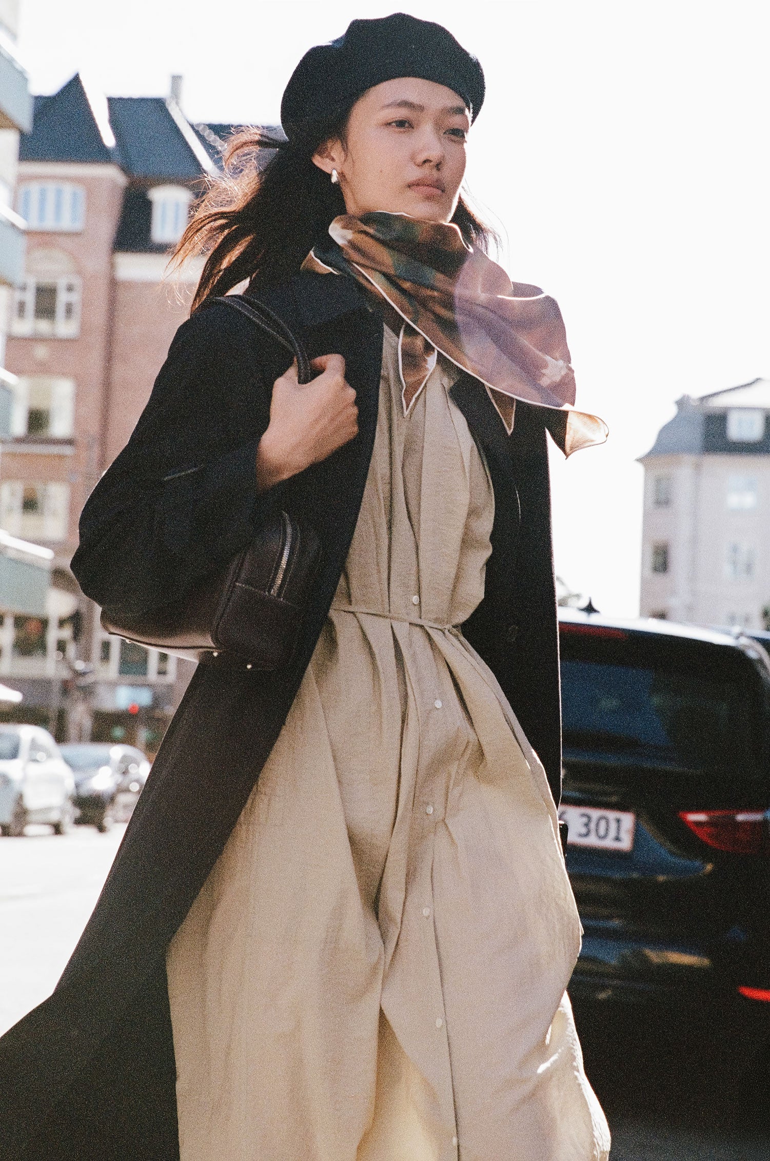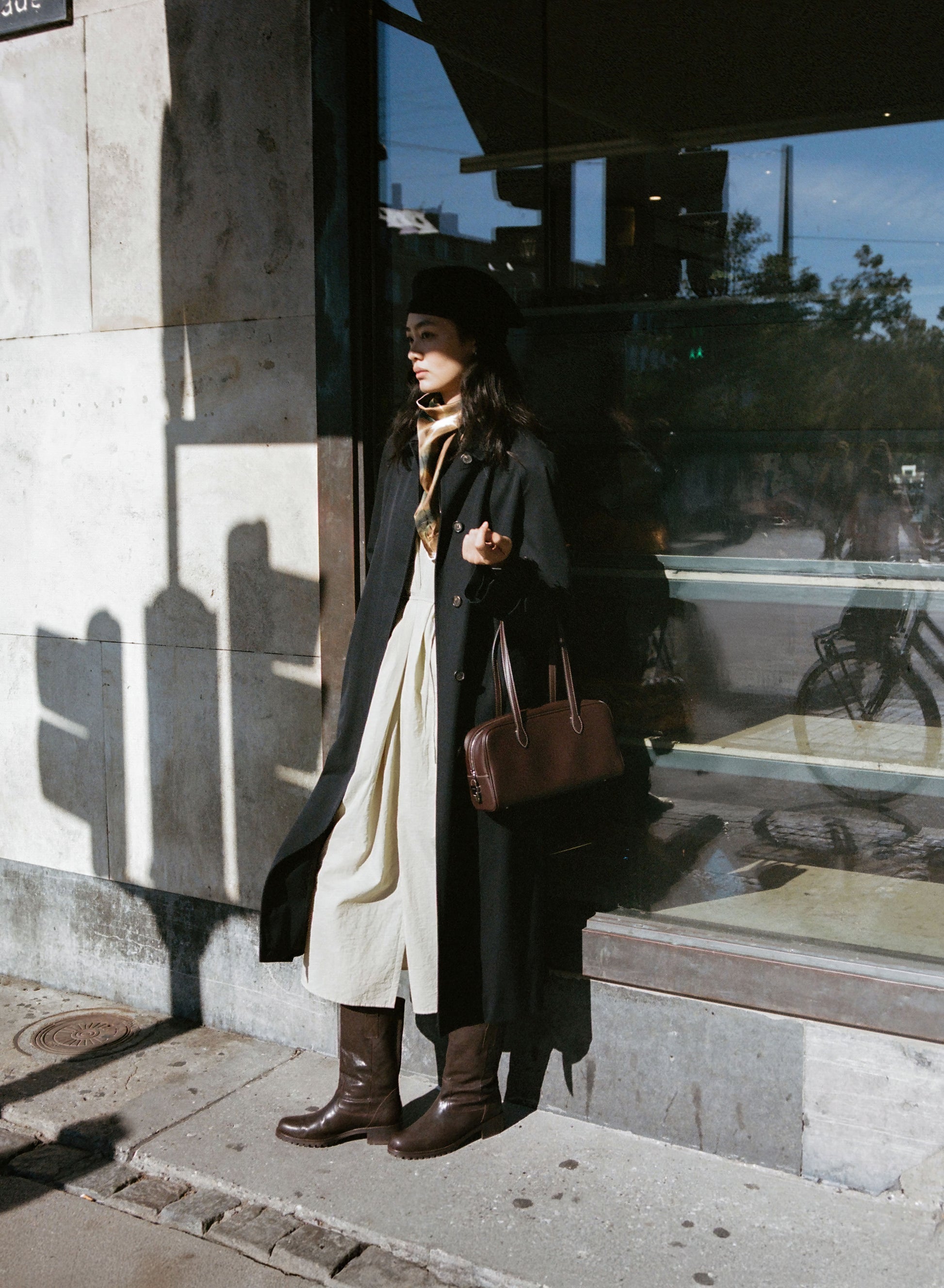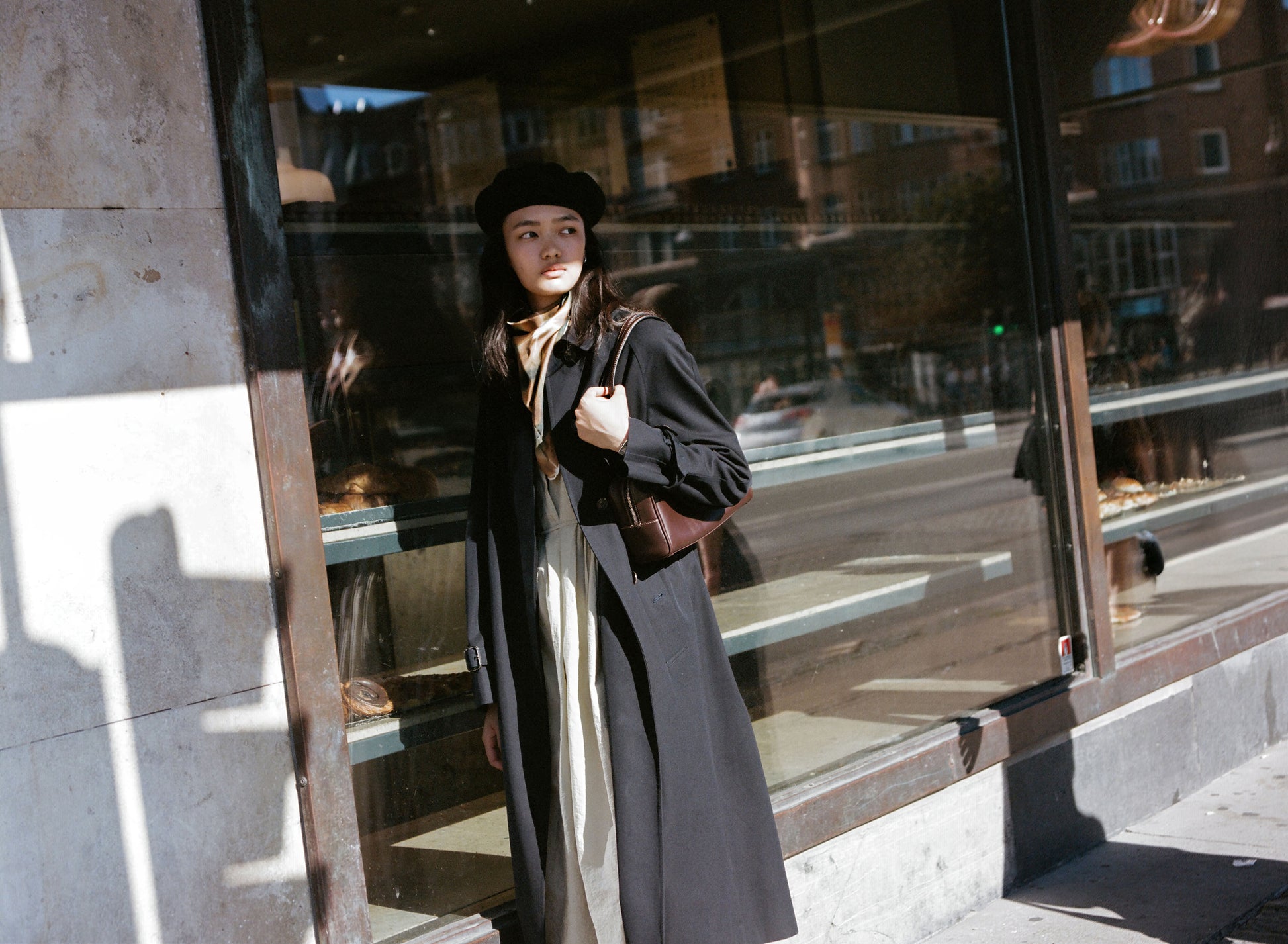 SAC LOQUET SMALL is a compact version of the original long-strap design. Crafted from oil-finished leather with a subtle sheen, it incorporates a secure zipper closure enhanced by a signature push lock. The four foot decorations provide stable support, and a firm and classic shape complements any outfit. The thick linen-cotton lining enhances durability, while the wide-opening zipper offers generous storage capacity. With the addition of the long strap, it can be comfortably worn over winter outerwear.
