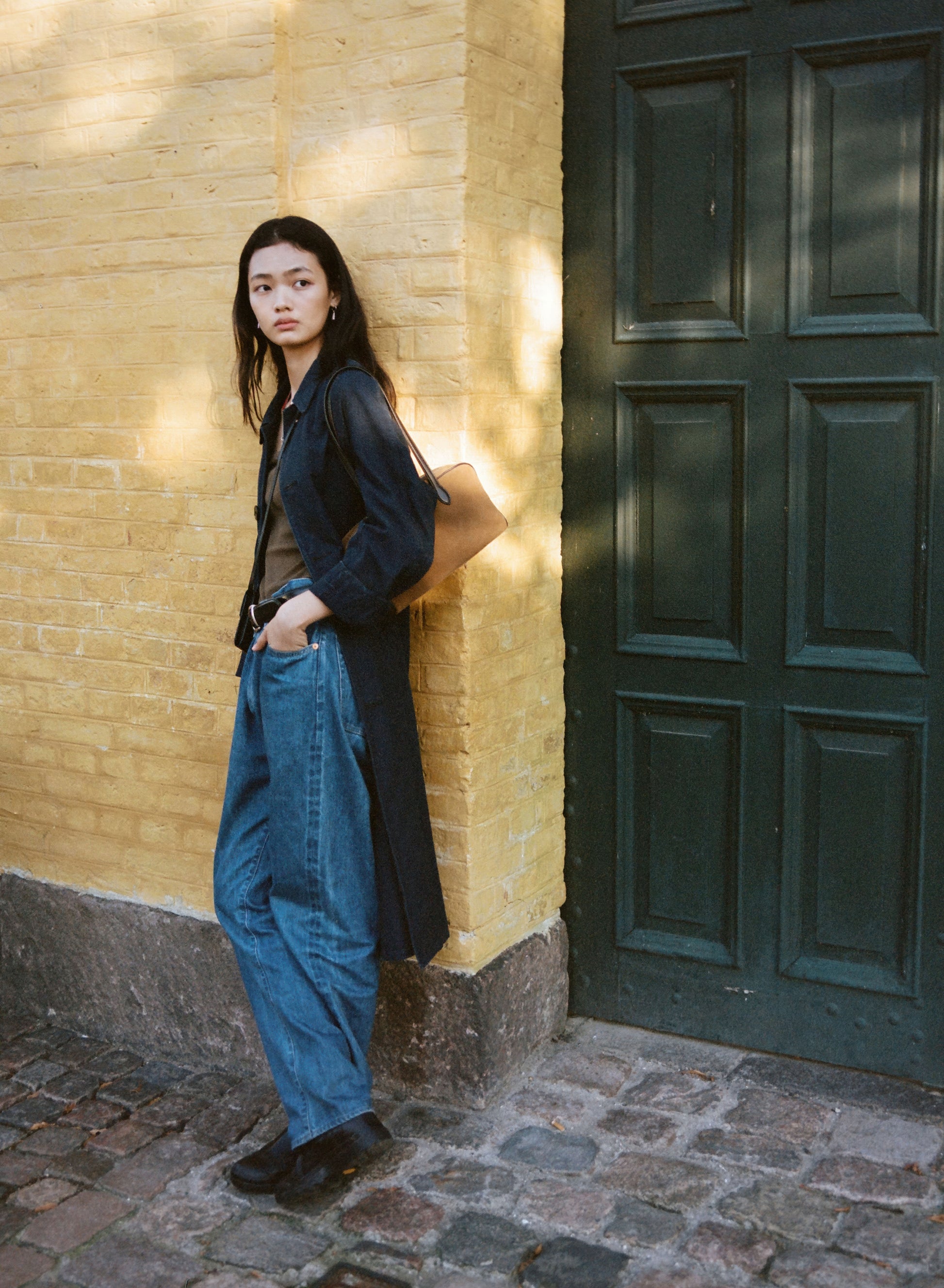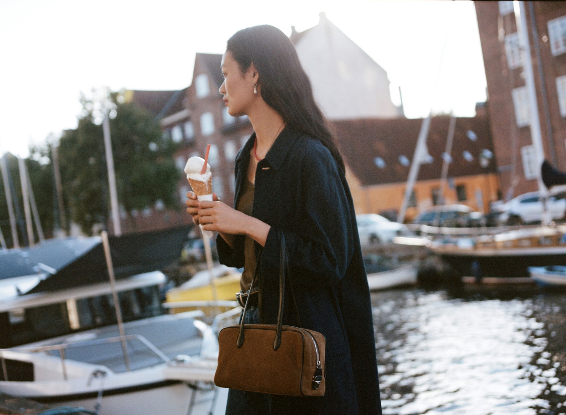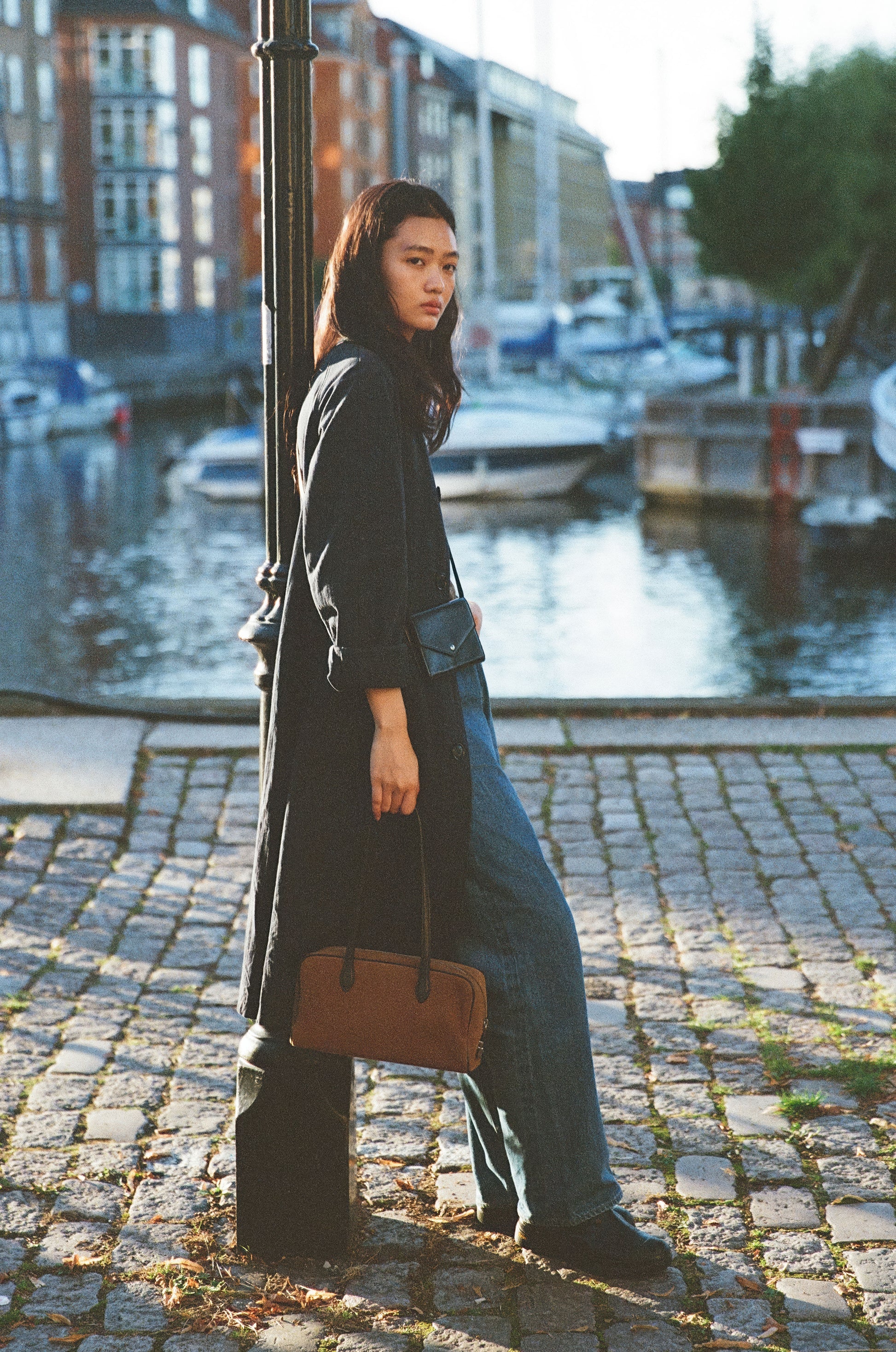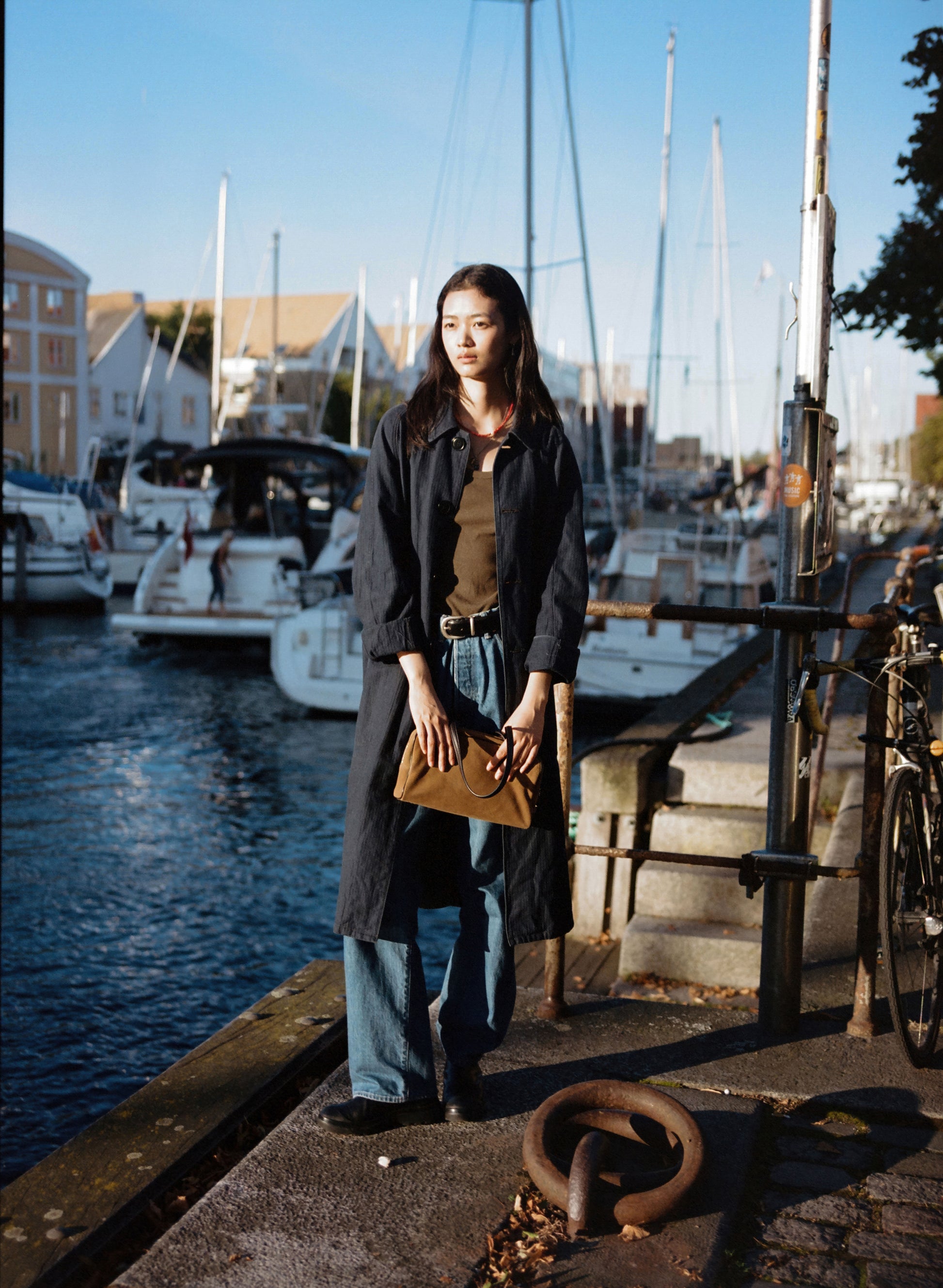 SAC LOQUET SMALL is a compact version of the original long-strap design. Crafted from goat suede, it displays subtle color variations that shift with the light. Its soft texture lets the bag naturally contour to the shoulder for a comfortable fit. A cowhide strap adds durability, while leather-trimmed edges preserve the structured silhouette. Inside, a linen-cotton lining and wide-opening zipper provide easy access and generous storage, all in a lightweight 350g design.